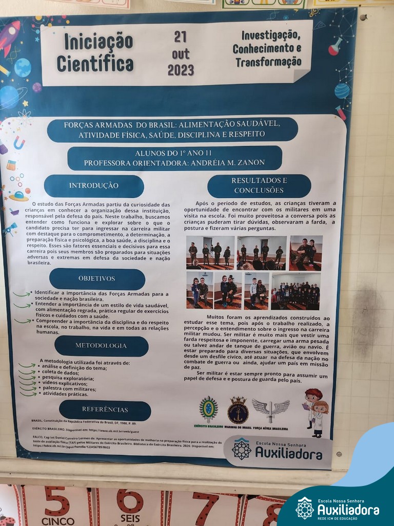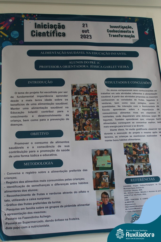 A Mostra de Iniciação Científica é um espaço-tempo de inserção do estudante da Educação Infantil e Ensino Fundamental em atividades de pesquisa científica, cujo objetivo foi desenvolver uma pesquisa multidisciplinar num processo de iniciação científica desenvolvida por alunos e professores, promovendo o intercâmbio de informações em ciência, tecnologia e inovação junto à comunidade acadêmica e ao público em geral. O projeto trabalhado partiu do interesse e curiosidade da turma em aprofundar seus conhecimentos dentro de um determinado tema.