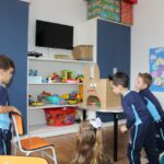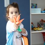 Através da Brincadeira O Coelhinho Guloso, a turma do Maternal II B se divertiu muito alimentando o Coelho com cenouras.