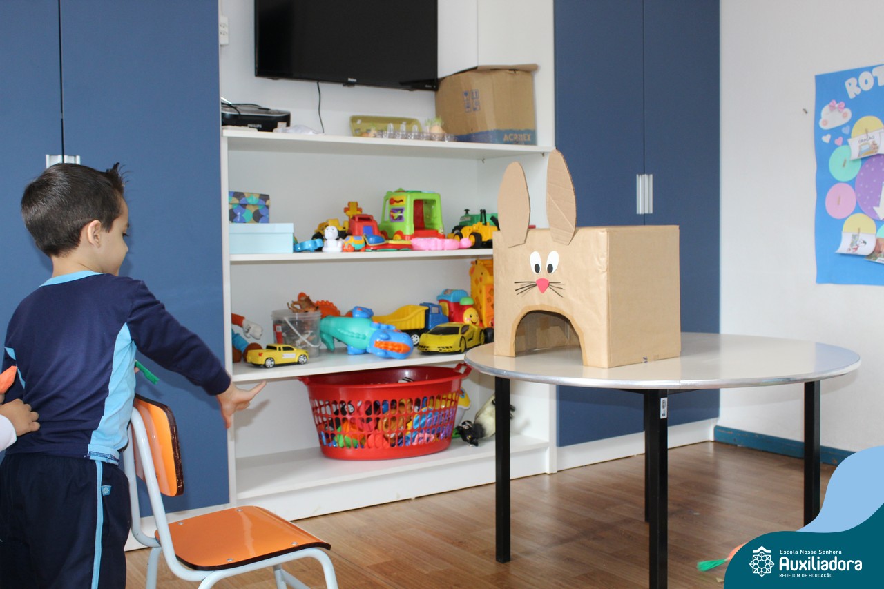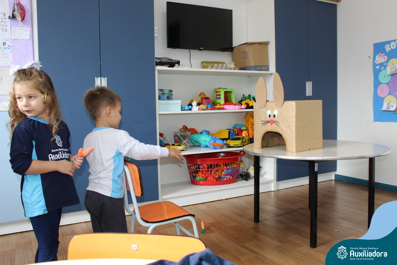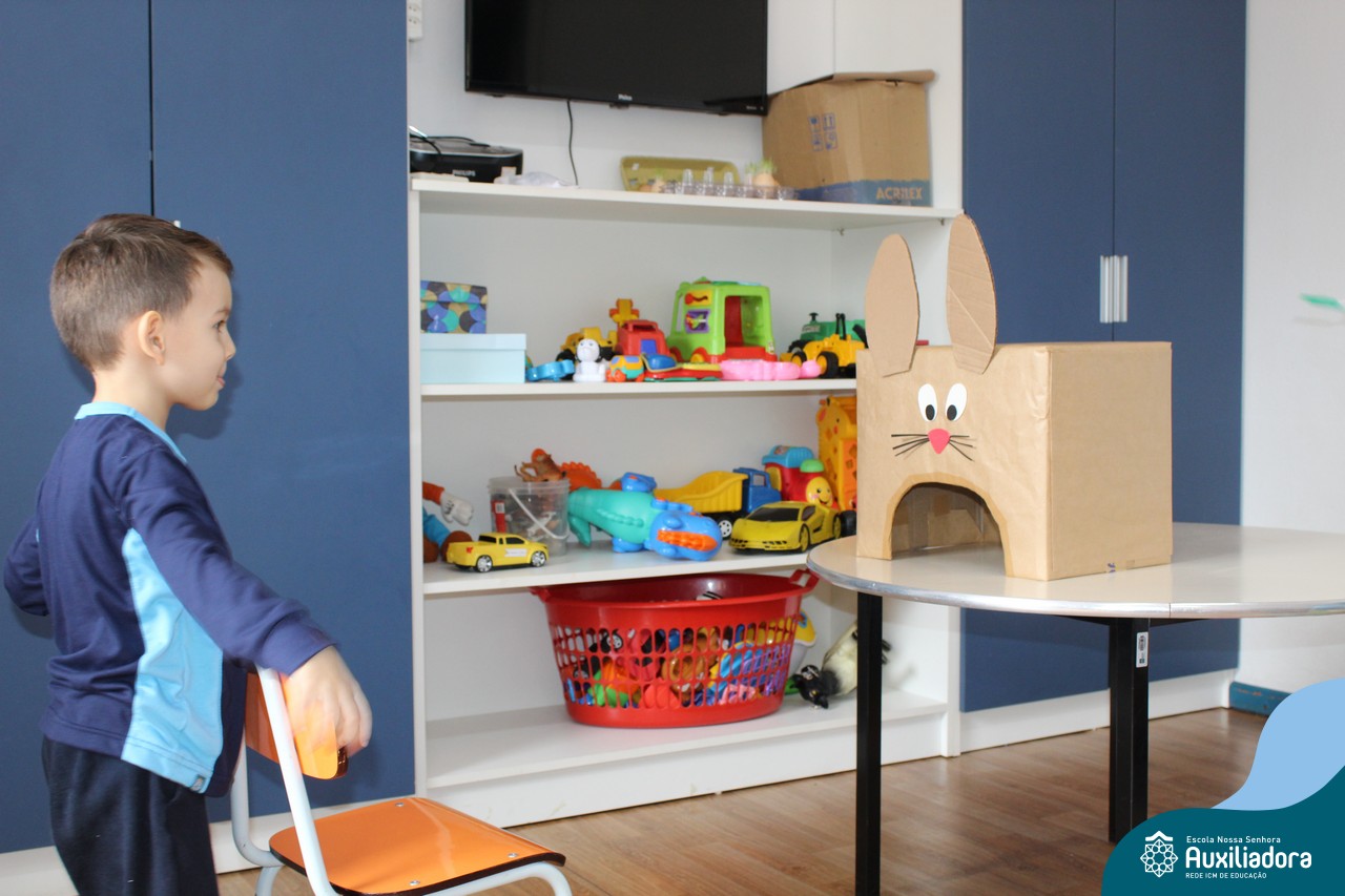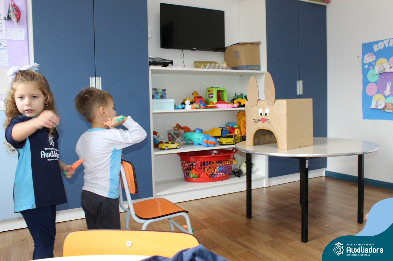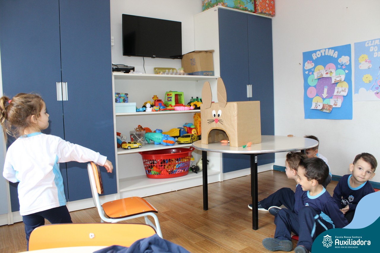 Através da Brincadeira O Coelhinho Guloso, a turma do Maternal II B se divertiu muito alimentando o Coelho com cenouras.