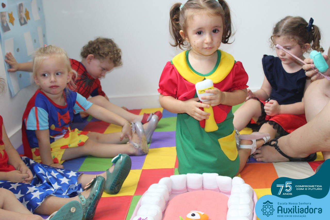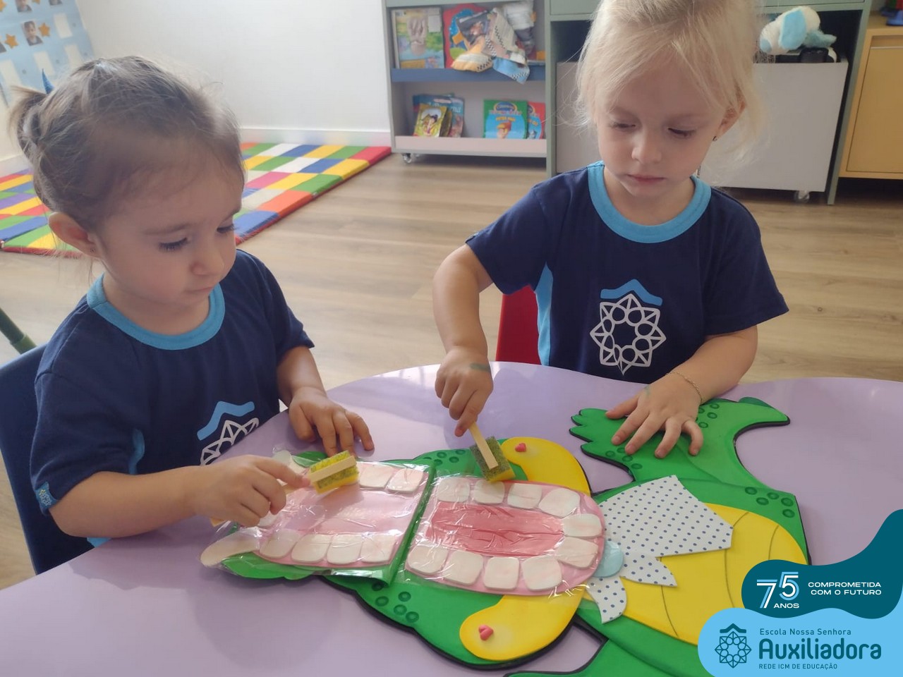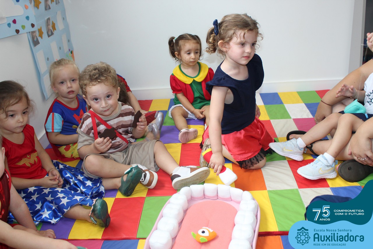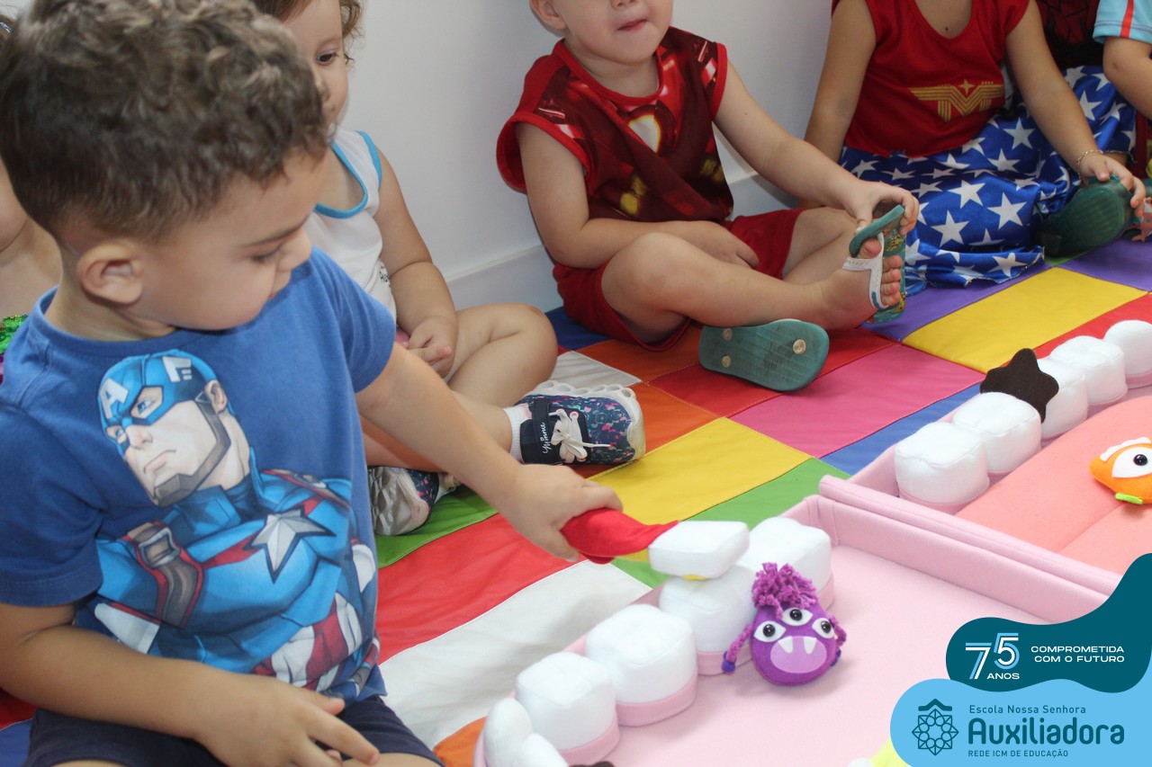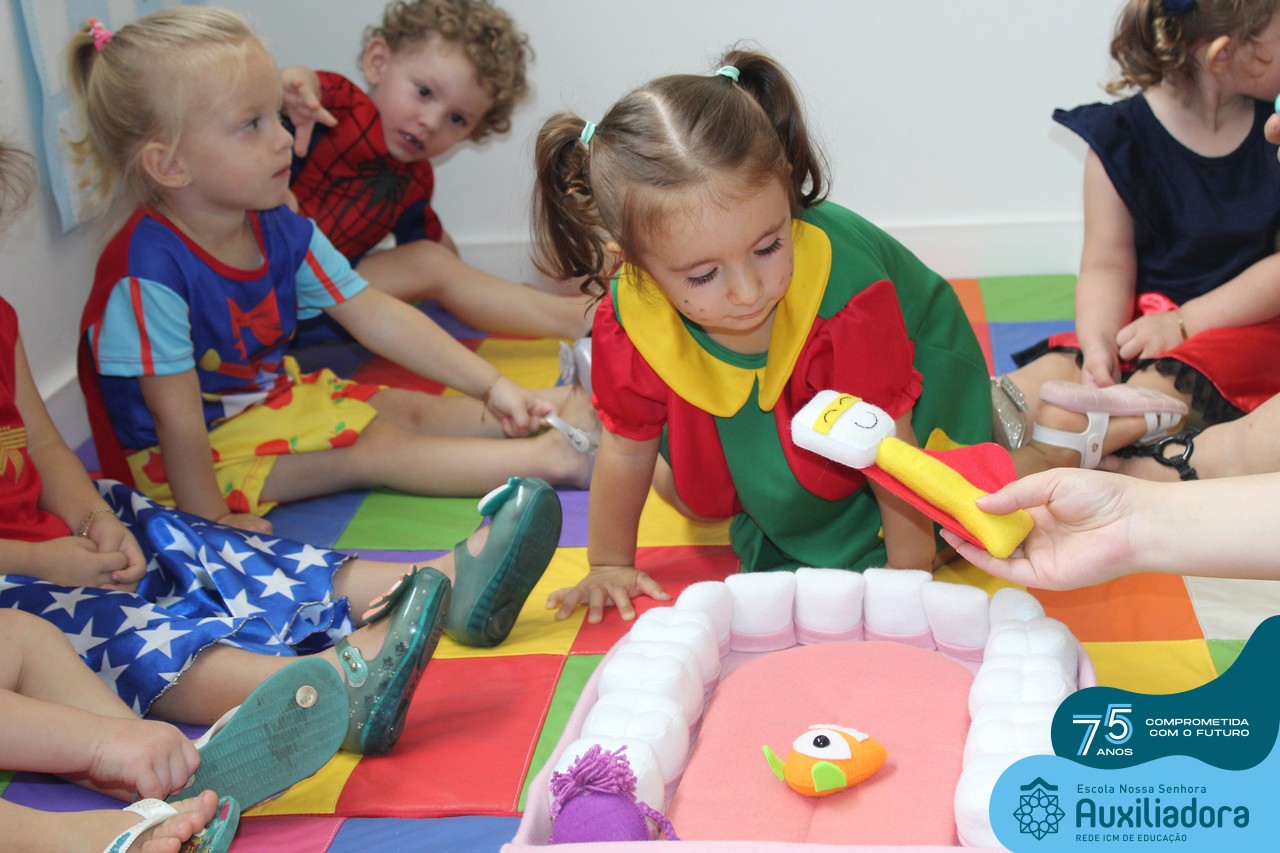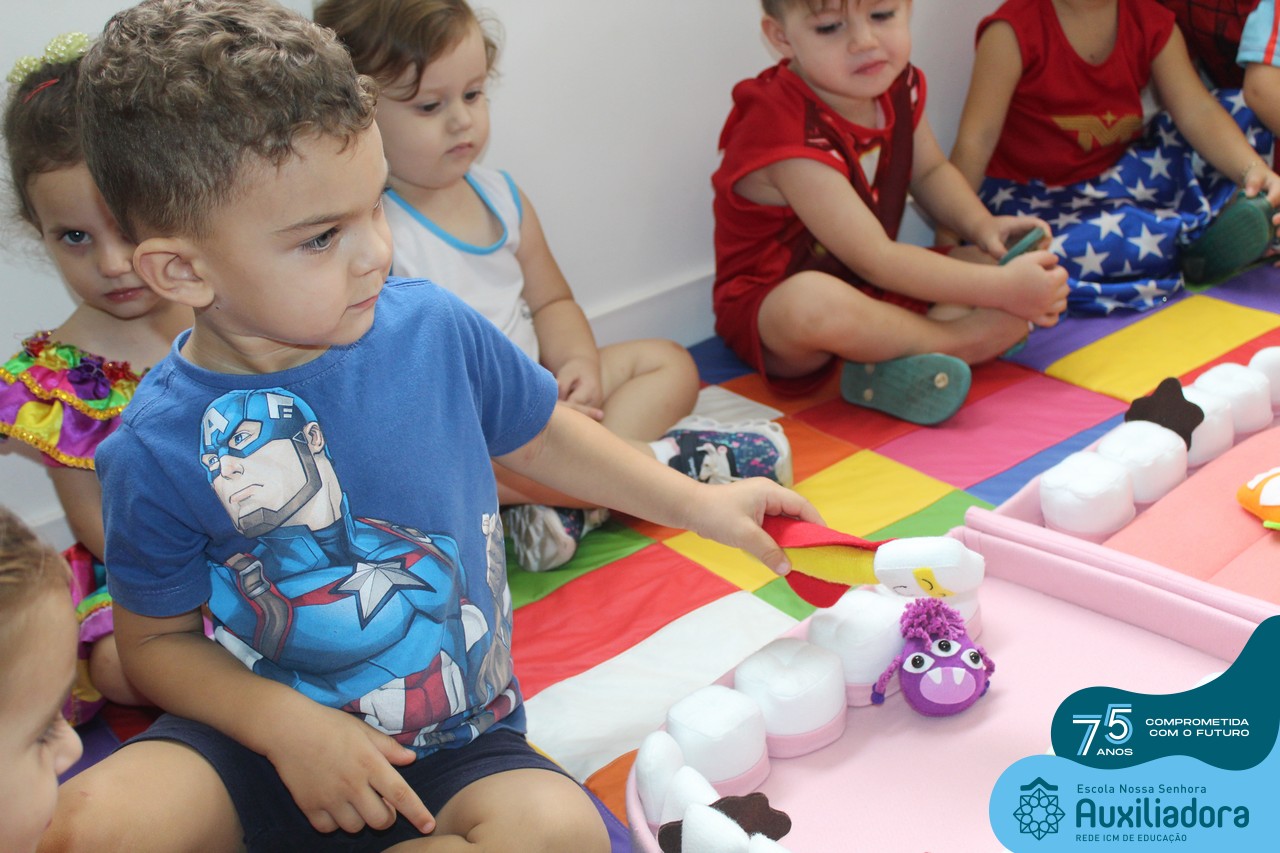 A partir de uma história muito divertida foi possĆvel conhecer e refletir sobre hĆ”bitos importantes que devemos ter com nossa higiene bucal, enfatizando sobre a importĆ¢ncia da escovação dos dentes.