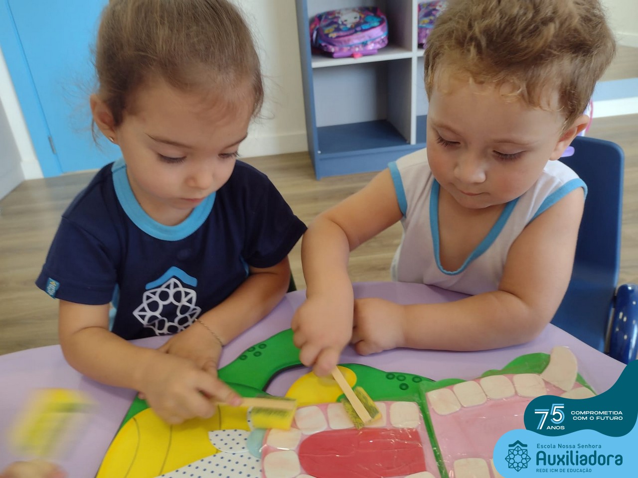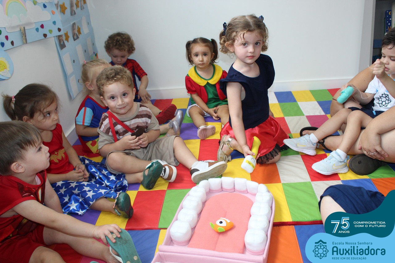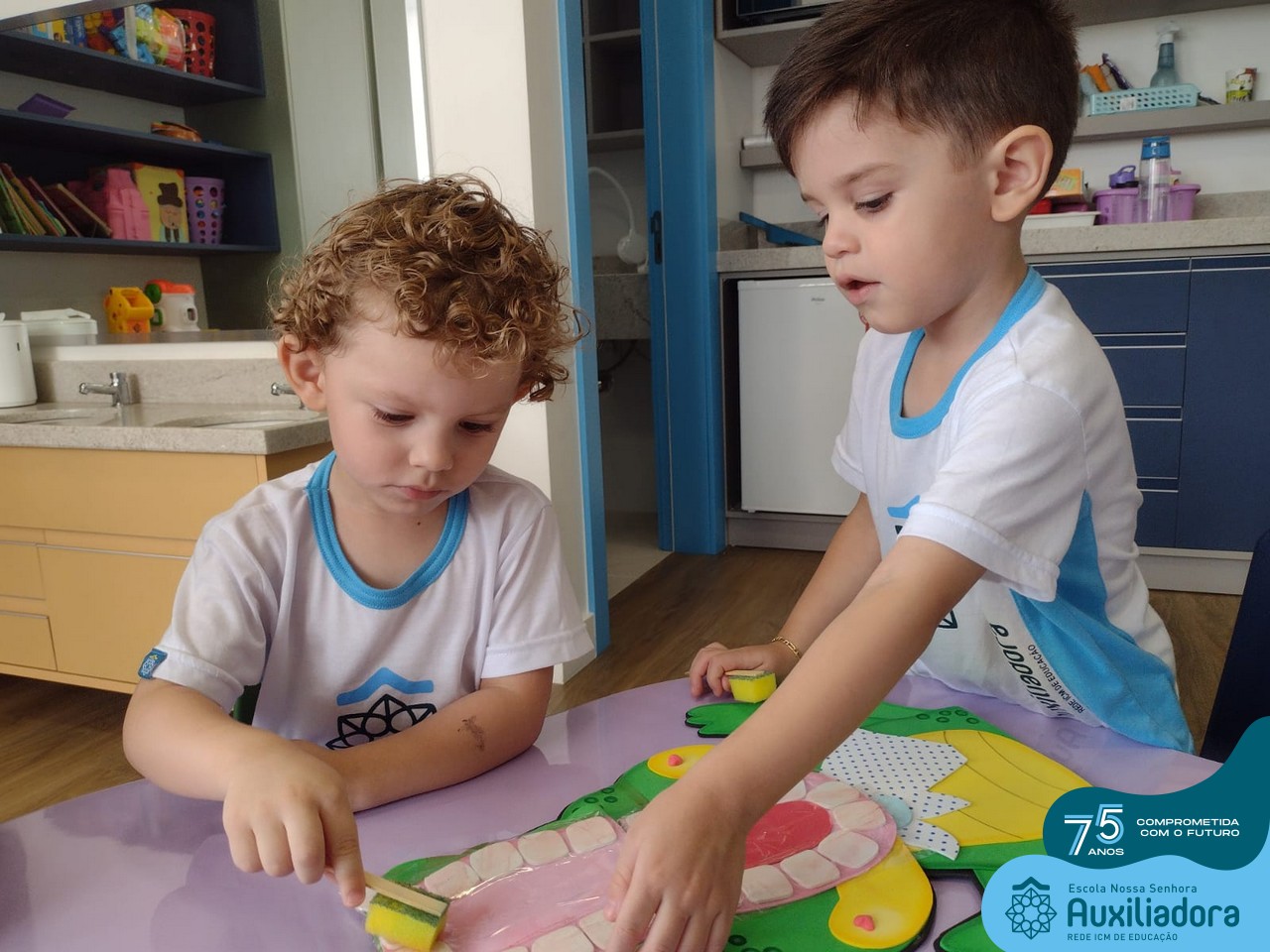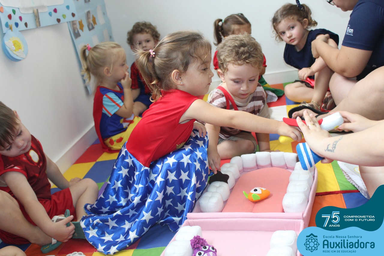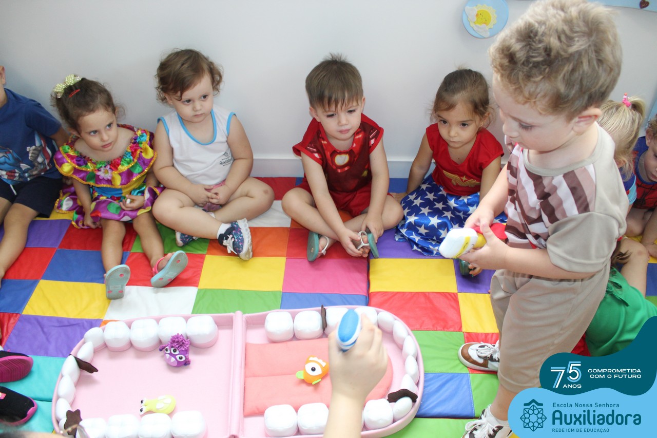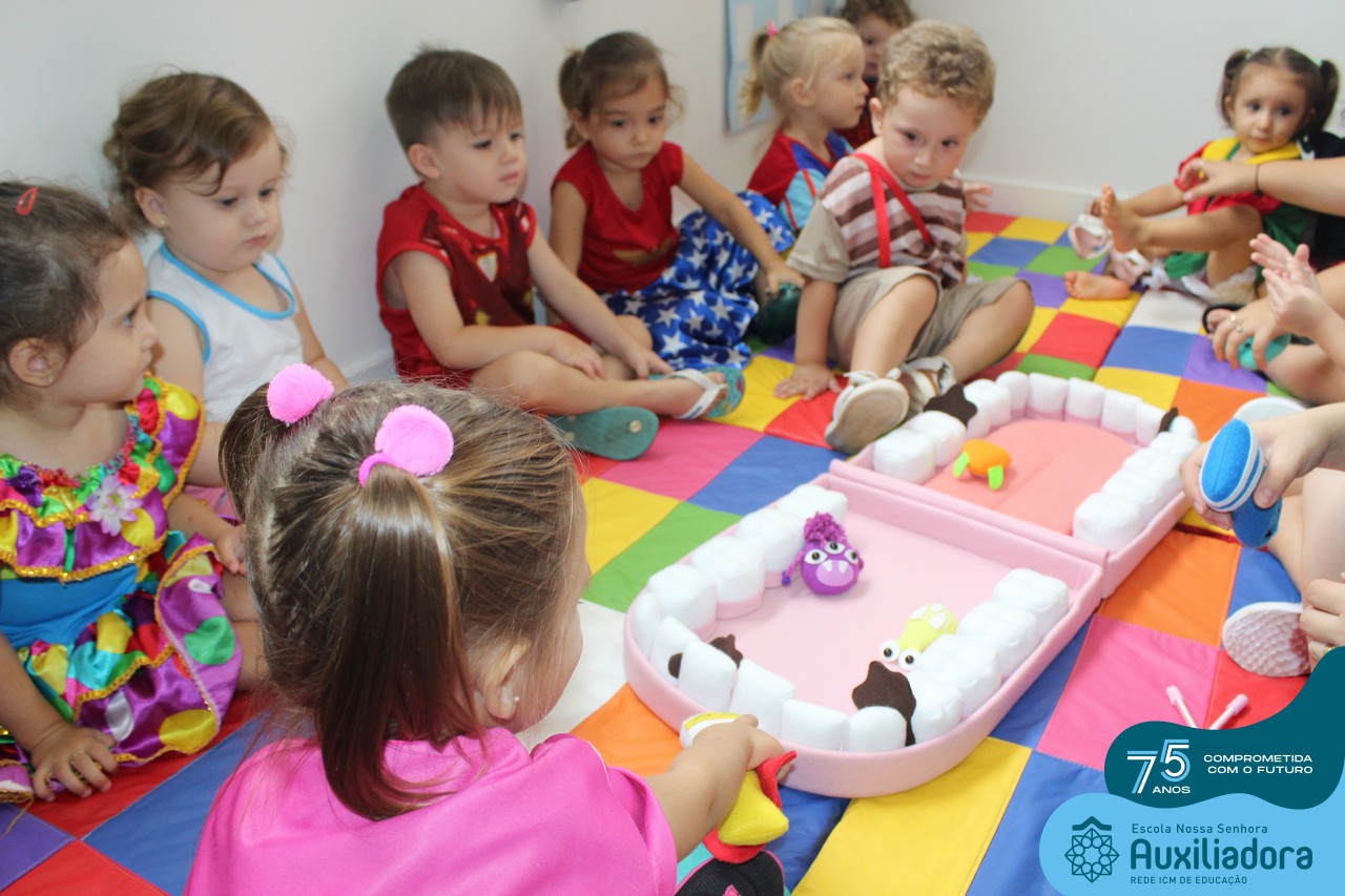 A partir de uma história muito divertida foi possĆvel conhecer e refletir sobre hĆ”bitos importantes que devemos ter com nossa higiene bucal, enfatizando sobre a importĆ¢ncia da escovação dos dentes.