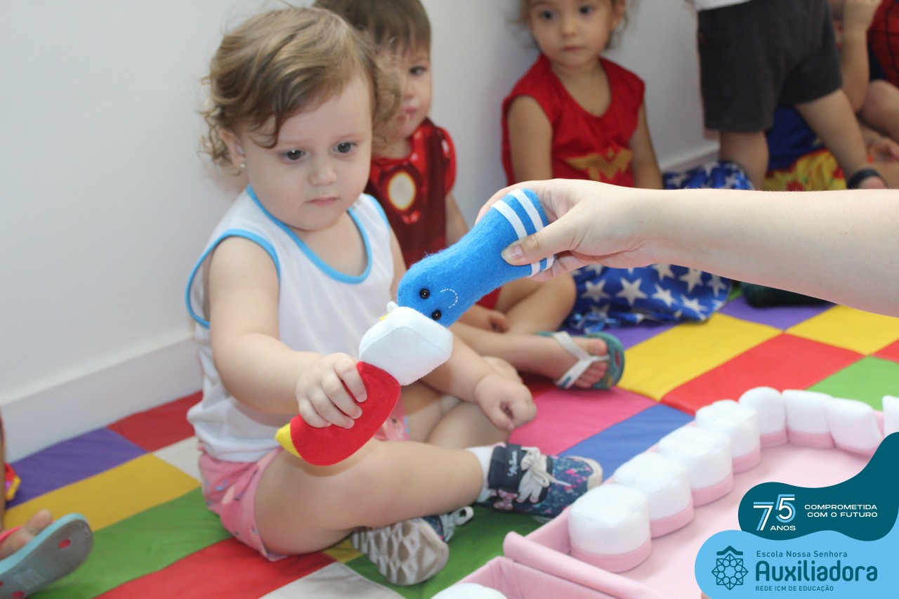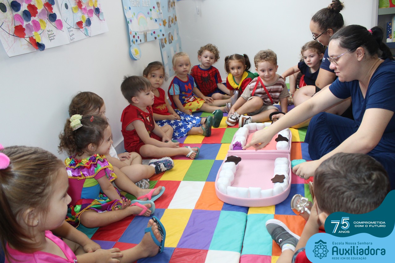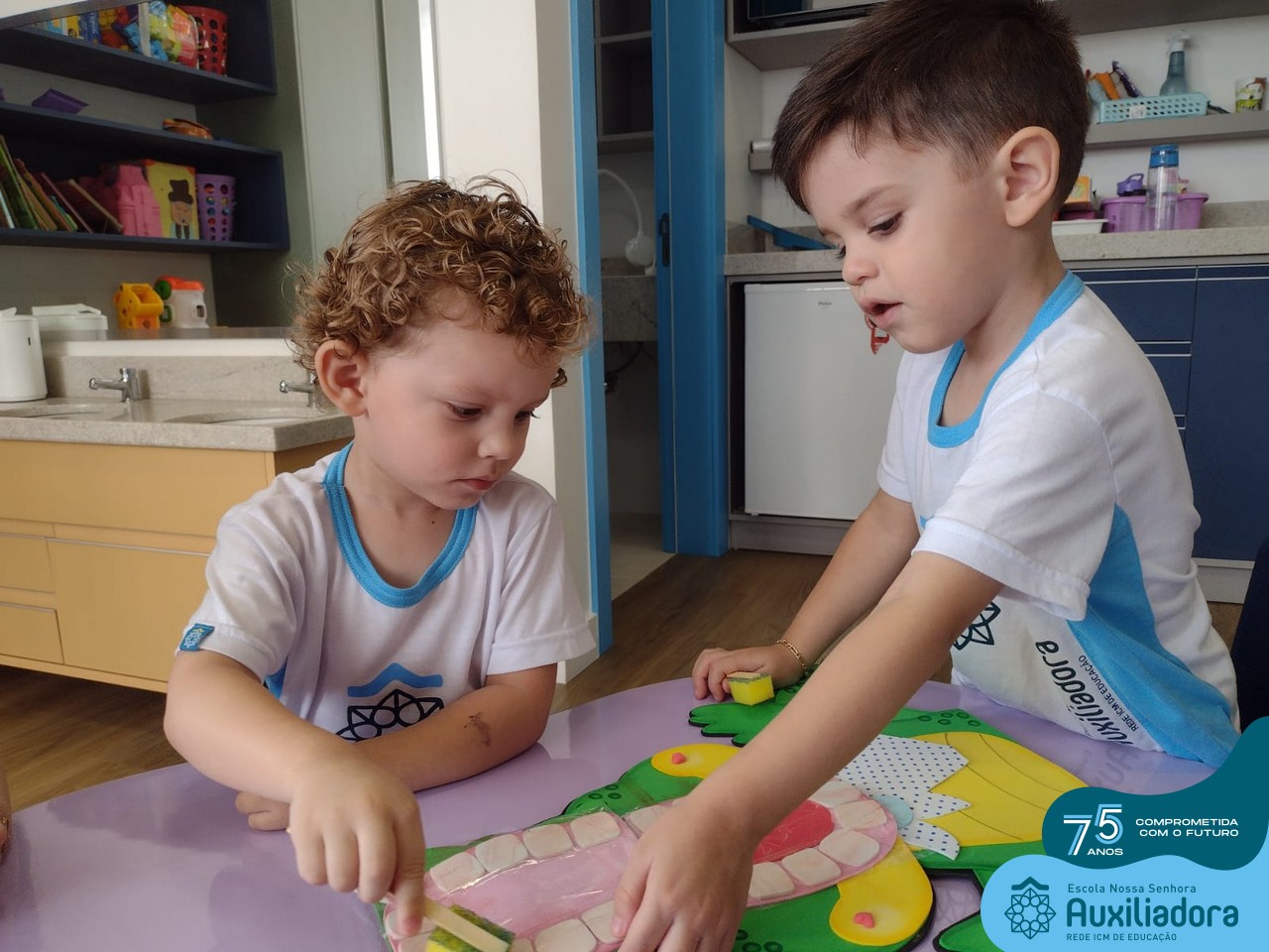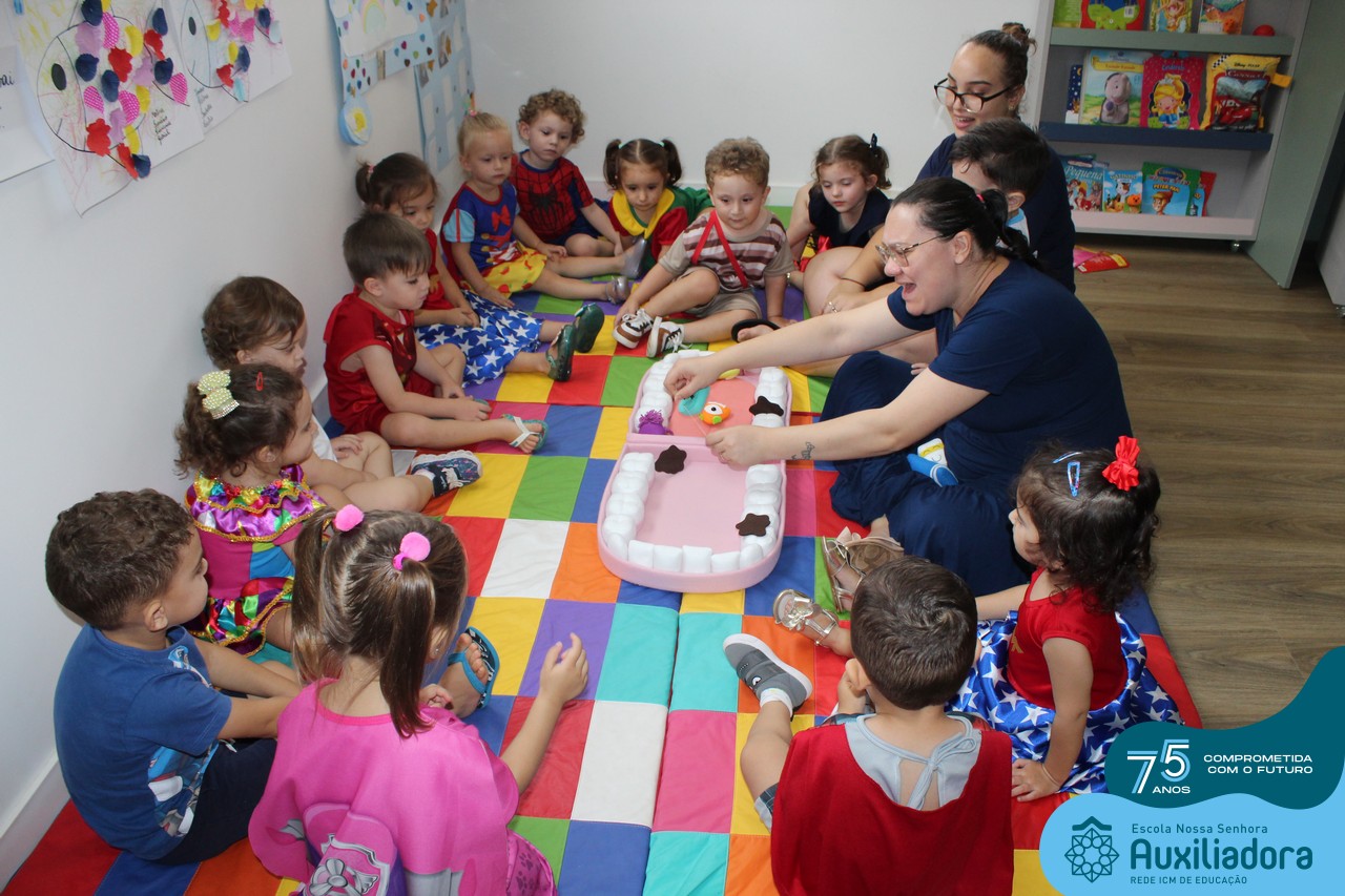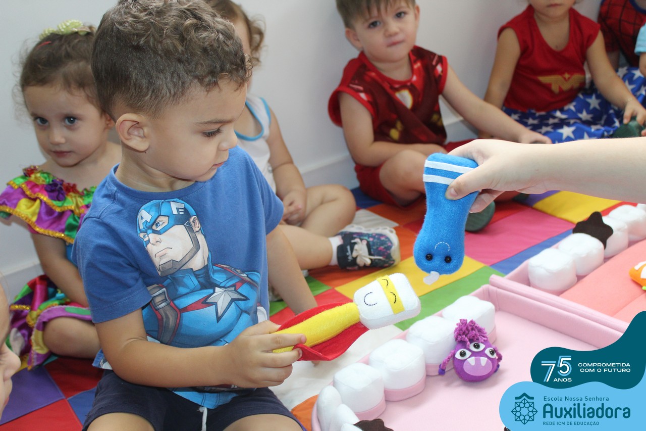 A partir de uma história muito divertida foi possĆvel conhecer e refletir sobre hĆ”bitos importantes que devemos ter com nossa higiene bucal, enfatizando sobre a importĆ¢ncia da escovação dos dentes.