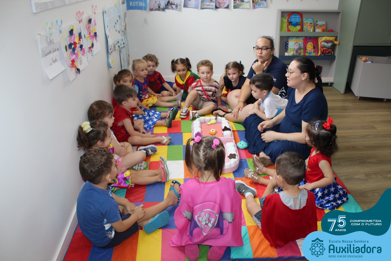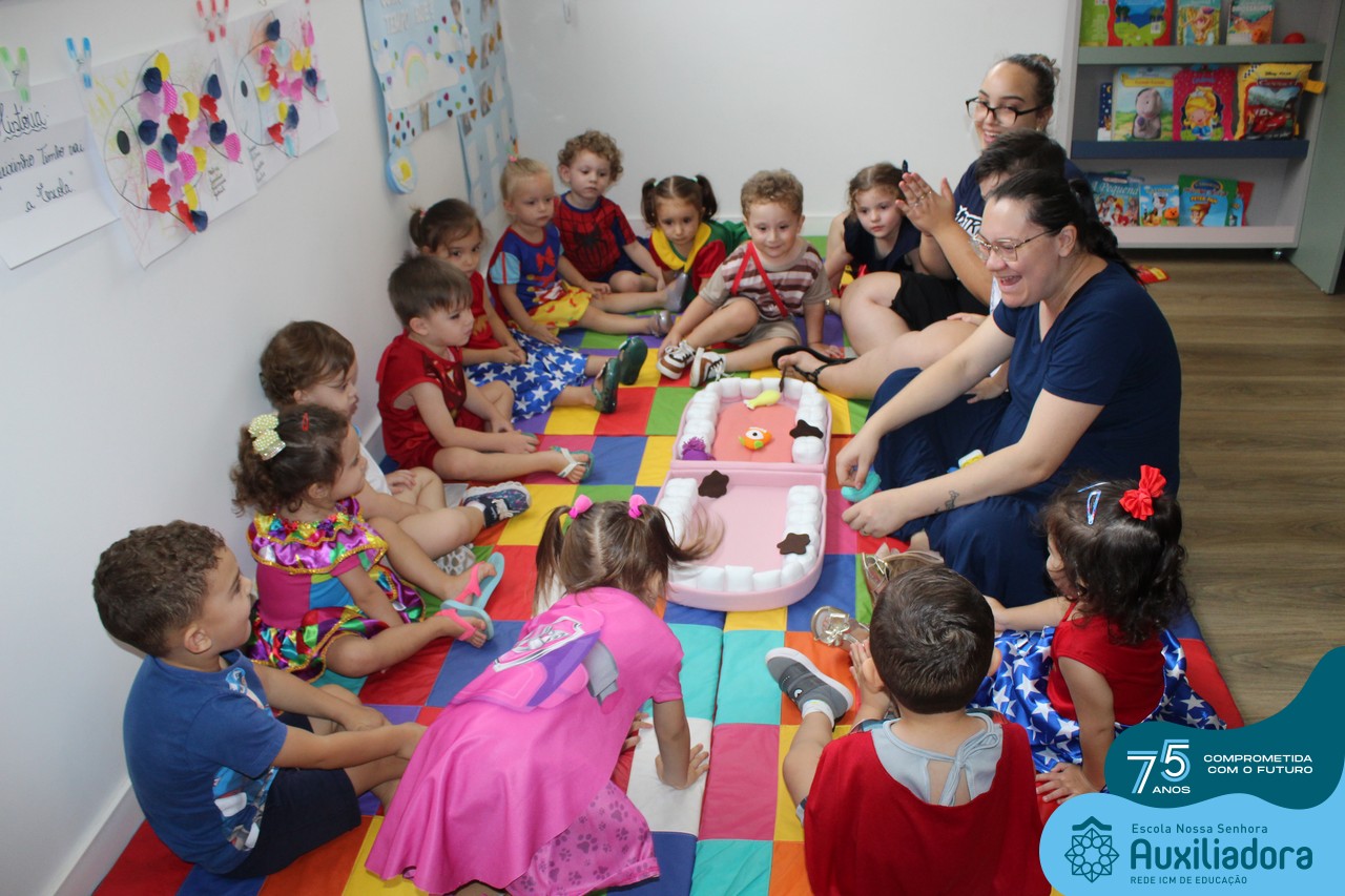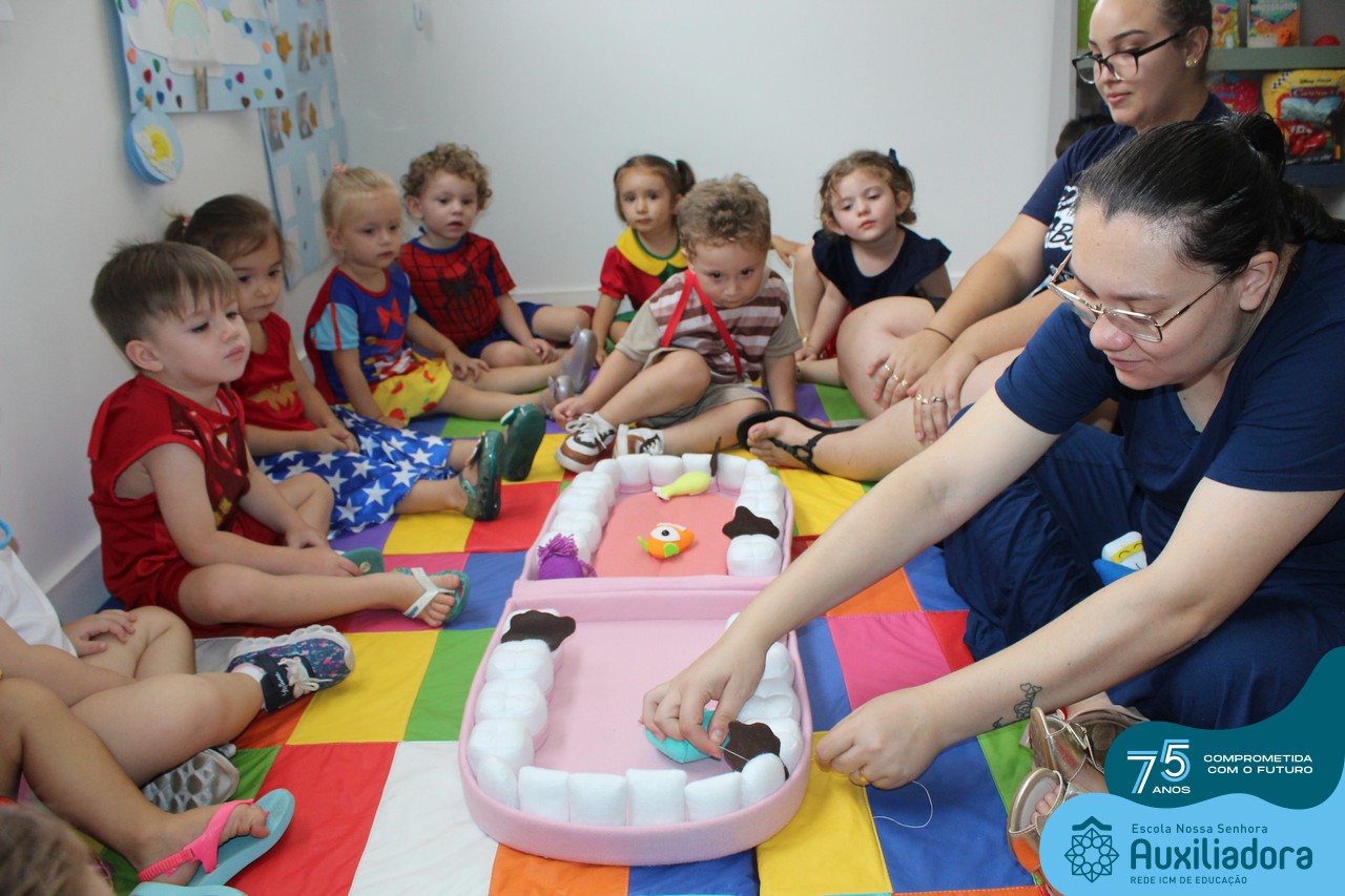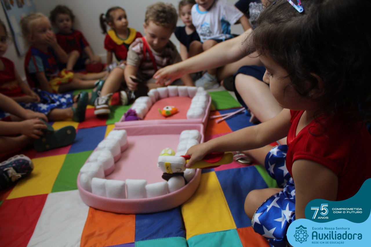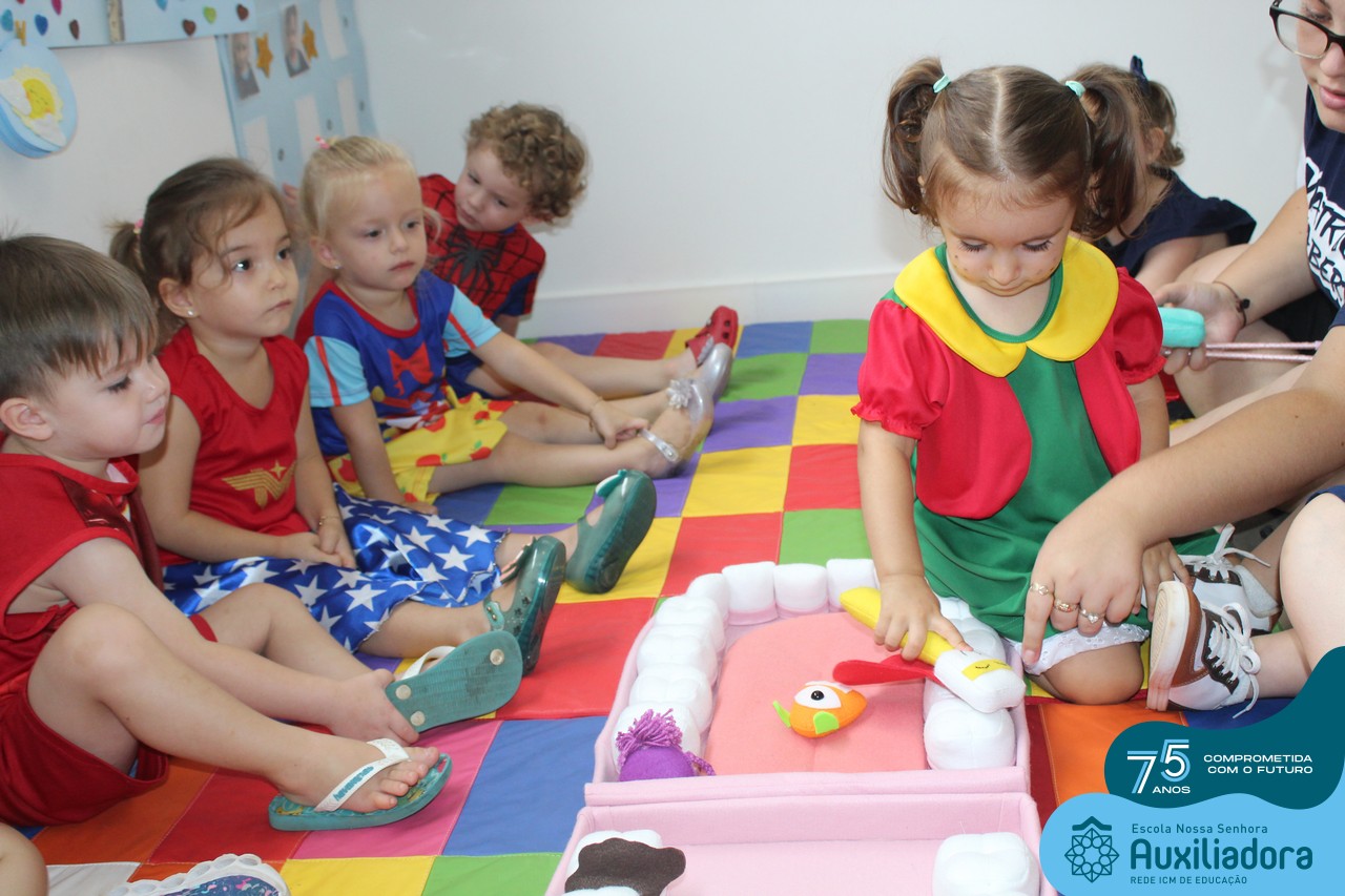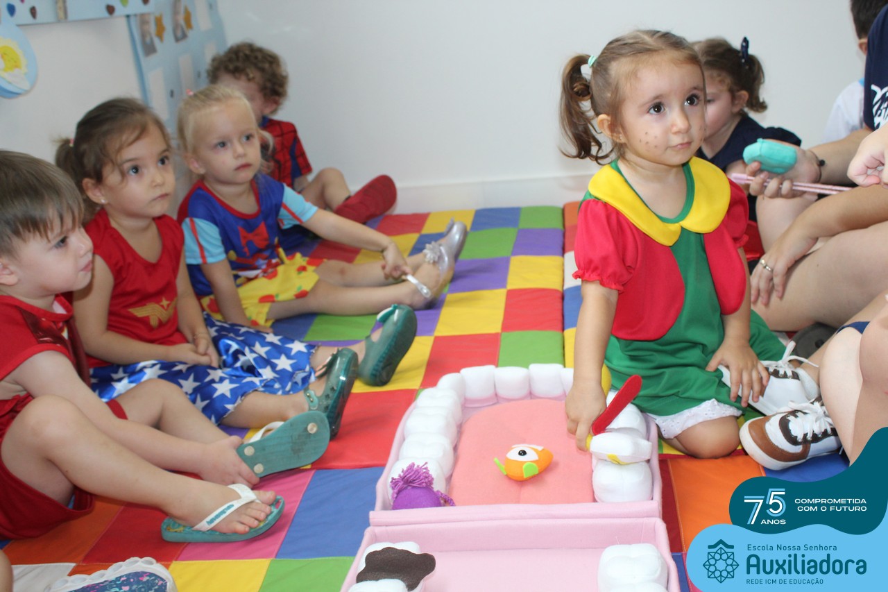 A partir de uma história muito divertida foi possĆvel conhecer e refletir sobre hĆ”bitos importantes que devemos ter com nossa higiene bucal, enfatizando sobre a importĆ¢ncia da escovação dos dentes.