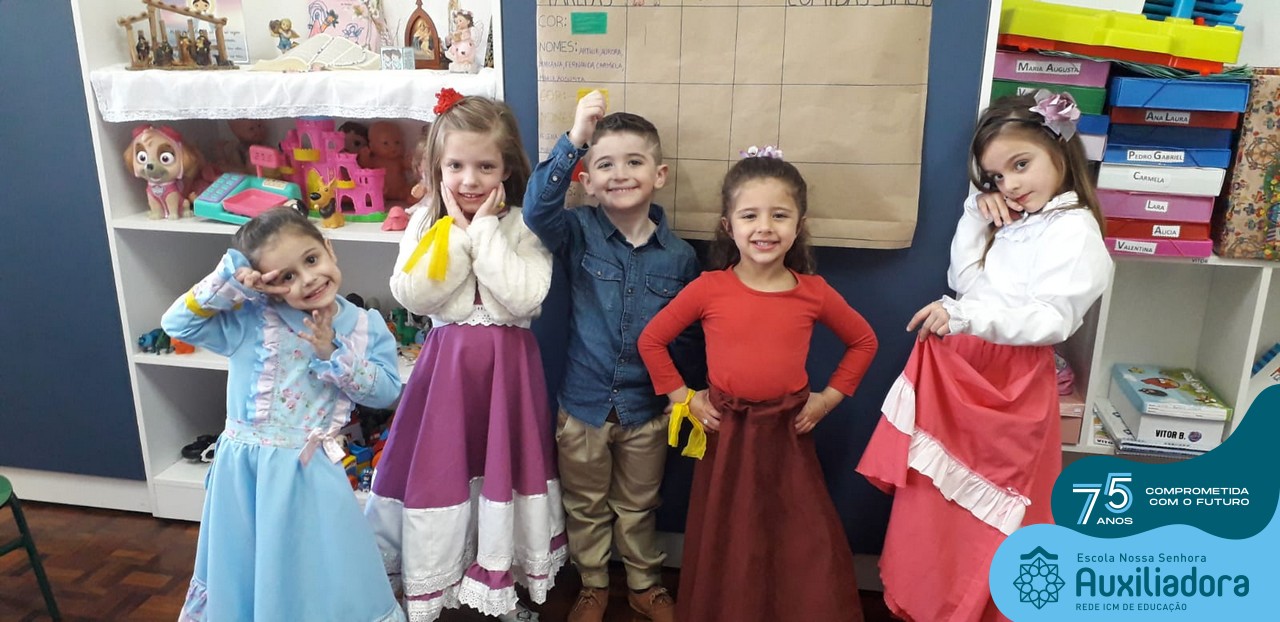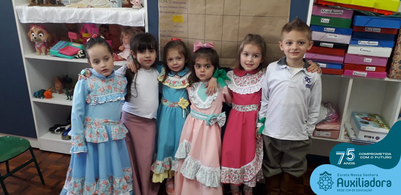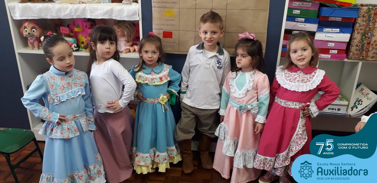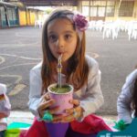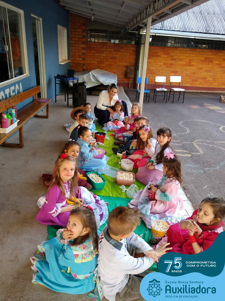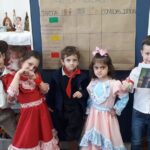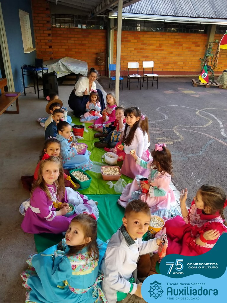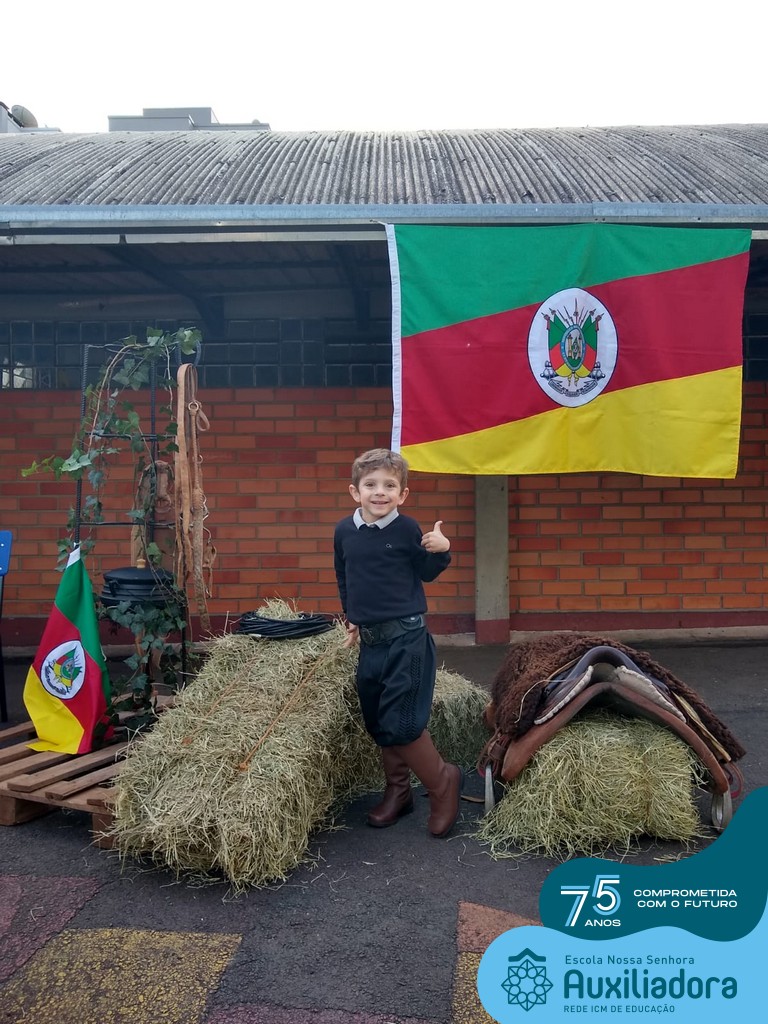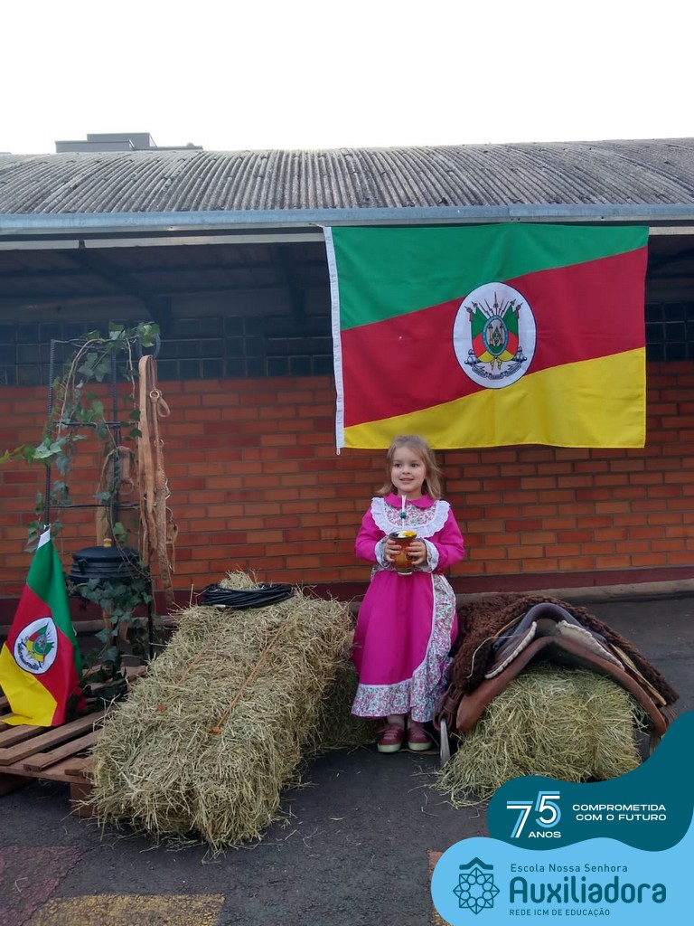 Oficina de chimarrão. Esta atividade teve por objetivo vivenciar concretamente o símbolo mais usado pelo gaúcho, o chimarrão! As crianças puderam experienciar o jeito gaúcho de cevar o mate, ter contato com a erva-mate, o passo-a-passo e por fim a alegria de saboreá-lo. As crianças se sentiram realizadas com o momento e atentas com os detalhes do preparo do chimarrão.