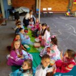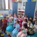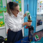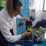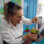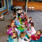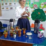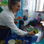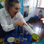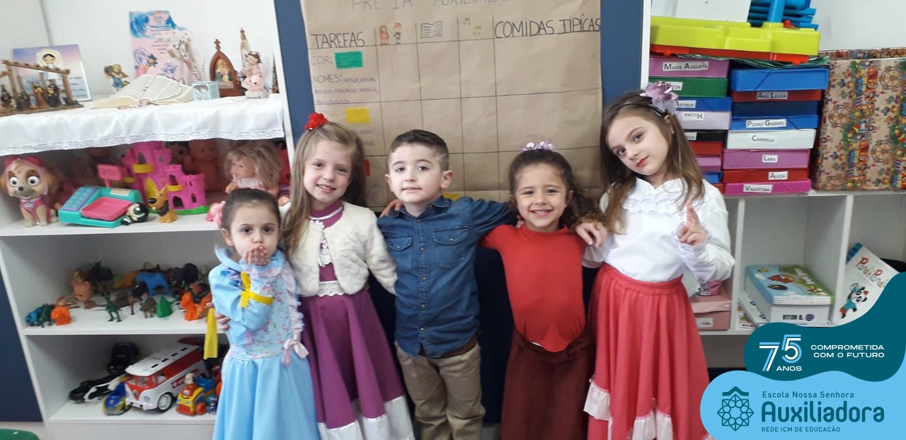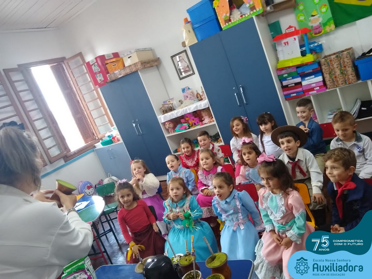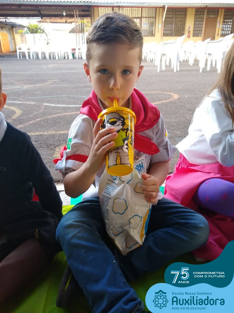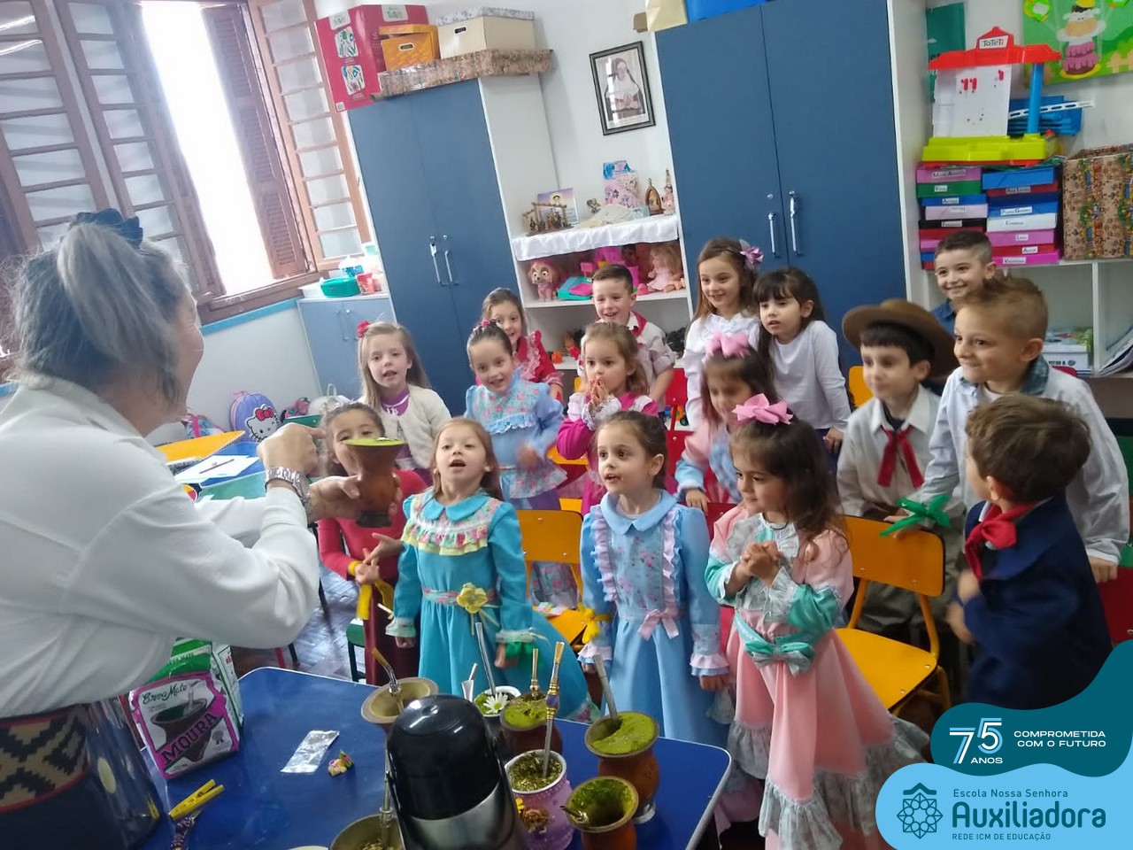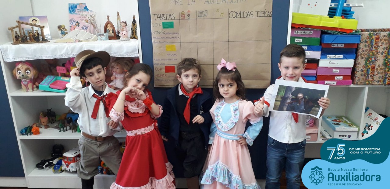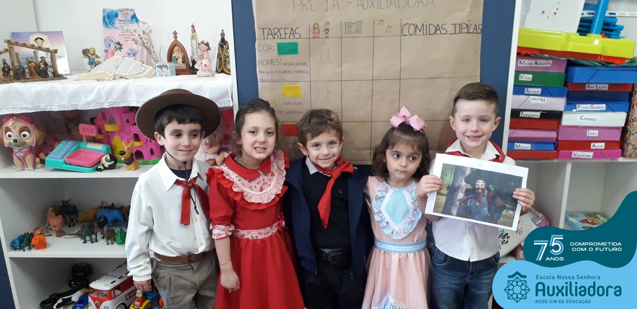 Oficina de chimarrão. Esta atividade teve por objetivo vivenciar concretamente o símbolo mais usado pelo gaúcho, o chimarrão! As crianças puderam experienciar o jeito gaúcho de cevar o mate, ter contato com a erva-mate, o passo-a-passo e por fim a alegria de saboreá-lo. As crianças se sentiram realizadas com o momento e atentas com os detalhes do preparo do chimarrão.