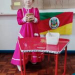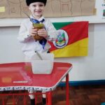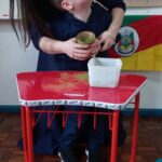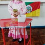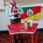 🎵 Oficina de chimarrão. Esta atividade teve por objetivo vivenciar concretamente o símbolo mais usado pelo gaúcho, o chimarrão! As crianças puderam experienciar o jeito gaúcho de cevar o mate, ter contato com a erva-mate, o passo-a-passo e por fim a alegria de saboreá-lo. As crianças se sentiram realizadas com o momento e atentas com os detalhes do preparo do chimarrão.