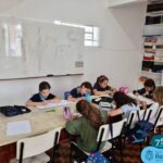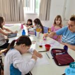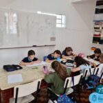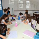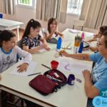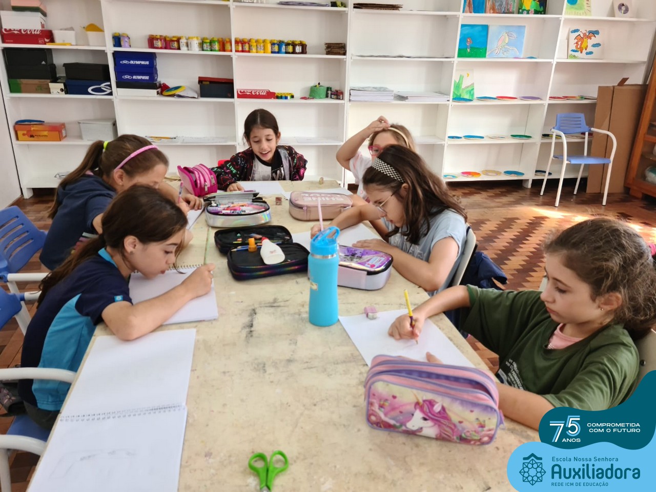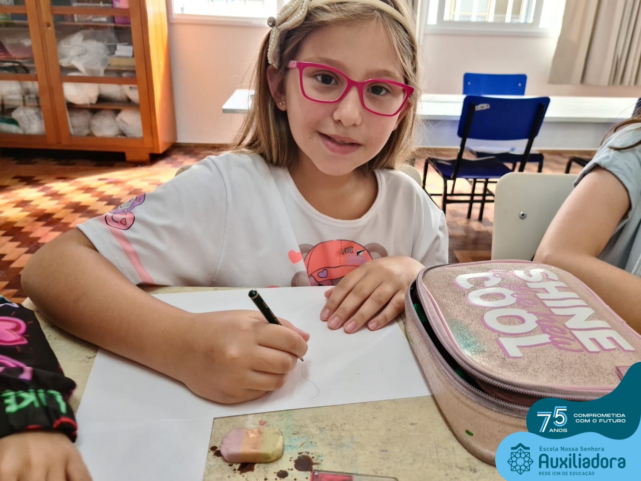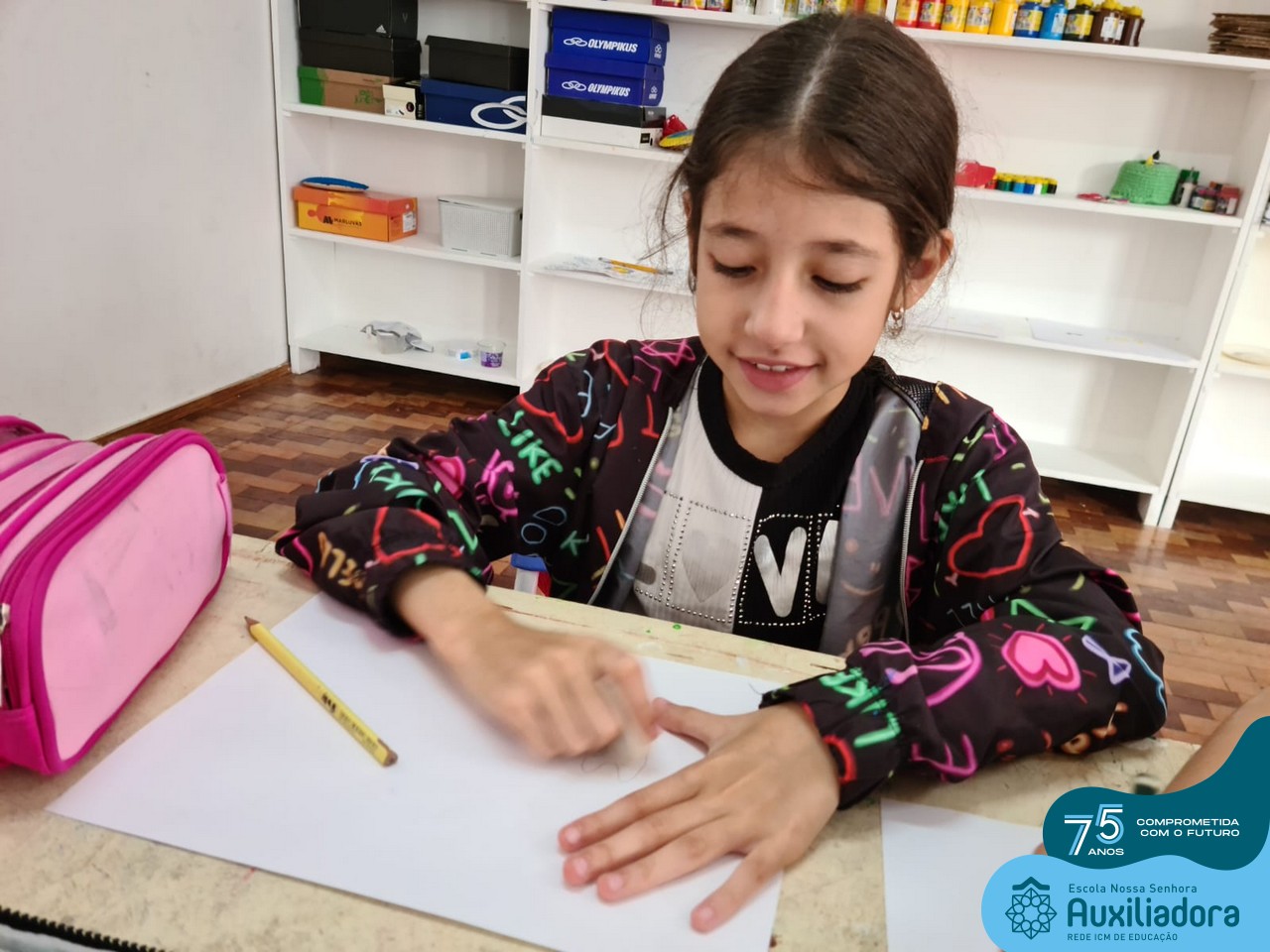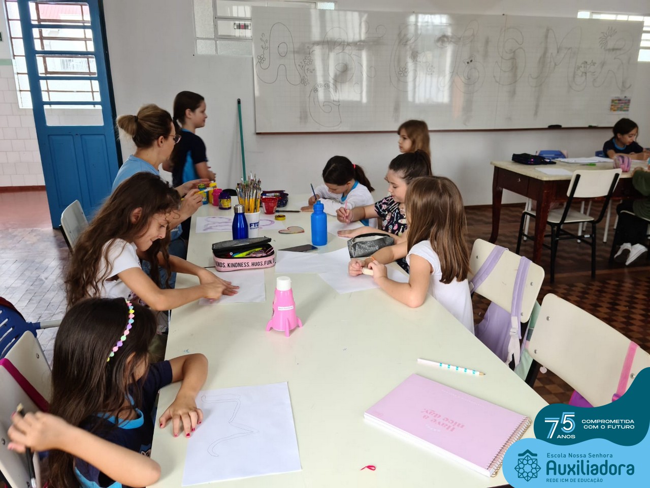 A oficina de pintura é ofertada aos alunos do 1º ao 9º ano no turno inverso.