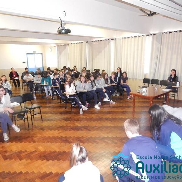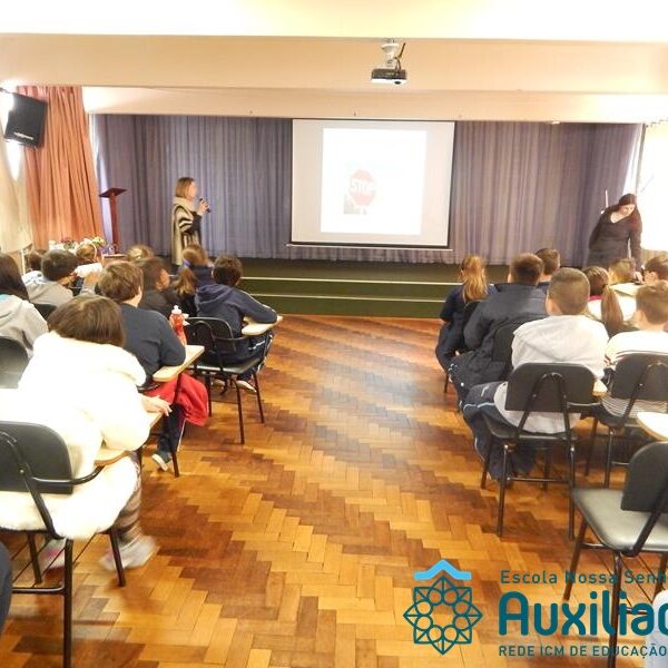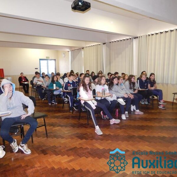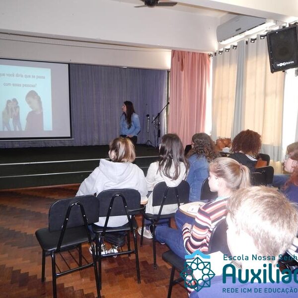 ✔Contemplando o projeto sobre bullying, realizado no primeiro trimestre, com as turmas do 4º ao 9º Ano, as Psicólogas Janine Cerutti e Vanessa Balen Felin, ministraram uma brilhante palestra em nossa escola. ✔Explanaram sobre Empatia, ou seja, a capacidade de compreender o outra pessoa. Agradecemos as profissionais pelo trabalho realizado em nosso educandário.💖