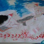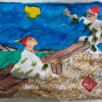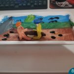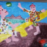Cada criança usou a sua criatividade para fazer a releitura da obra “Palhacinhos na Gangorra” utilizando diferentes tipos de materiais.