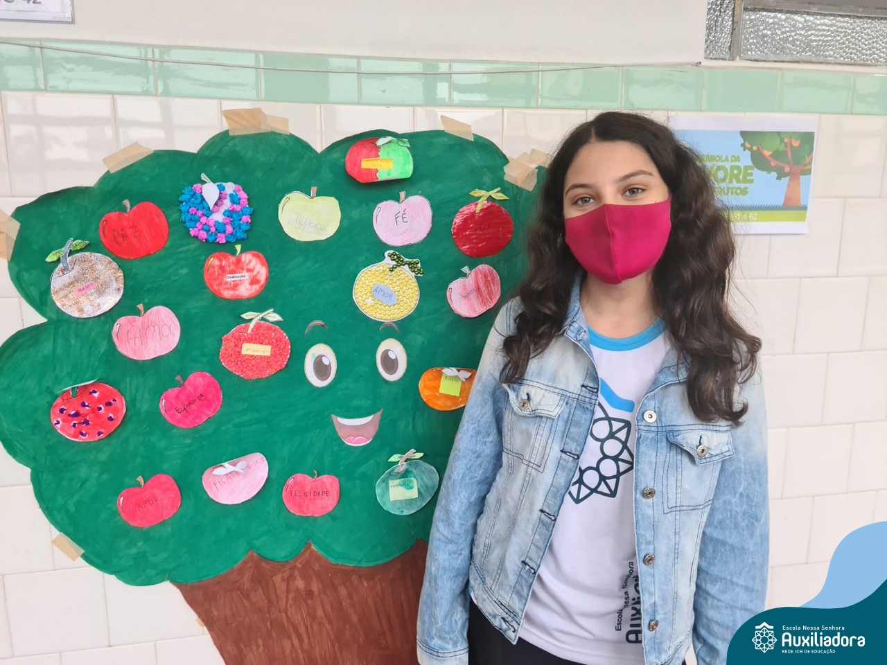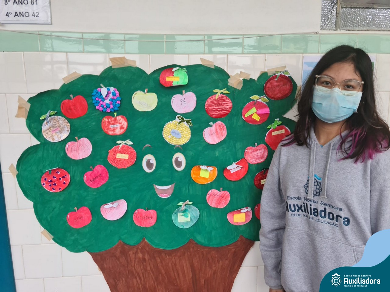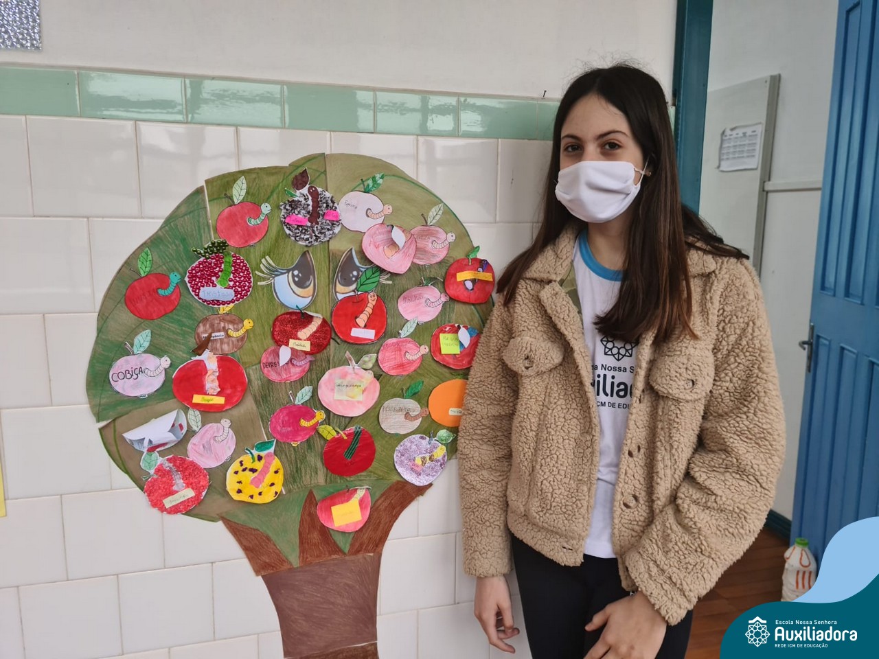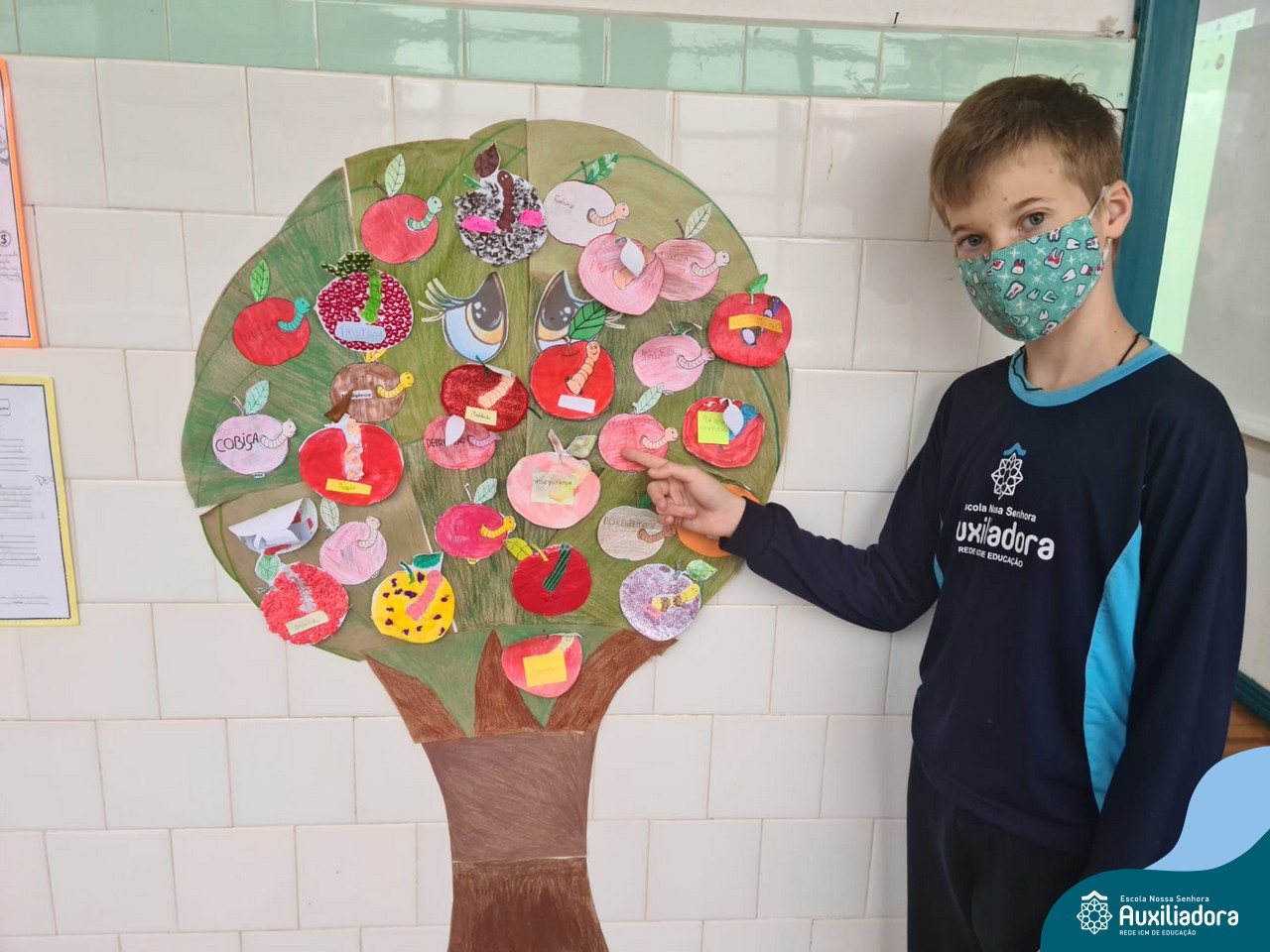 A turma do 6º ano 61 estudou e confeccionou trabalhos alusivos sobre a parábola: Árvore e seus frutos. Além disso, foram realizadas leituras bíblicas diariamente e visitas a Capela da Escola no decorrer do mês.