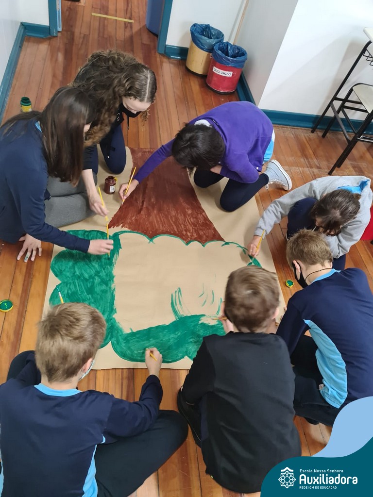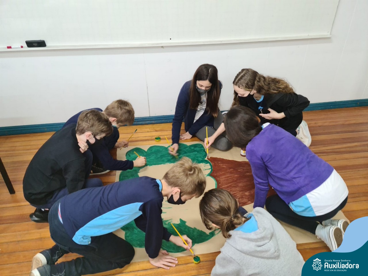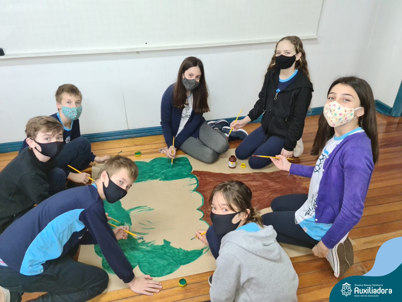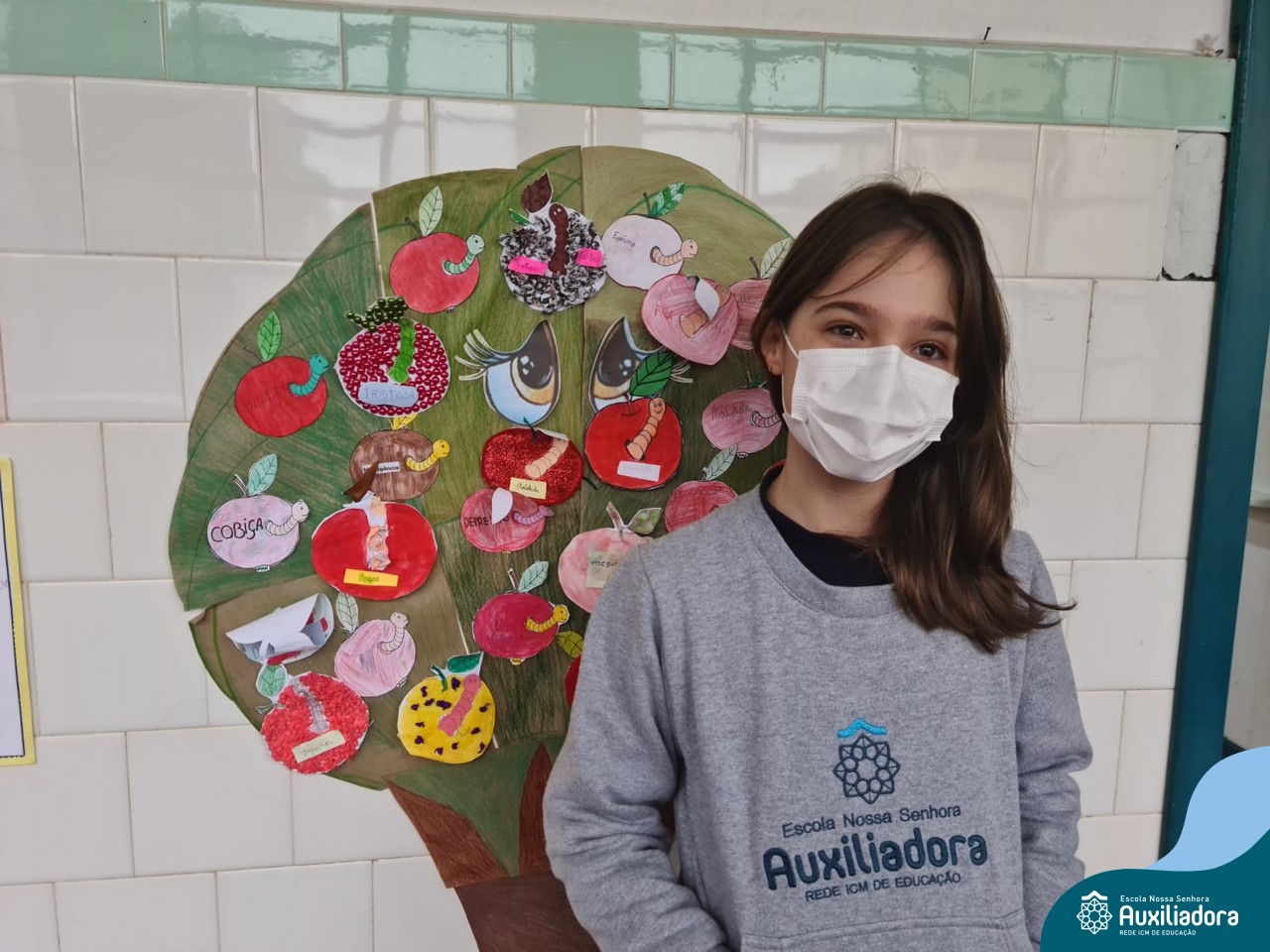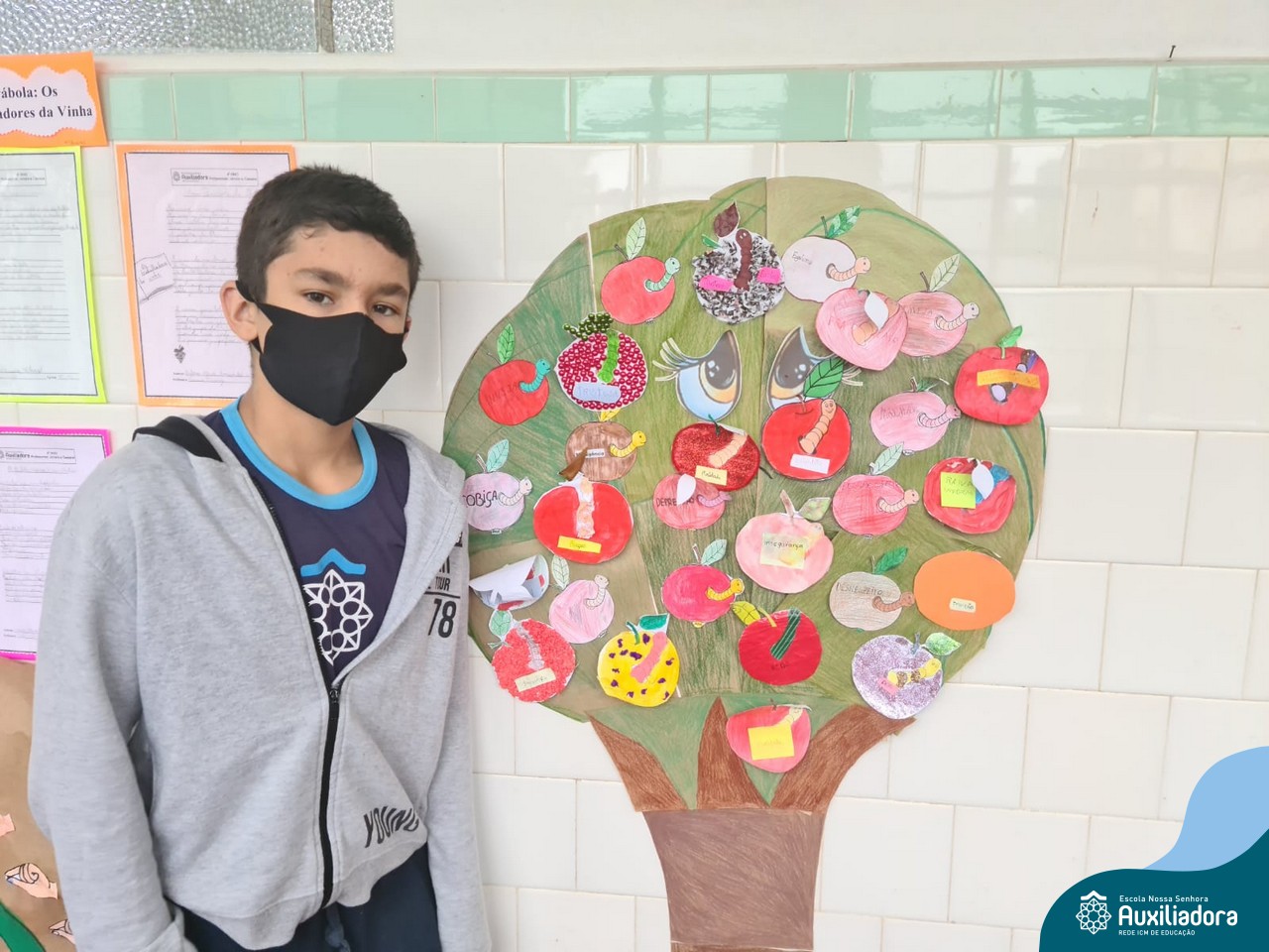 A turma do 6º ano 61 estudou e confeccionou trabalhos alusivos sobre a parábola: Árvore e seus frutos. Além disso, foram realizadas leituras bíblicas diariamente e visitas a Capela da Escola no decorrer do mês.