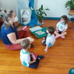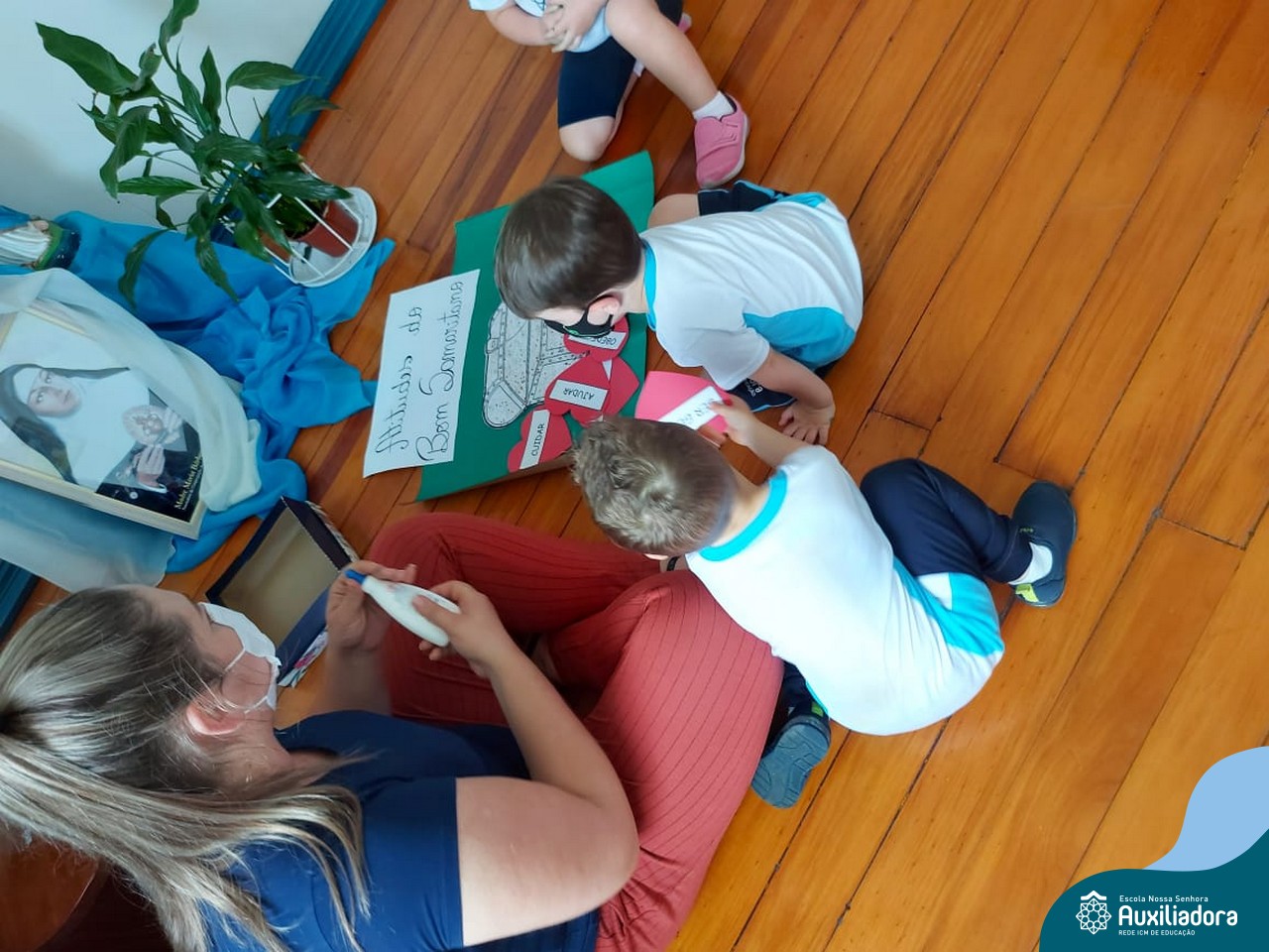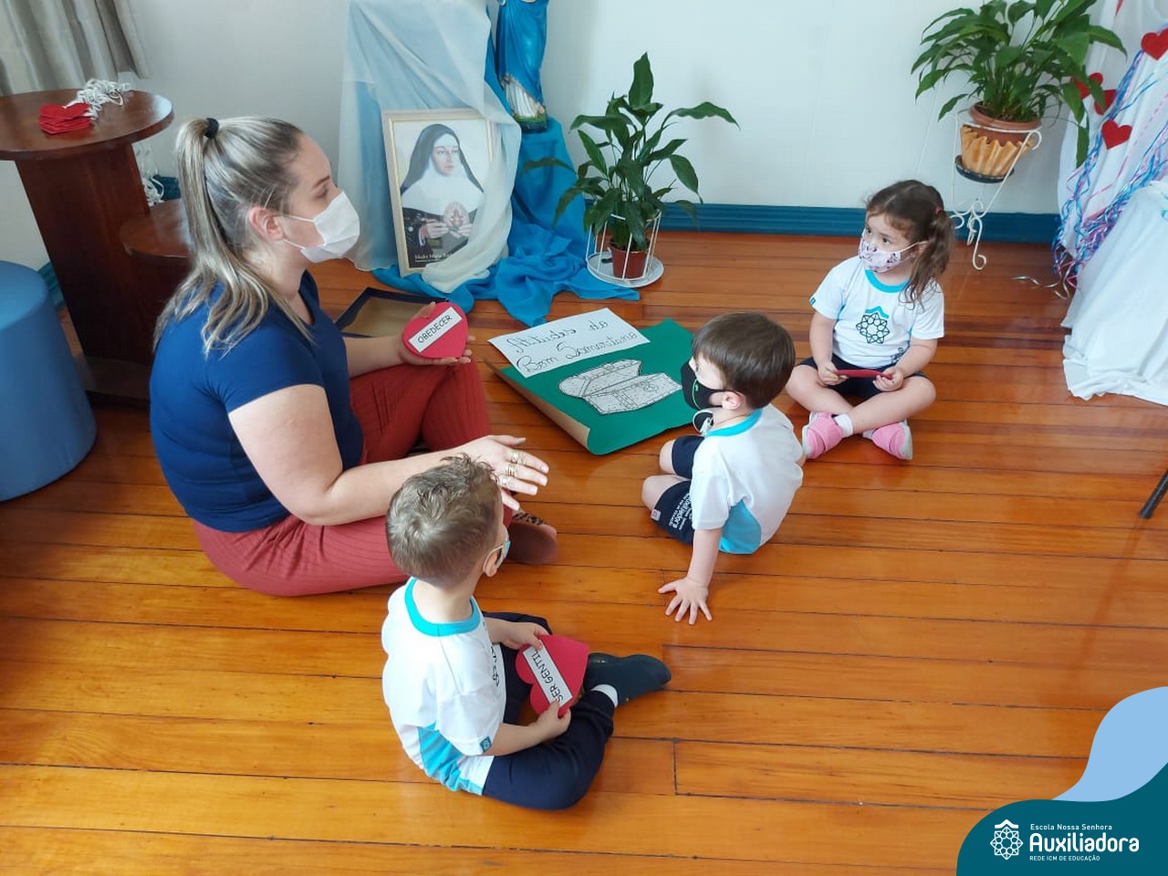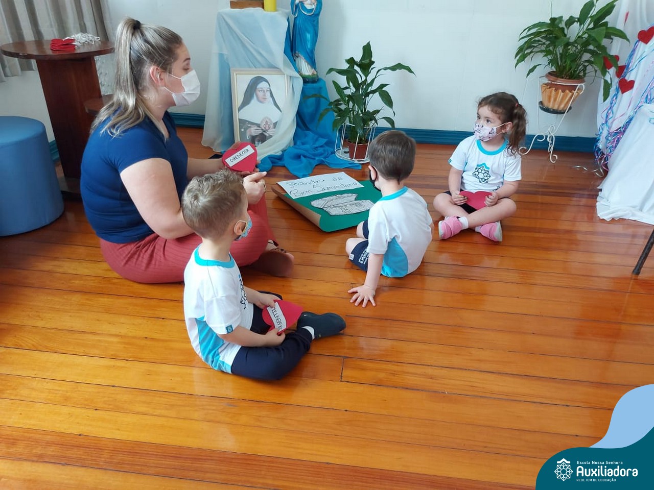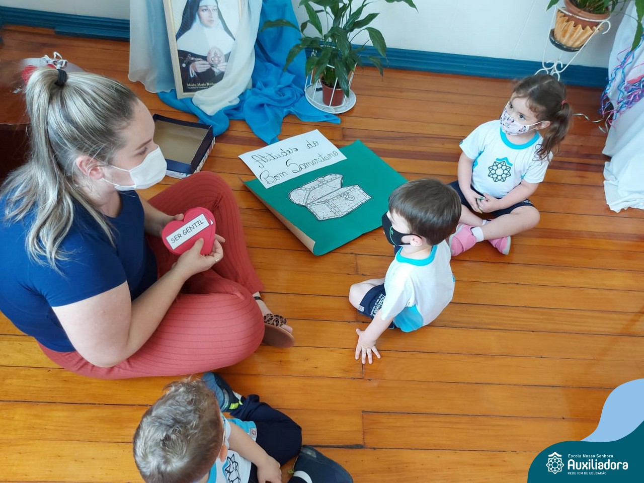 A turma do Maternal 1 A estudou e confeccionou trabalhos alusivos sobre a parábola do Bom Samaritano. Além disso, foram realizadas leituras bíblicas diariamente e visitas a Capela da Escola no decorrer do mês.