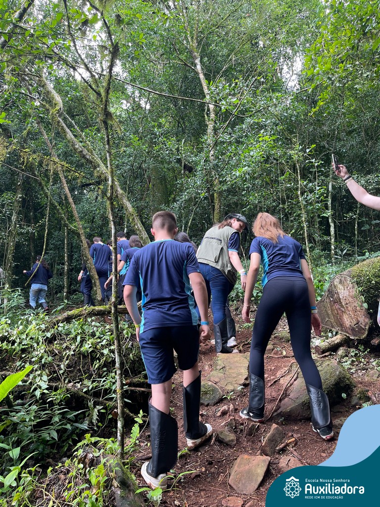 Nada se compara à experiência de conhecer para aprender a preservar. Foi exatamente isso que o 8º ano vivenciou em sua visita ao Turvo! Ao longo de quilômetros de caminhada por trilhas cercadas por plantas milenares, os estudantes puderam sentir o cheiro da mata, escutar os sons únicos da natureza e se conectar com um ambiente tão diferente do cotidiano urbano. Momentos como esses nos fazem compreender a importância vital de conservar espaços como o Turvo.