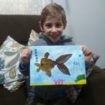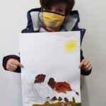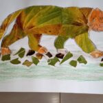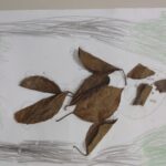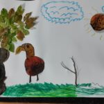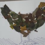 Nesta atividade, cada aluno sorteou um animal, e recebeu a tarefa de produzir um desenho sobre ele, utilizando folhas secas.