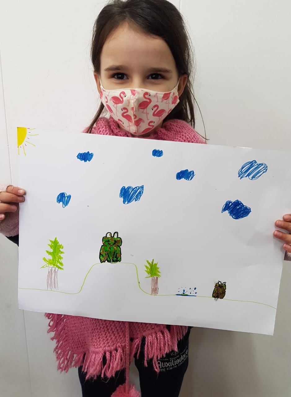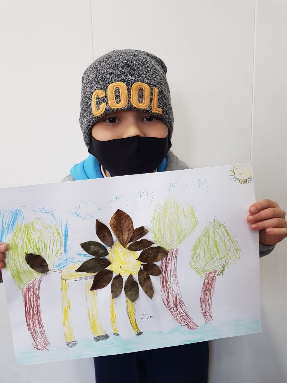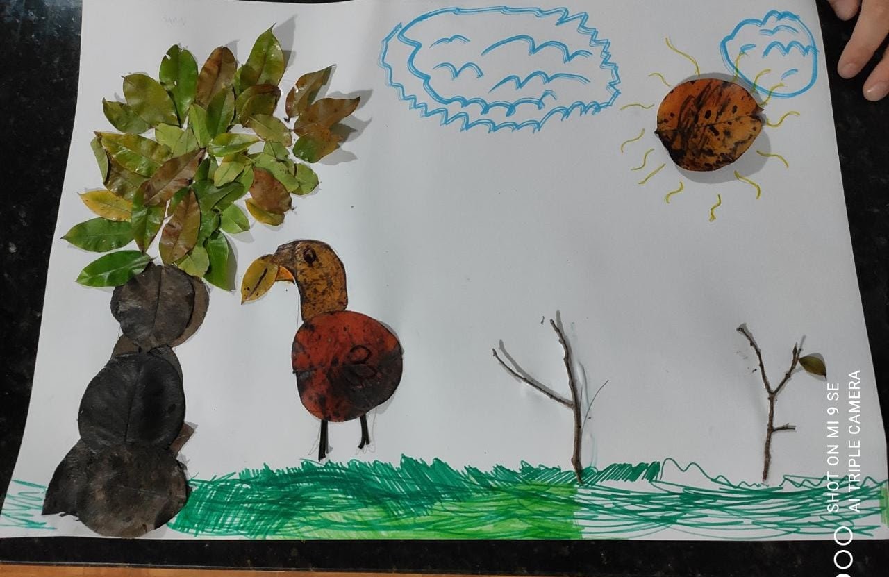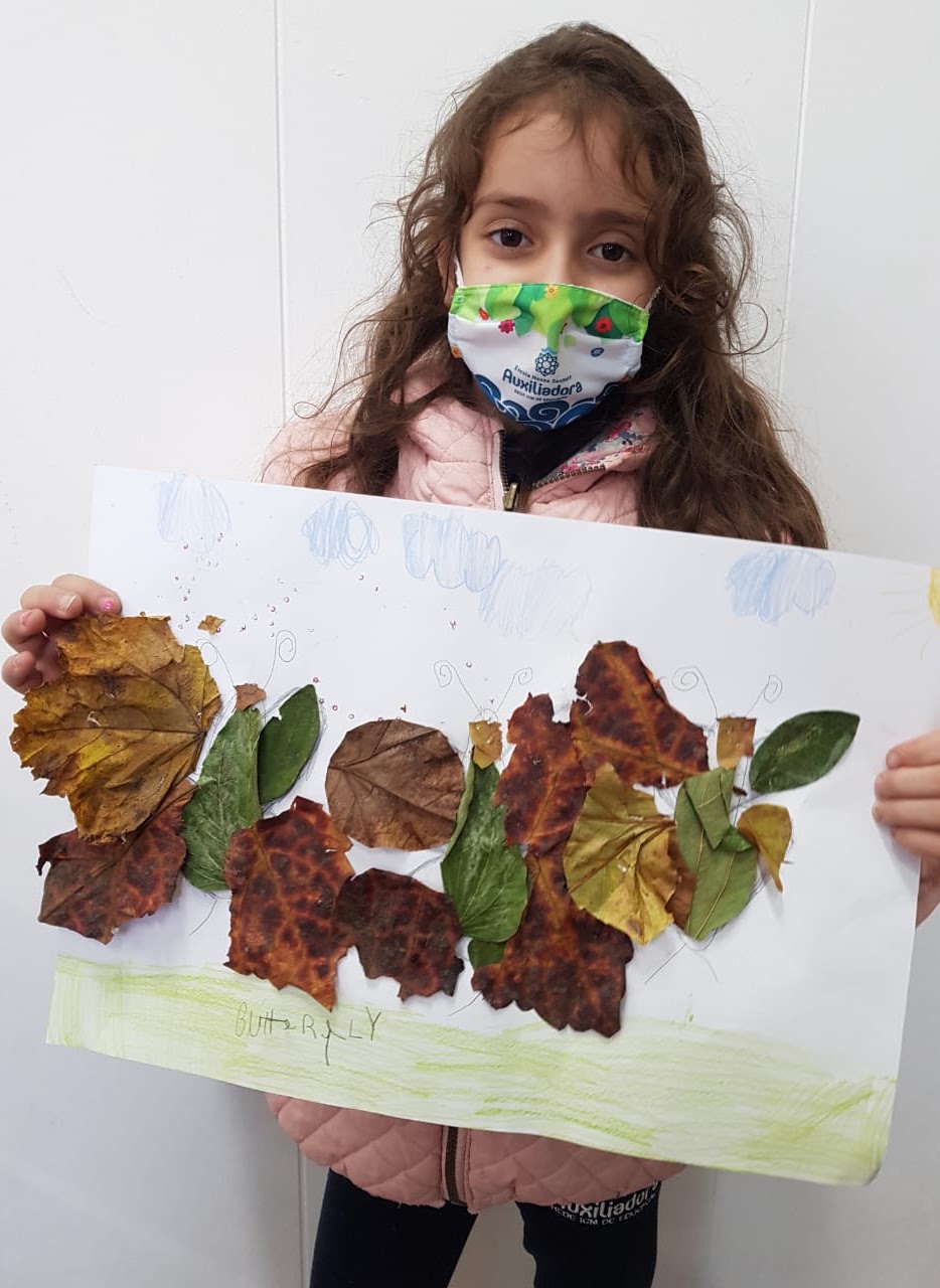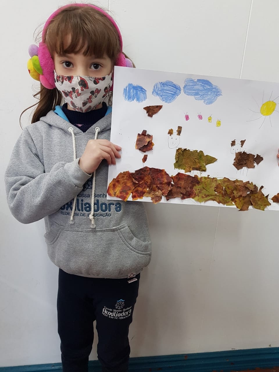 Para corroborar com o tema pesquisado pela turma sobre os recursos naturais, nas aulas de inglês, desenvolvemos a atividade: LEAF ART – Desenhando com folhas.