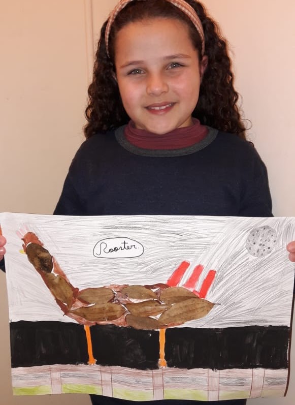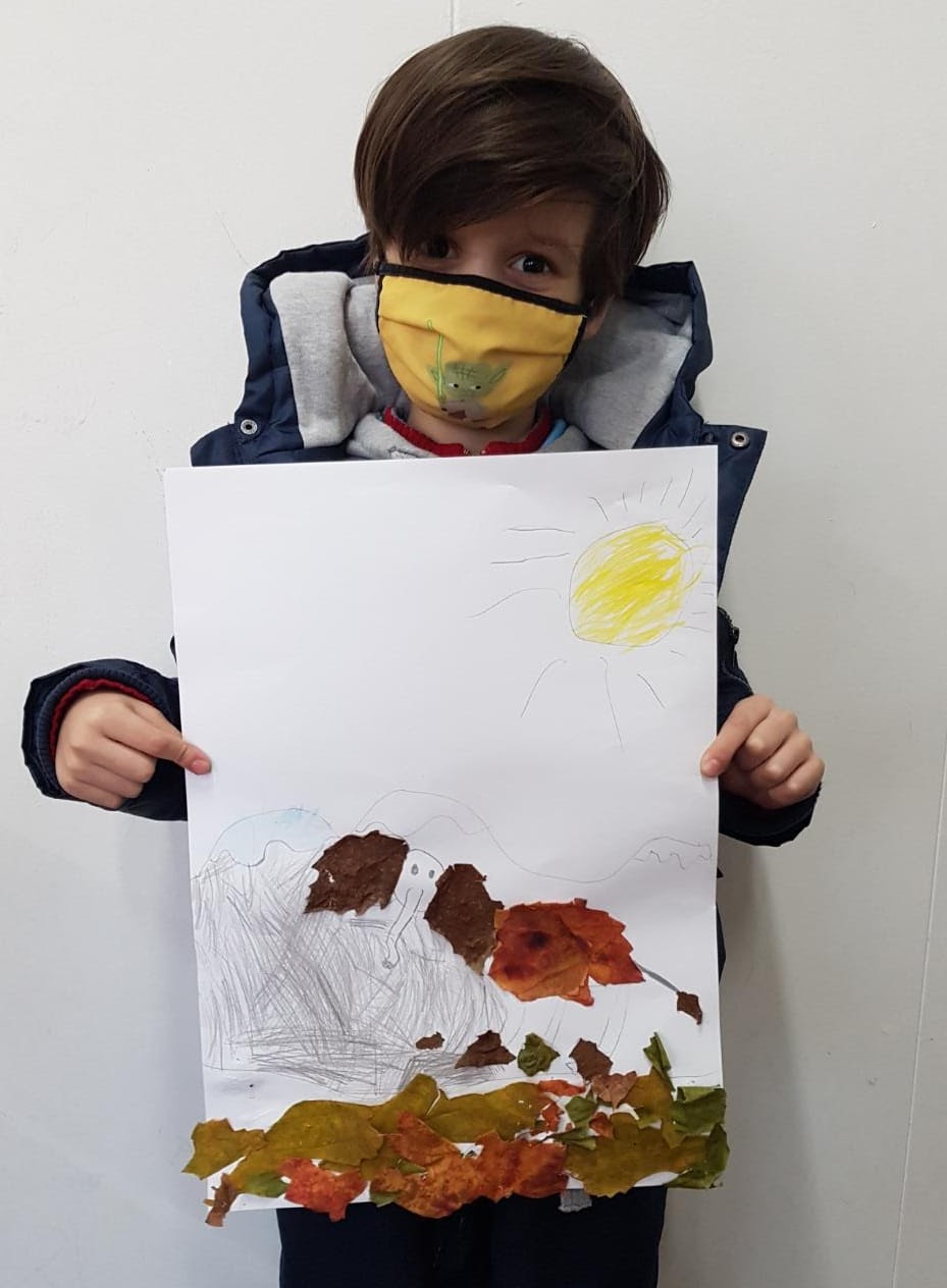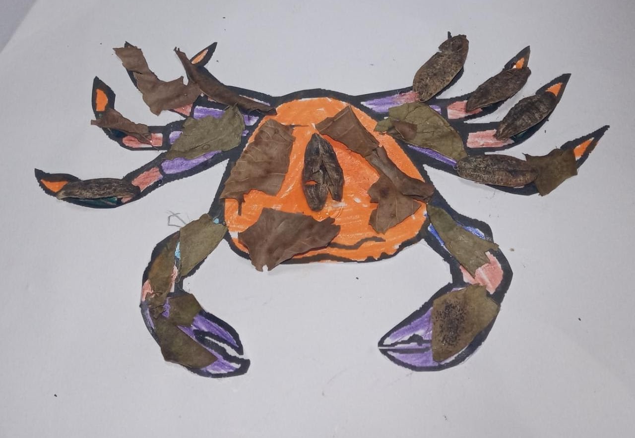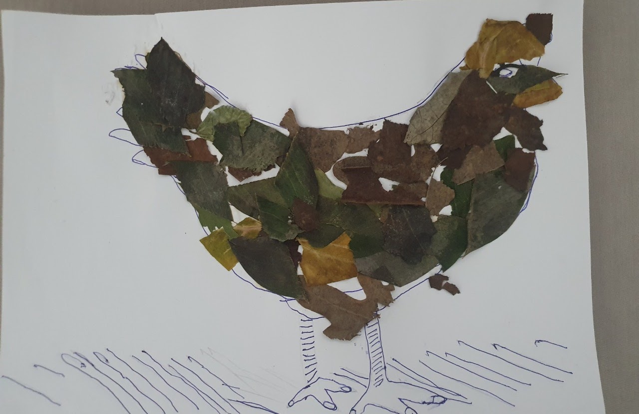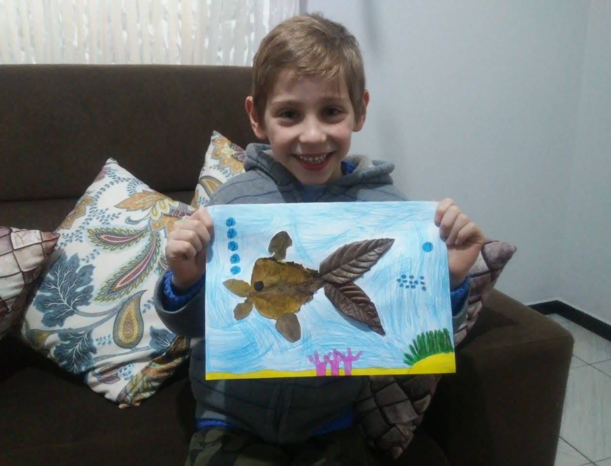 Nesta atividade, cada aluno sorteou um animal, e recebeu a tarefa de produzir um desenho sobre ele, utilizando folhas secas.