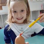 Esta semana, após escutar a história “A verdadeira história do Coelho da Páscoa”, as turmas do Pré 2 viraram ajudantes do Coelho pintando as casquinhas.