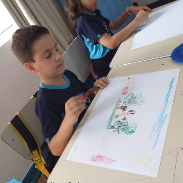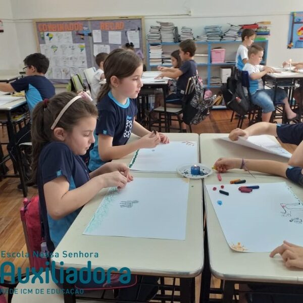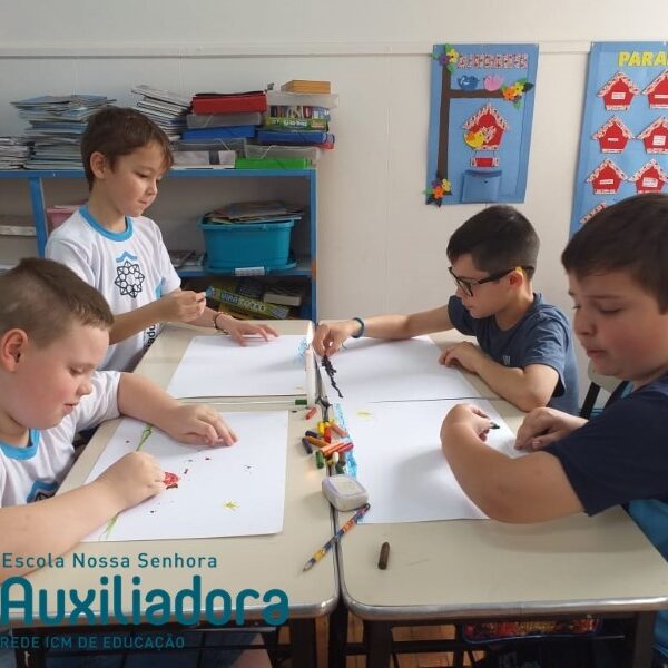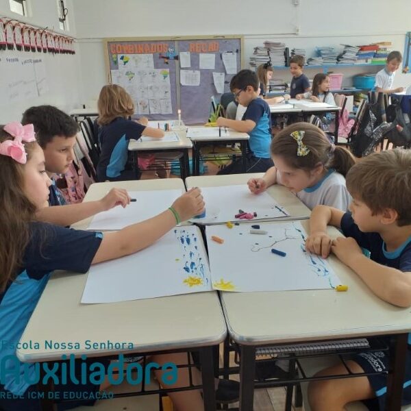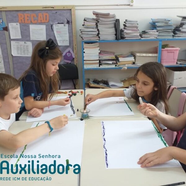 A criatividade foi ponto alto de nossa aula! Alunos usaram giz de cera aquecido no fogo da vela pra fazerem pinturas alusivas aos símbolos gaúchos!