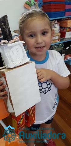A partir da colaboração dos pais, os alunos construíram, utilizando sucatas, uma representação do seu EU, com algumas de suas características. ❤️ Confira!📸 Pré 1 – 👩‍🏫 Profe Mari.