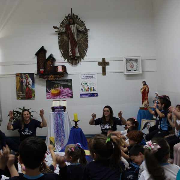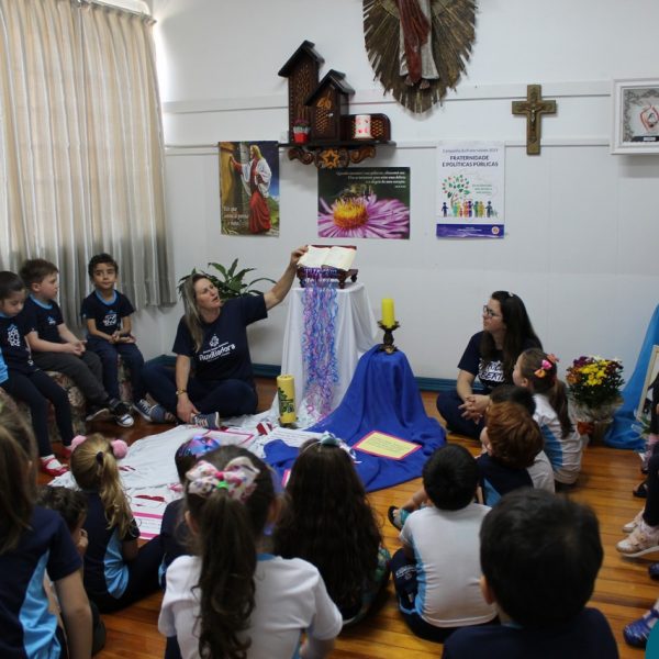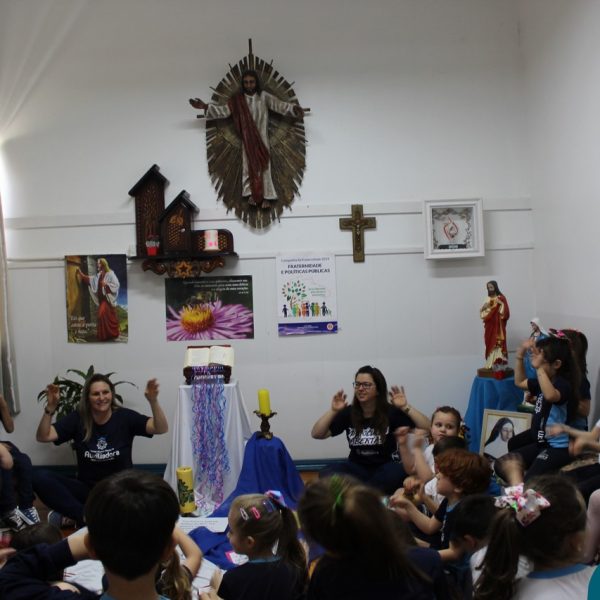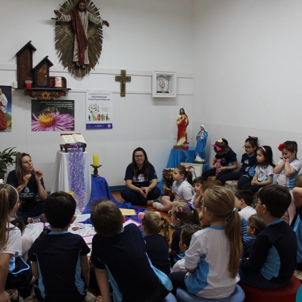 Para realizar o enceramento do mês da Bíblia realizamos um momento de fé em nossa capela. Cada um pode colocar nas mãos de Deus seus pedidos e também puderam compartilhar como foram as orações em sala, que músicas e orações aprendemos com os colegas.
