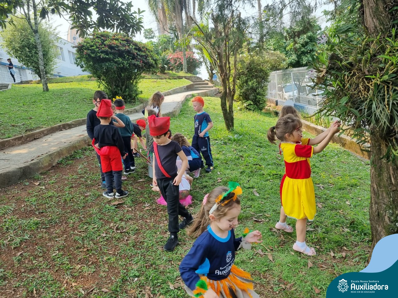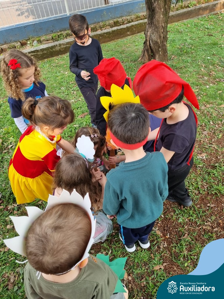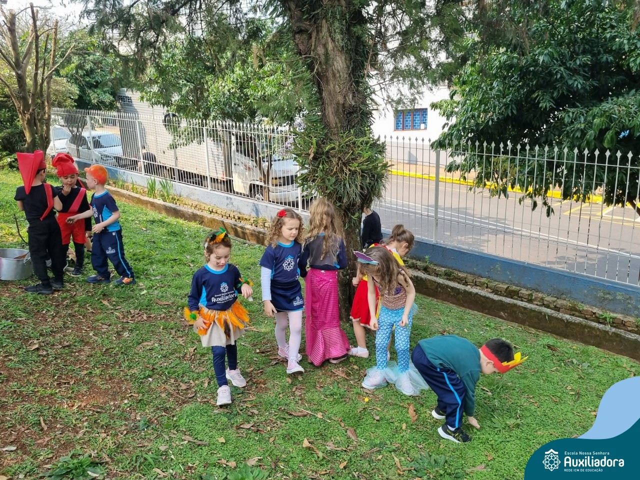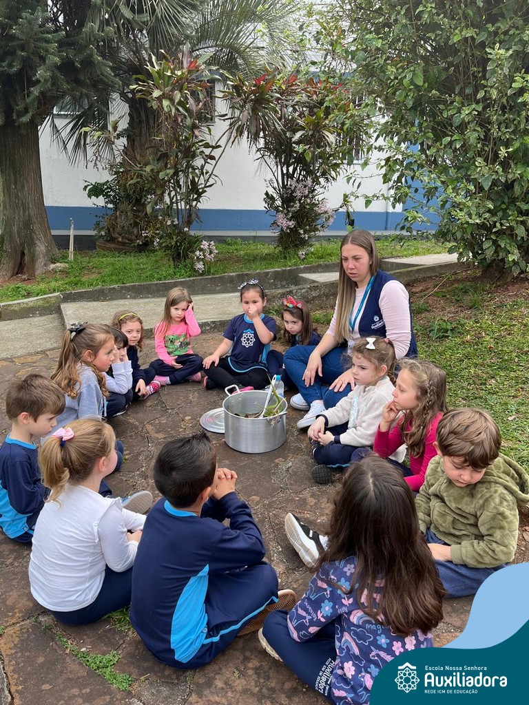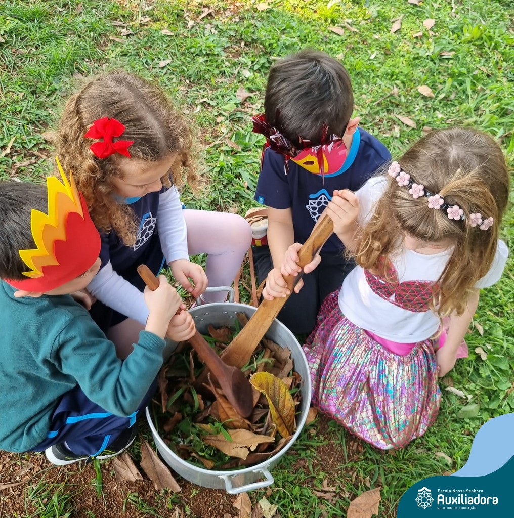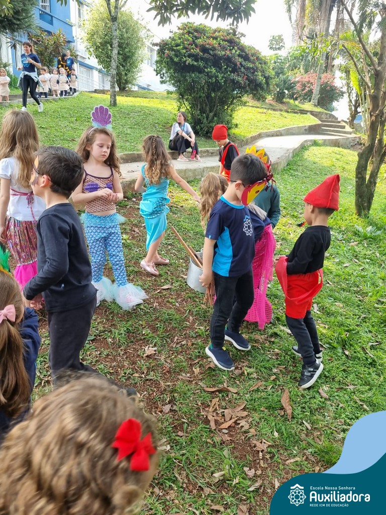 Hoje foi um dia cheio de magia e aventura! As crianças se uniram para criar uma poção mágica inspirada pela Cuca. Juntas, elas exploraram a natureza e coletaram ingredientes especiais: folhas, flores e pedrinhas. Cada item foi escolhido com muito cuidado, pois sabiam que só assim a poção teria o poder necessário.