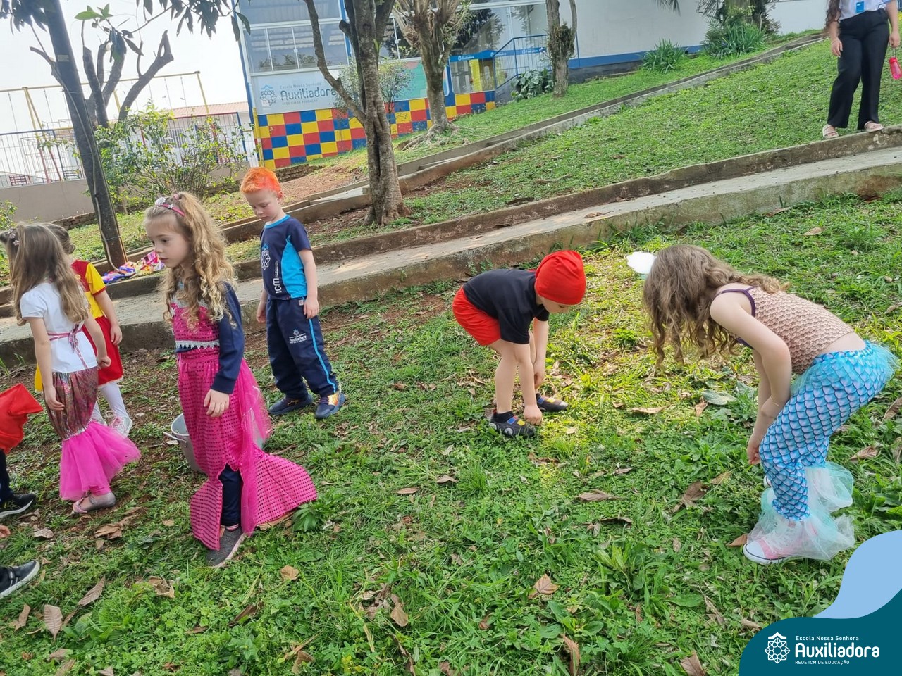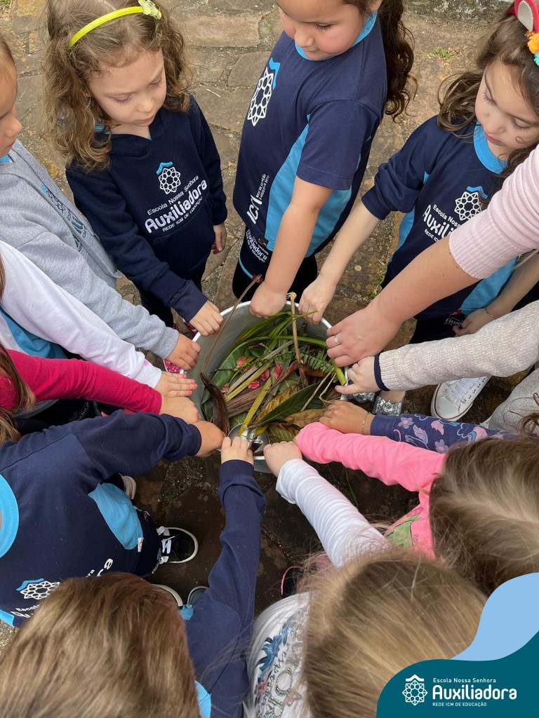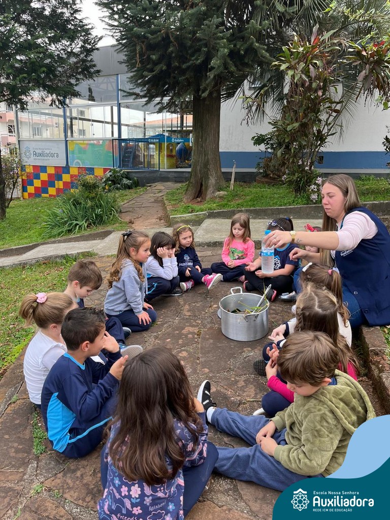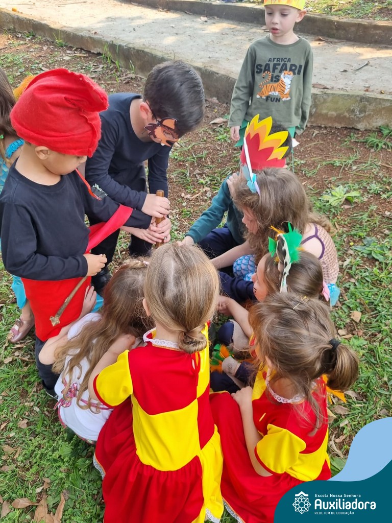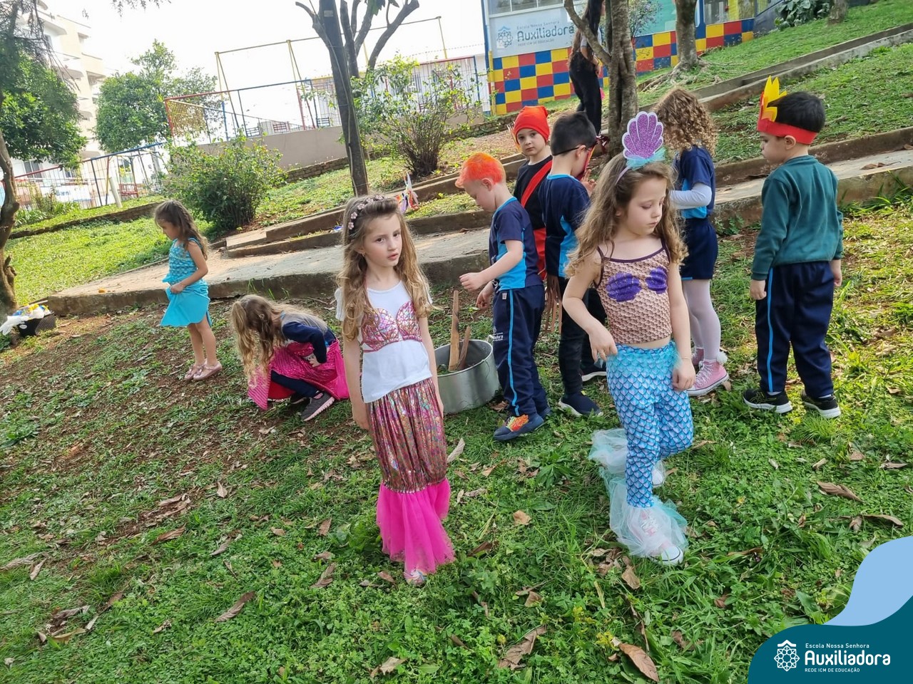 Hoje foi um dia cheio de magia e aventura! As crianças se uniram para criar uma poção mágica inspirada pela Cuca. Juntas, elas exploraram a natureza e coletaram ingredientes especiais: folhas, flores e pedrinhas. Cada item foi escolhido com muito cuidado, pois sabiam que só assim a poção teria o poder necessário.