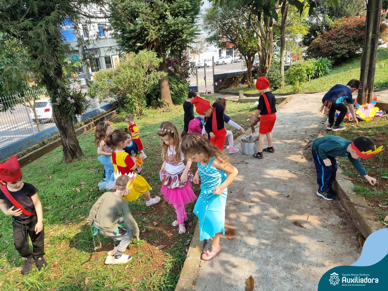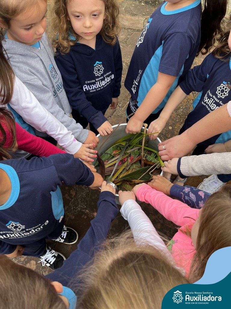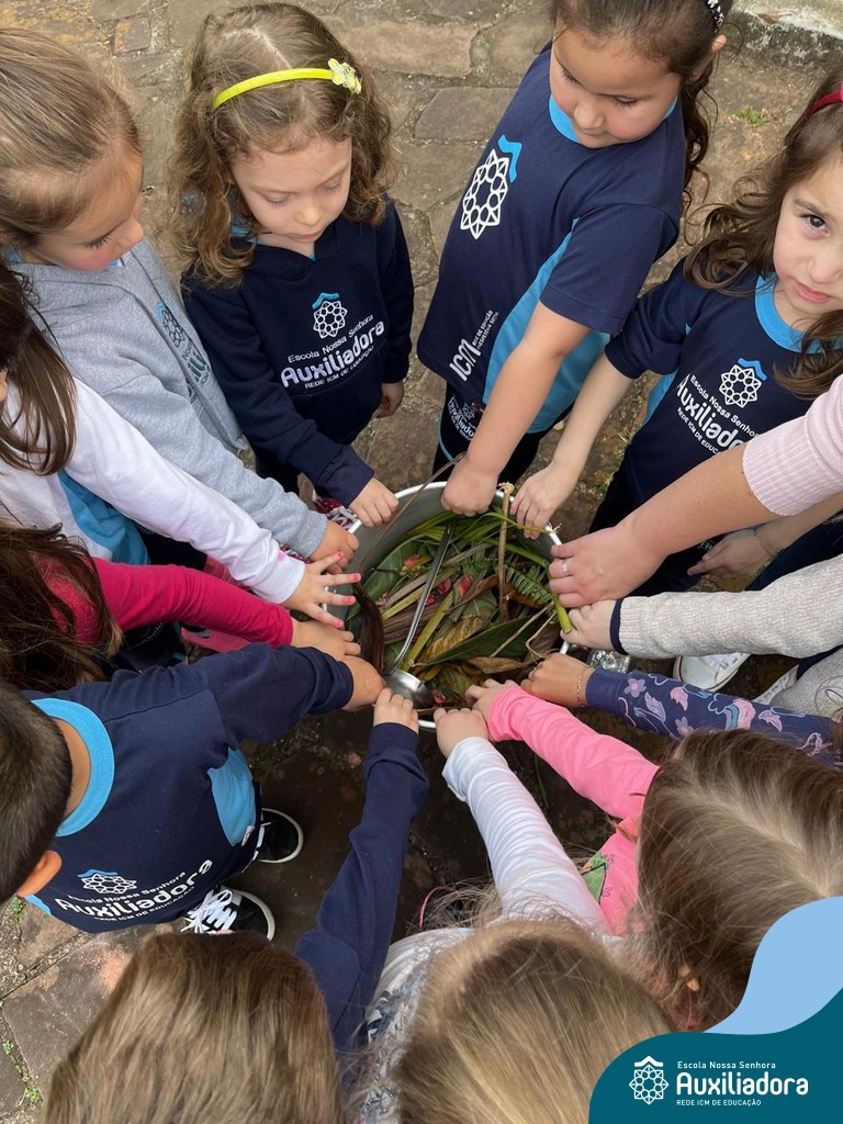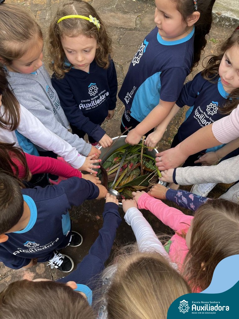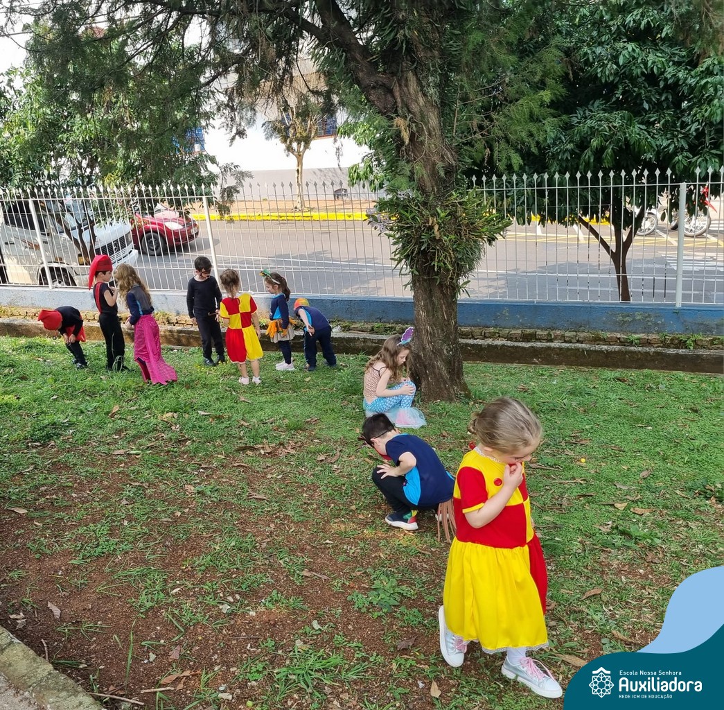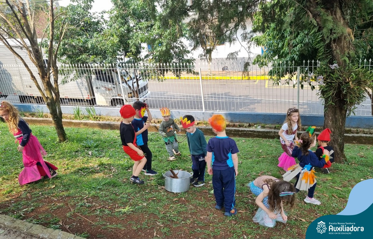 Hoje foi um dia cheio de magia e aventura! As crianças se uniram para criar uma poção mágica inspirada pela Cuca. Juntas, elas exploraram a natureza e coletaram ingredientes especiais: folhas, flores e pedrinhas. Cada item foi escolhido com muito cuidado, pois sabiam que só assim a poção teria o poder necessário.