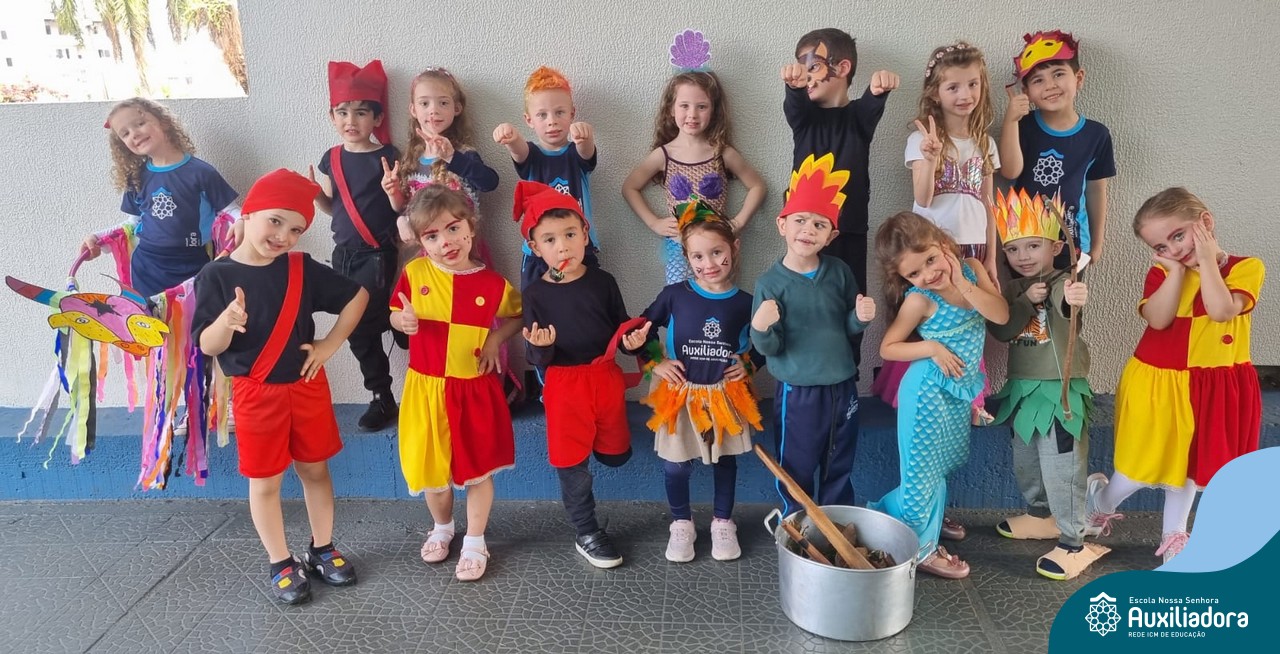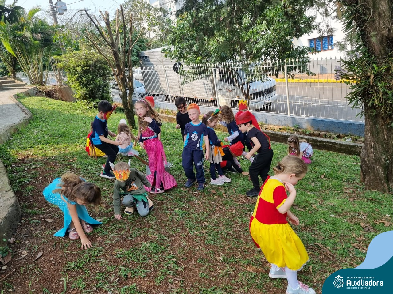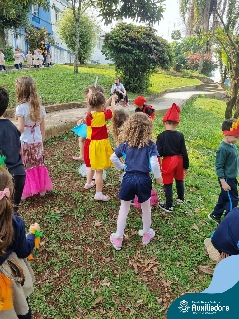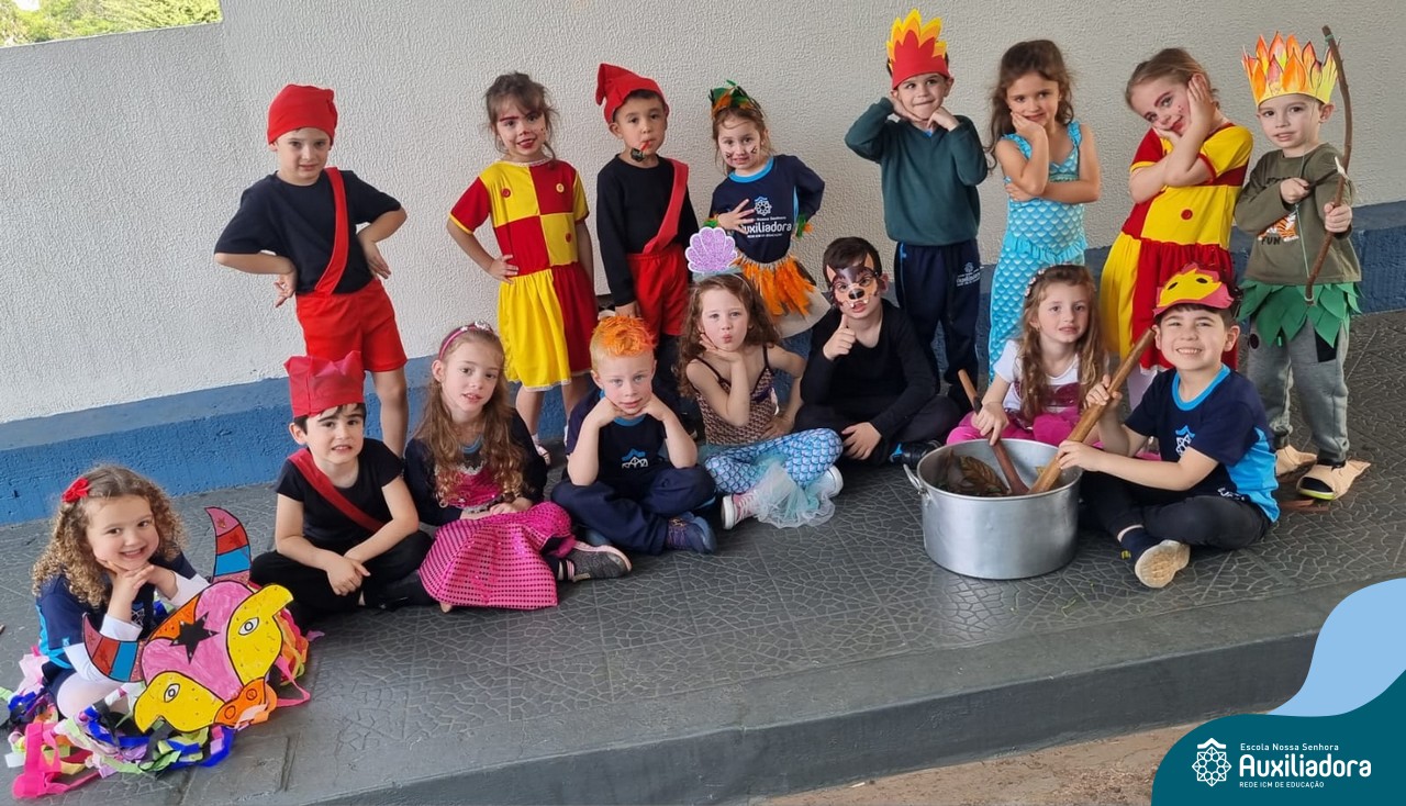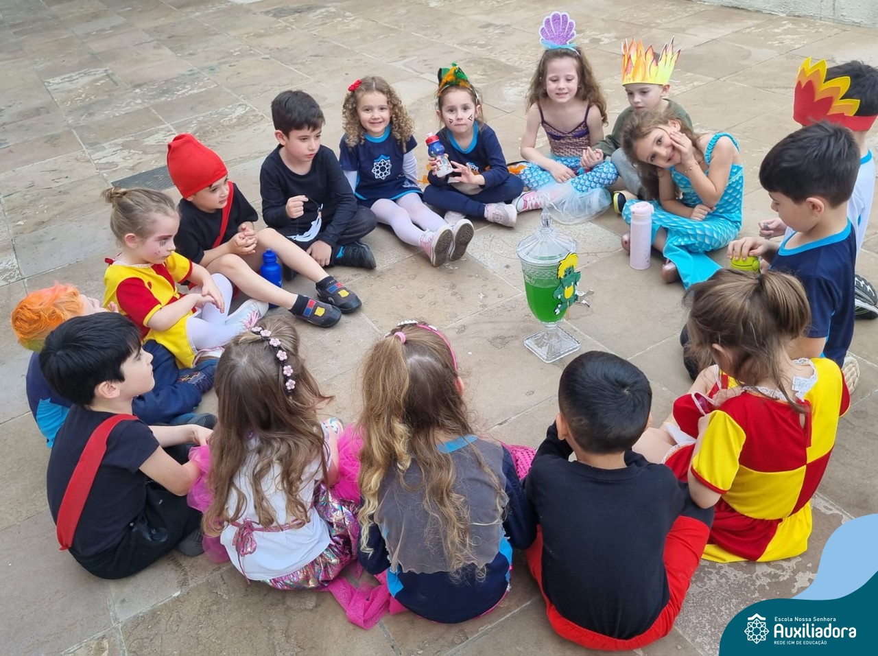 Hoje foi um dia cheio de magia e aventura! As crianças se uniram para criar uma poção mágica inspirada pela Cuca. Juntas, elas exploraram a natureza e coletaram ingredientes especiais: folhas, flores e pedrinhas. Cada item foi escolhido com muito cuidado, pois sabiam que só assim a poção teria o poder necessário.
