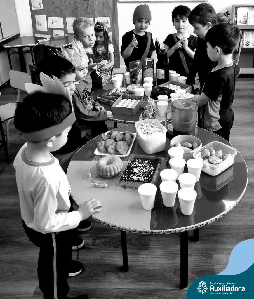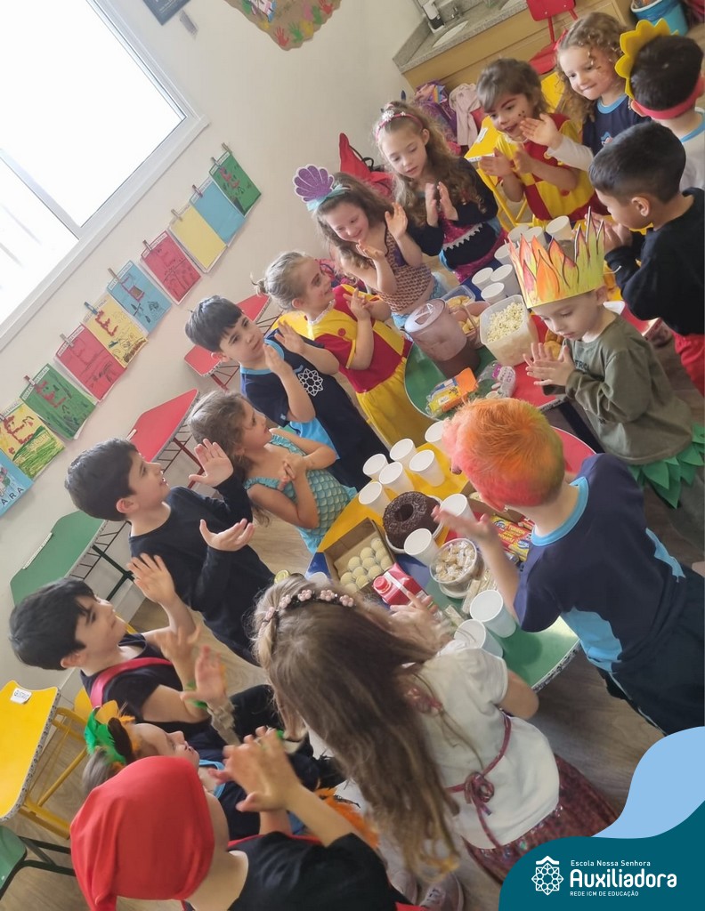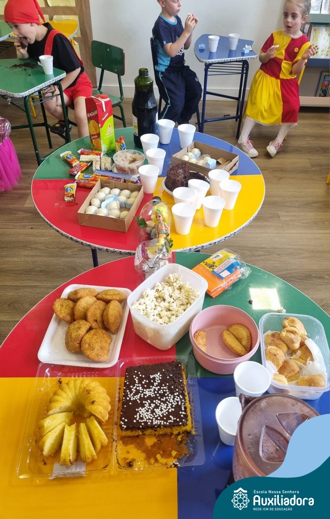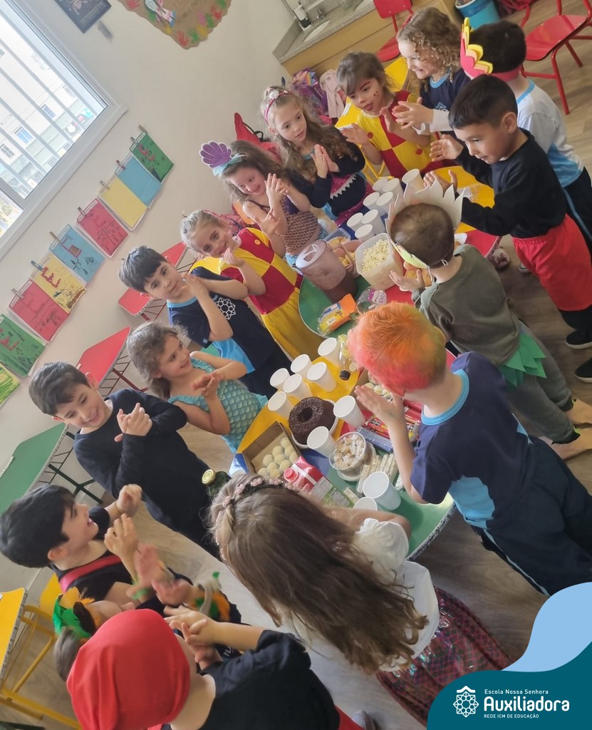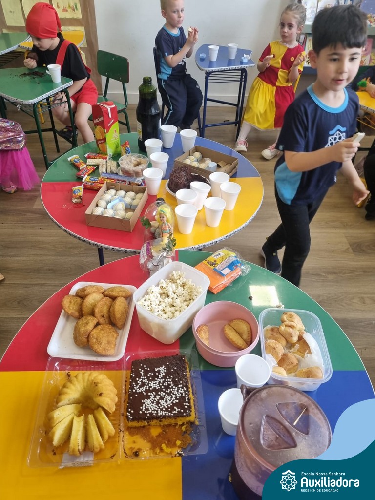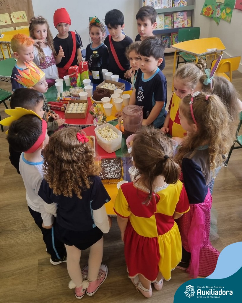 Depois de misturarem tudo, um líquido misterioso apareceu. As crianças, corajosas como sempre, aceitaram o desafio de experimentar a poção mágica, que na verdade se transformou em um delicioso suco de gelatina. Quem teria coragem de dar o primeiro gole? Com muita animação e um pouquinho de medo, todos se divertiram com a brincadeira, imaginando quais poderes poderiam ganhar com aquela mistura especial.