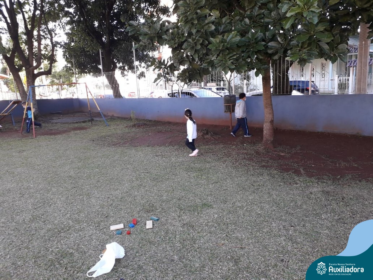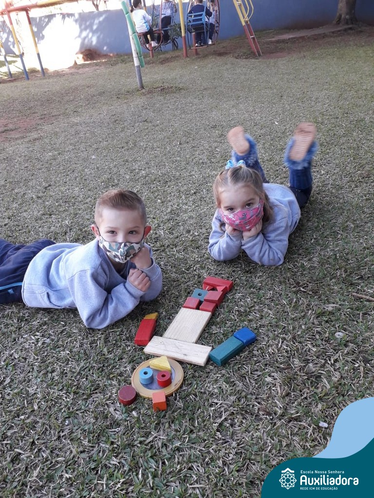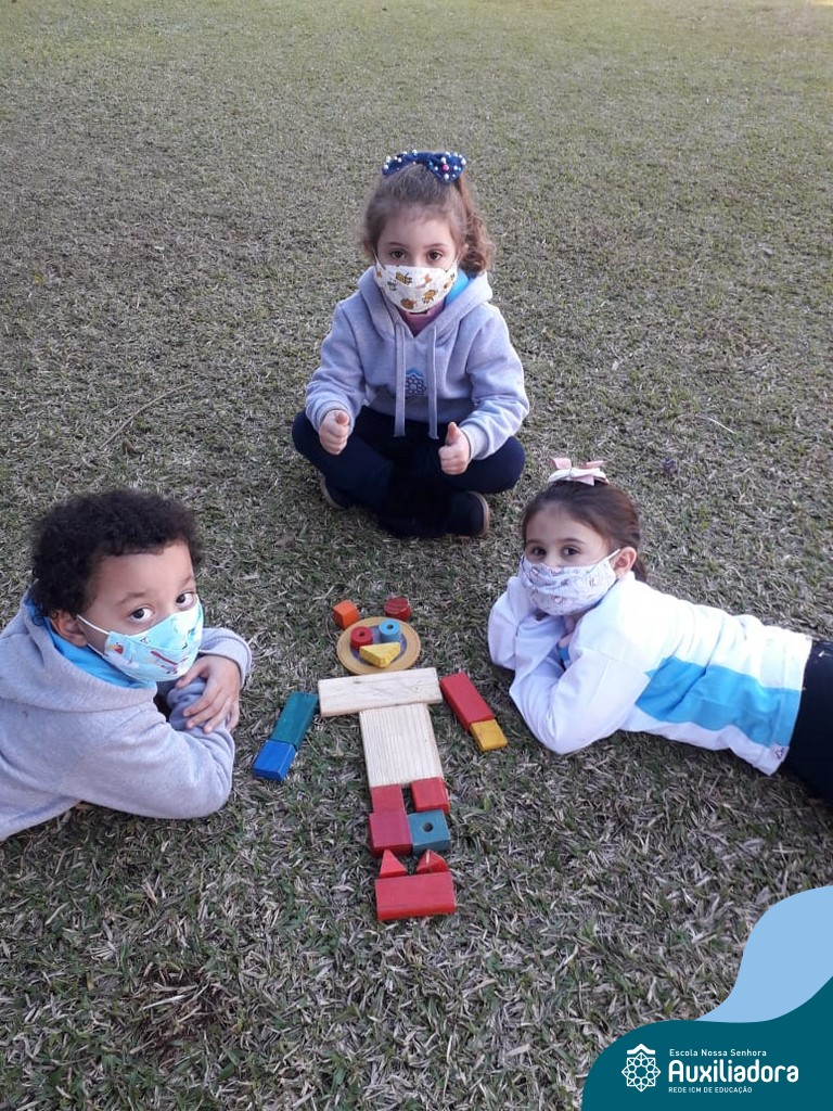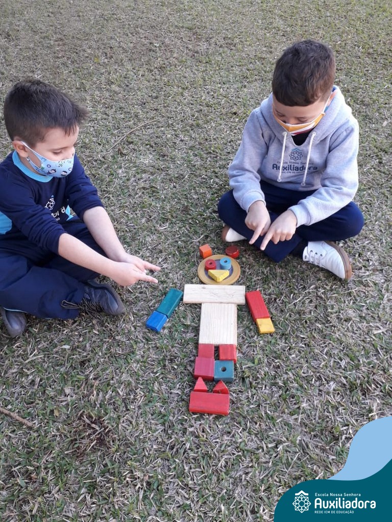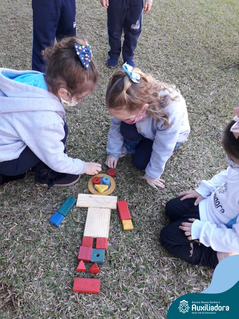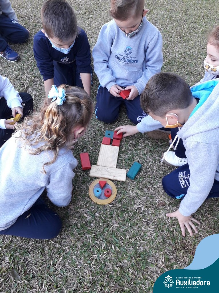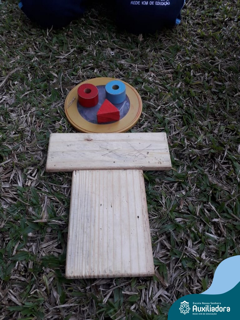 O Sol nos permitiu uma bela caça ao tesouro das formas: saímos a procura das formas geométricas, identificamos, contamos e nos divertimos muito!