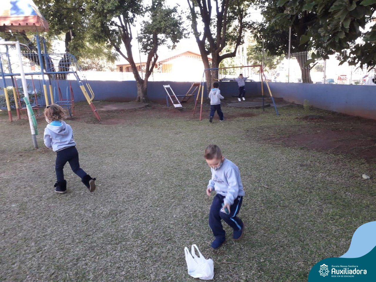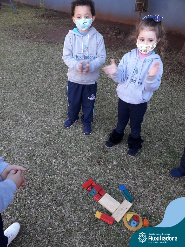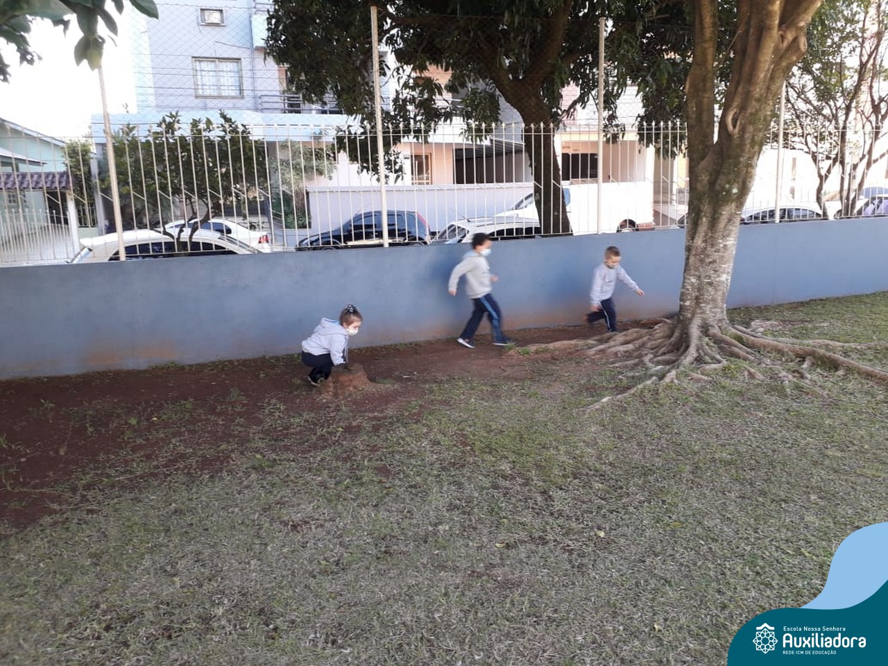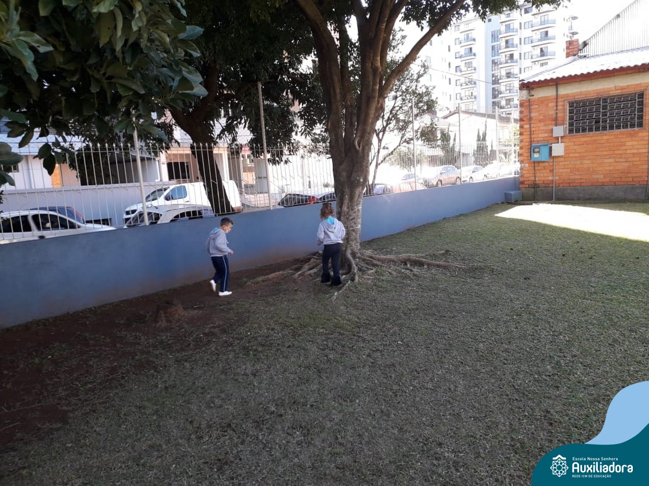 O Sol nos permitiu uma bela caça ao tesouro das formas: saímos a procura das formas geométricas, identificamos, contamos e nos divertimos muito!