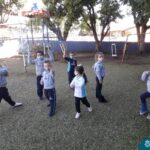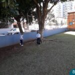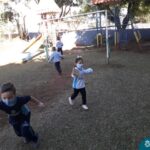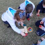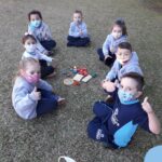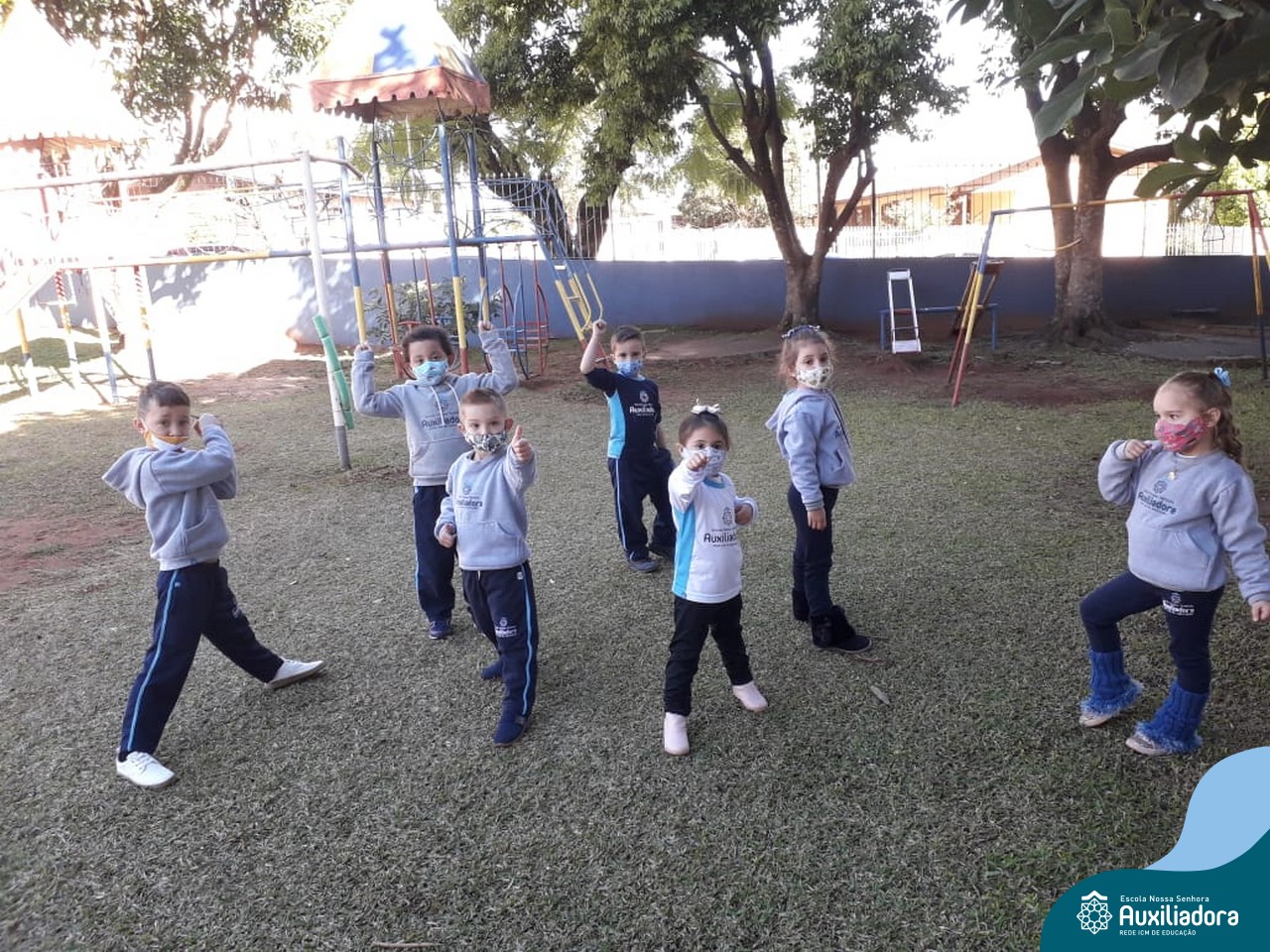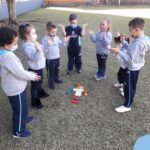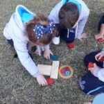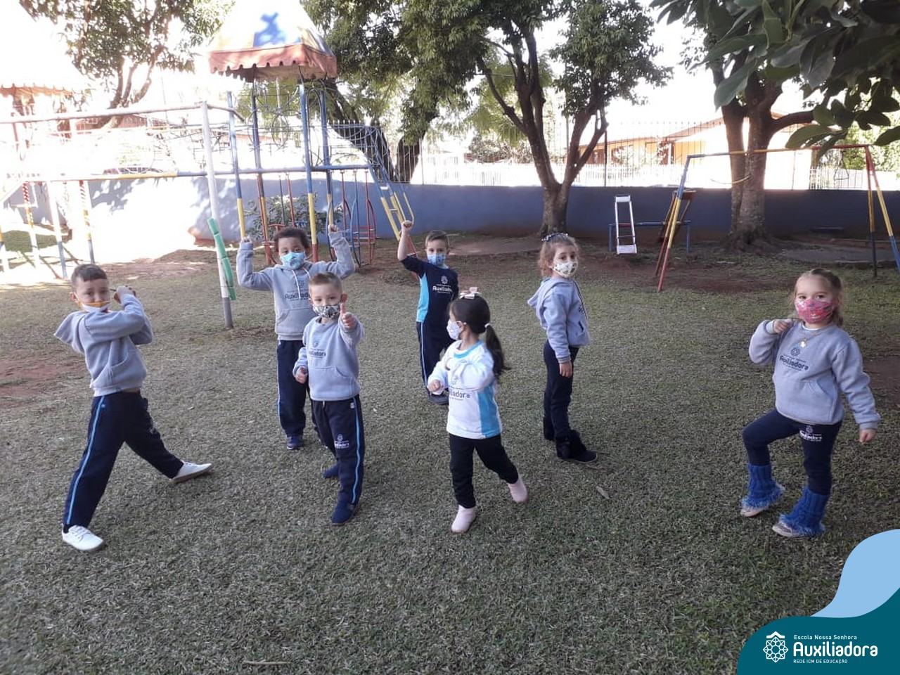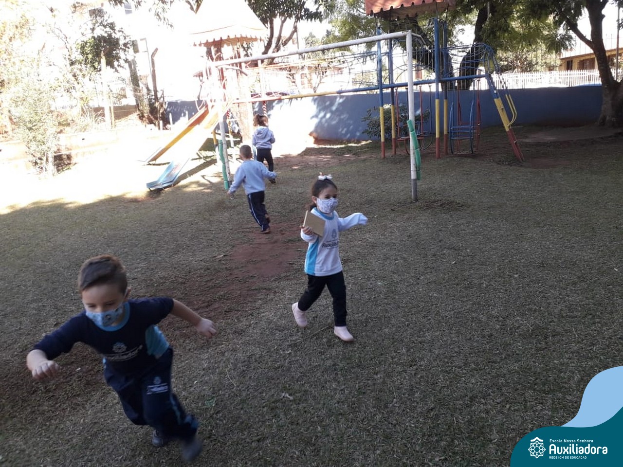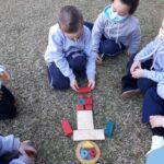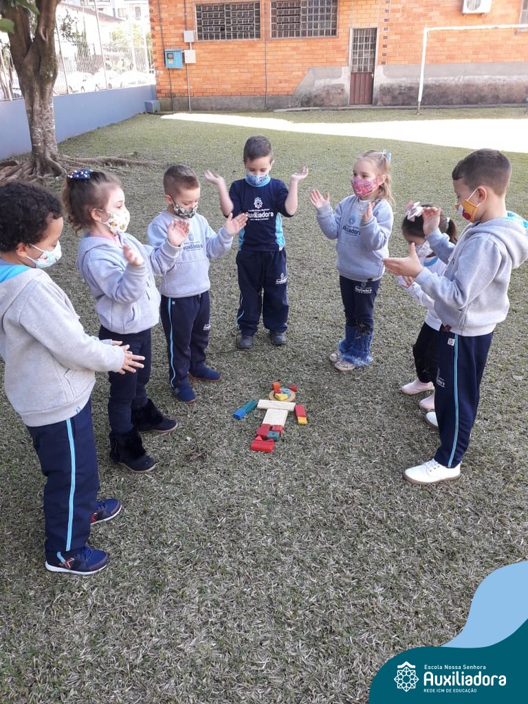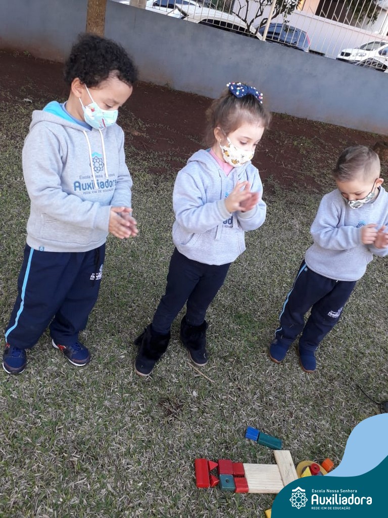 O Sol nos permitiu uma bela caça ao tesouro das formas: saímos a procura das formas geométricas, identificamos, contamos e nos divertimos muito!