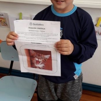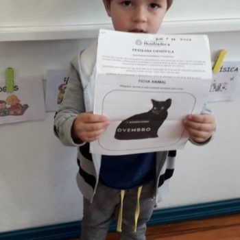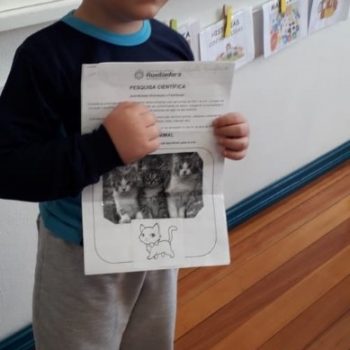 Tudo que está ao entorno provoca dúvidas, curiosidades e porquês, principalmente os alunos entre 4 a 5 anos. A partir das vivências realizadas com a presença do gato no pátio da escola, os alunos se questionavam e possuíam curiosidades. Quando questionados do porque da escolha do animal “gato”, os alunos defenderam que este animal é carinhoso, precisa de atenção e cuidados, precisavam aprender mais sobre como proteger o animal na escola e também se preocuparam com tantos animais como este que estão sem lar.