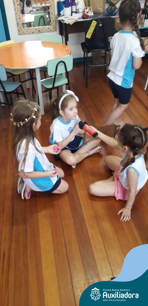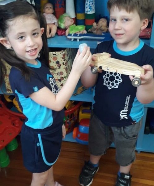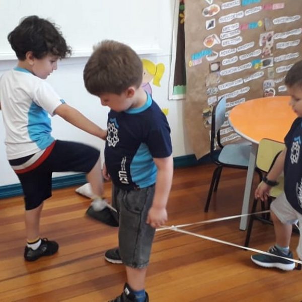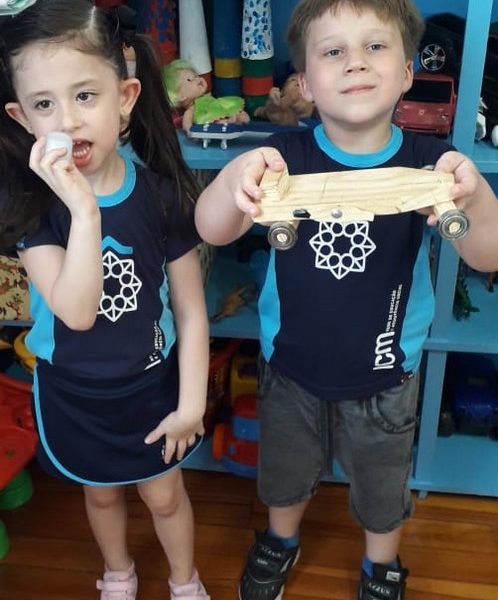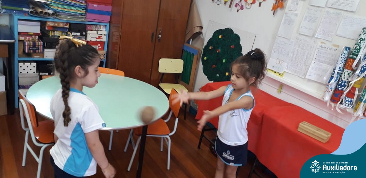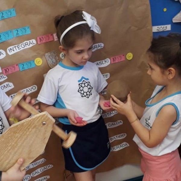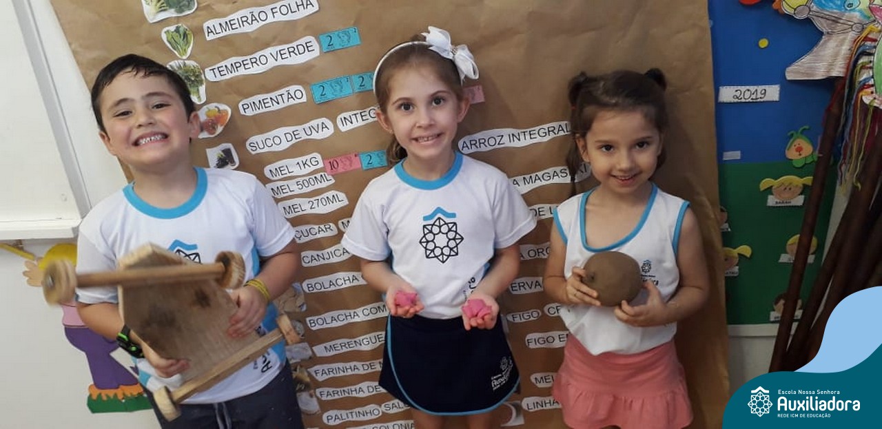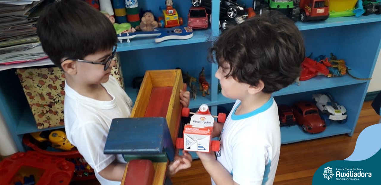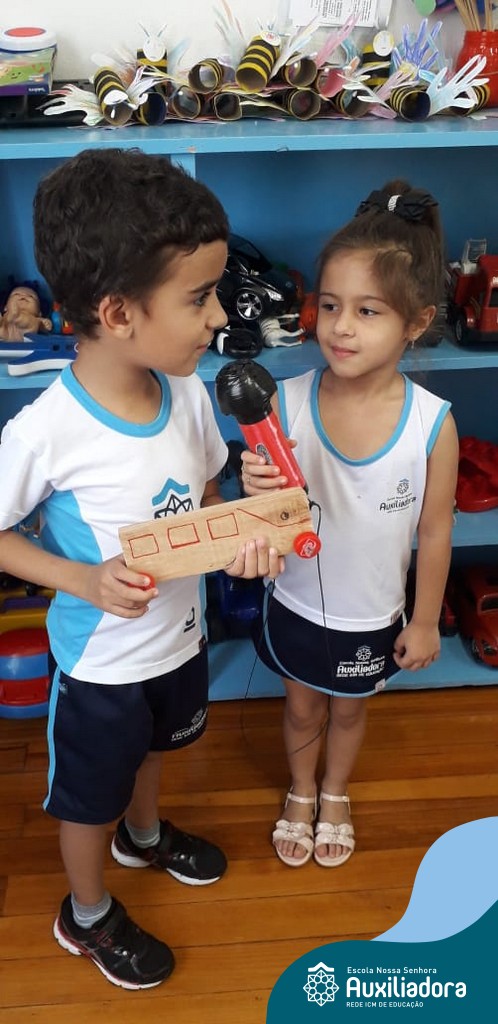 Com o objetivo de resgatar os brinquedos, jogos e brincadeiras dos antepassados, os alunos trouxeram suas construções que realizaram em família para compartilhar com os colegas.
