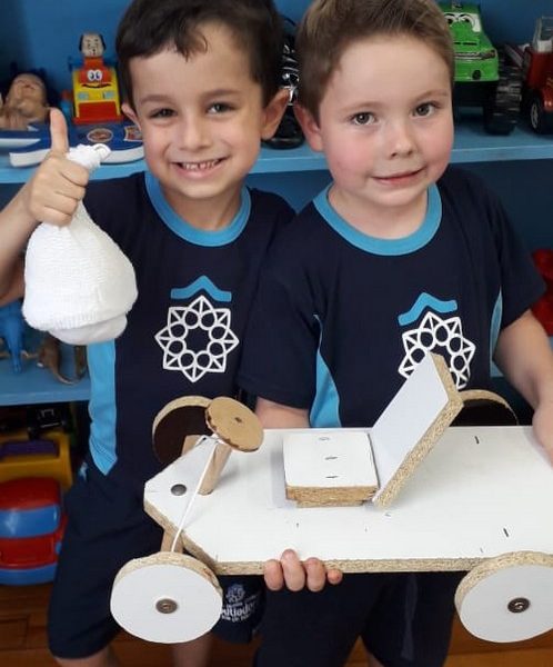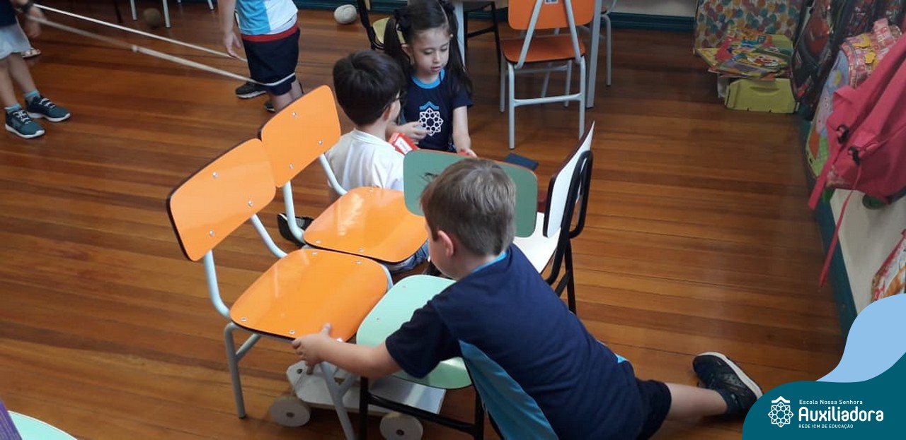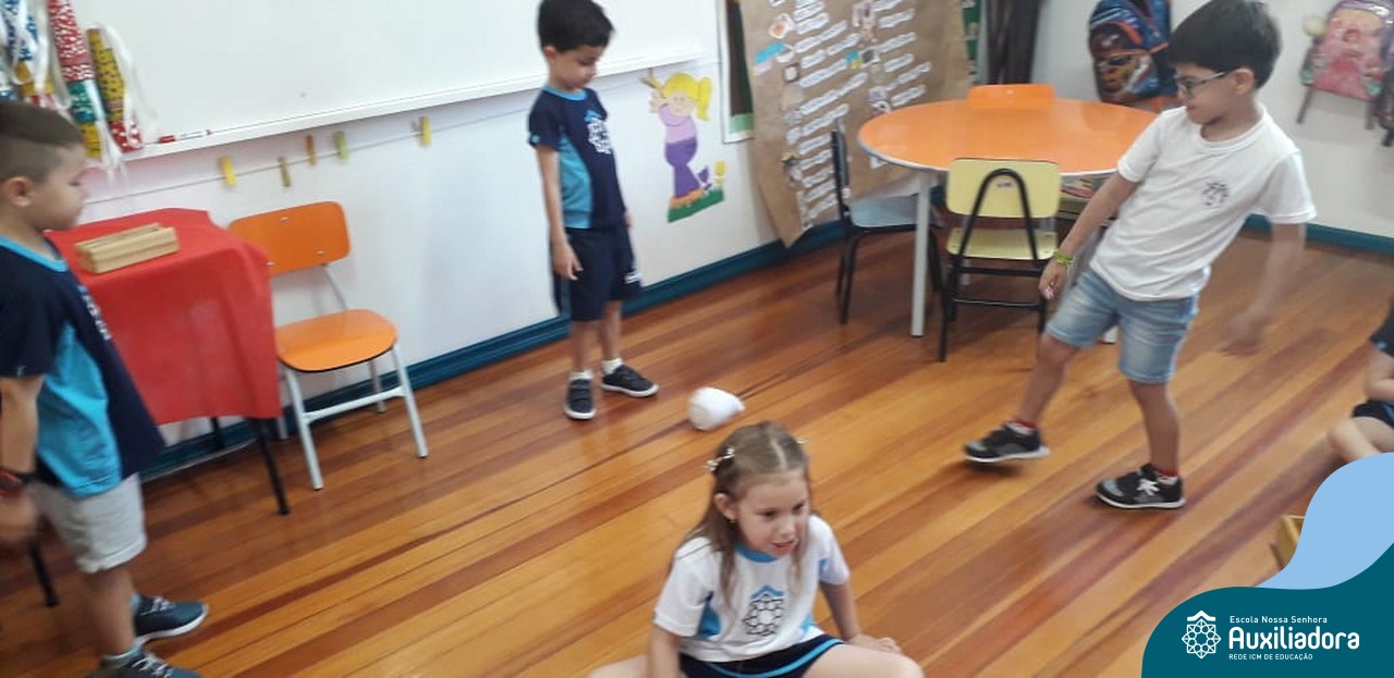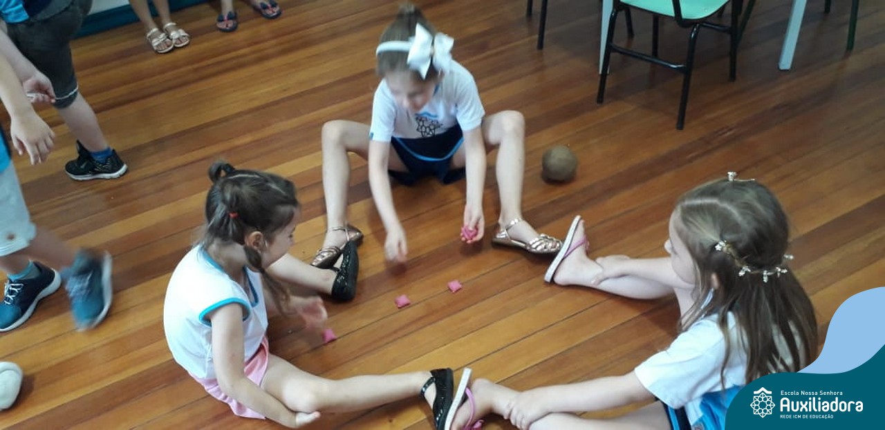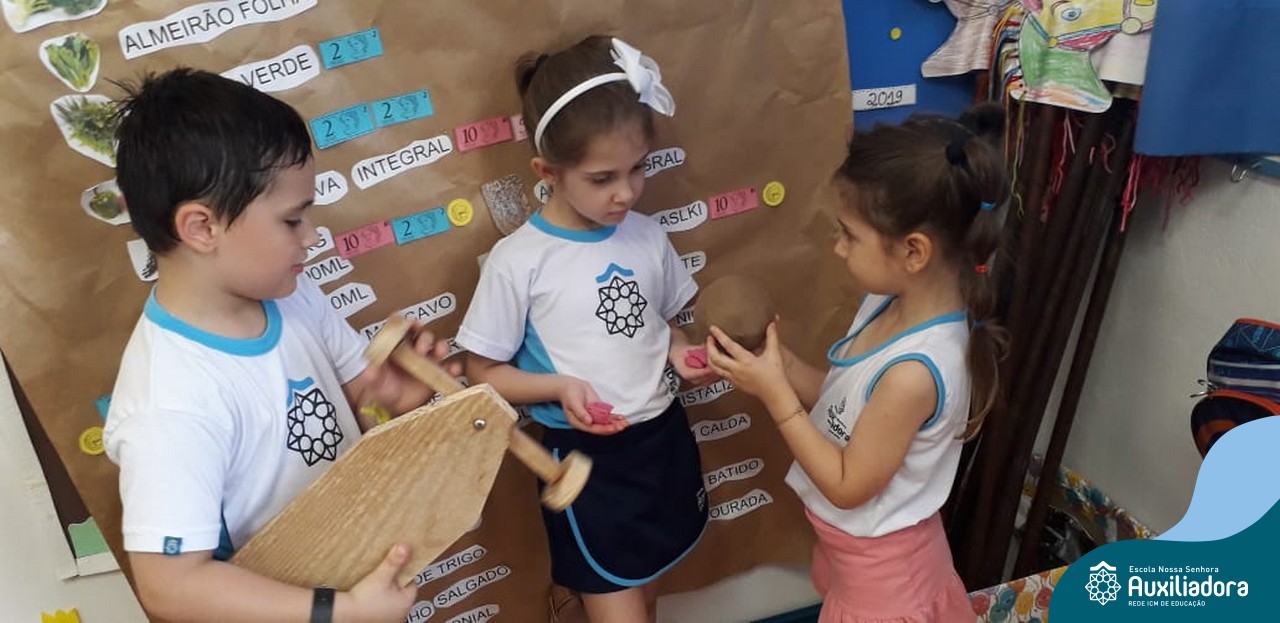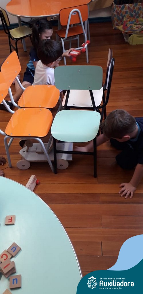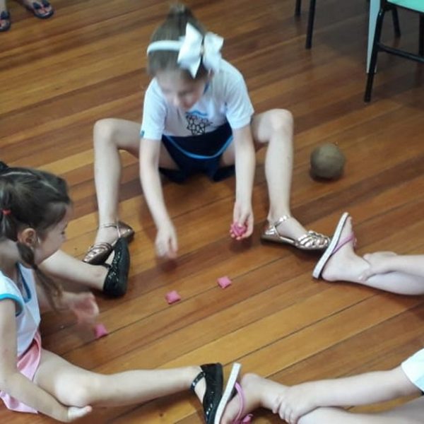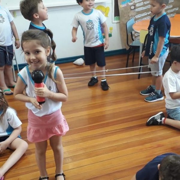 Com o objetivo de resgatar os brinquedos, jogos e brincadeiras dos antepassados, os alunos trouxeram suas construções que realizaram em família para compartilhar com os colegas.