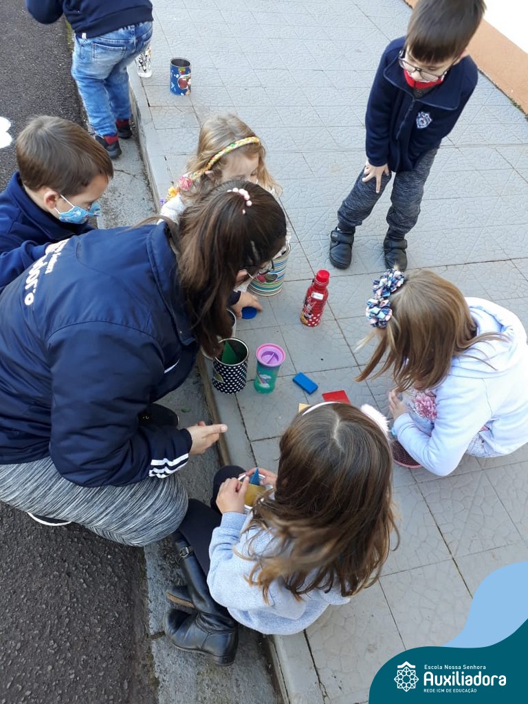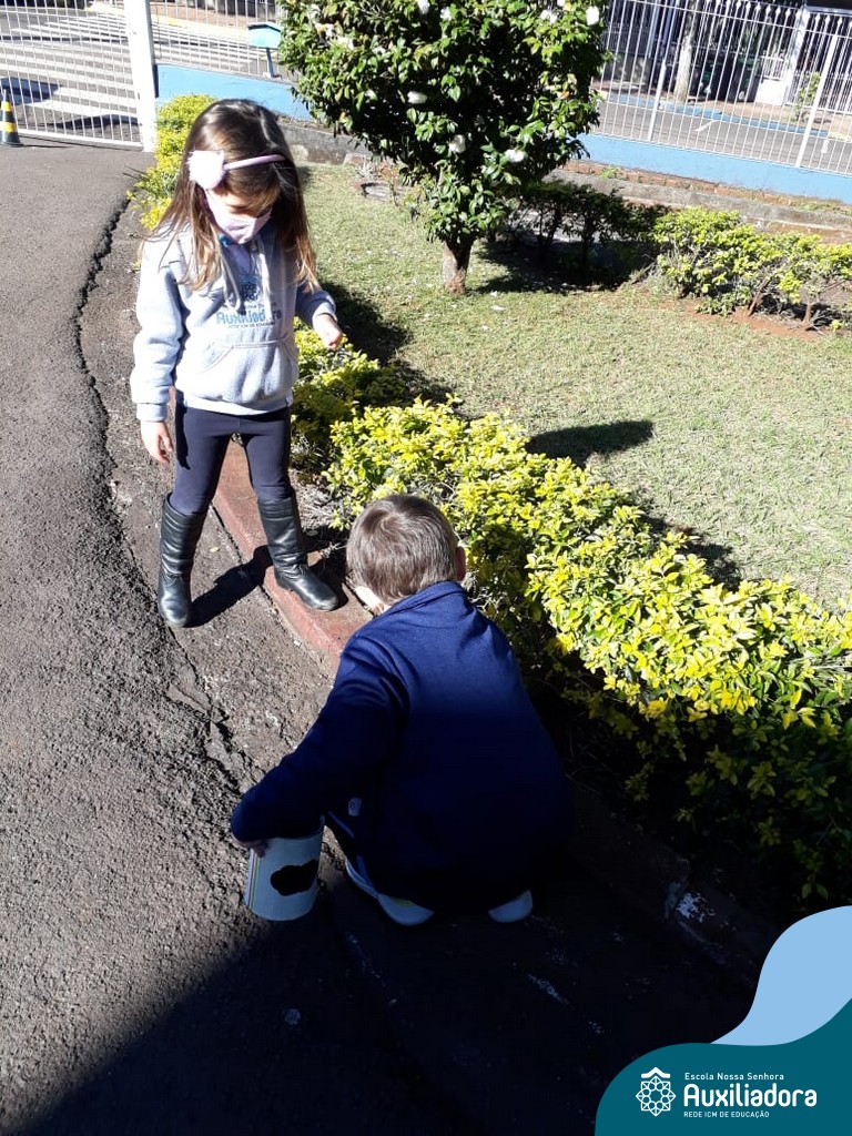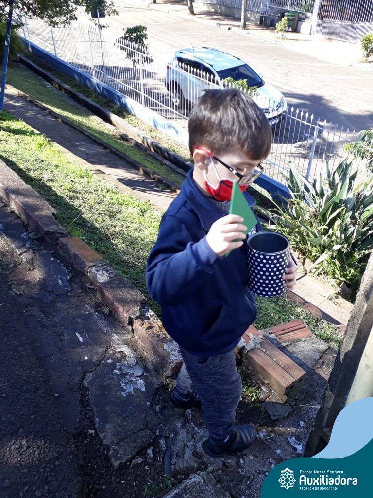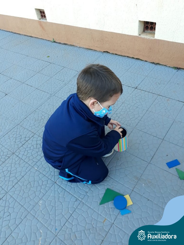 O Sol nos permitiu uma bela caça ao tesouro das formas: saímos a procura das formas geométricas, identificamos, contamos e nos divertimos muito!