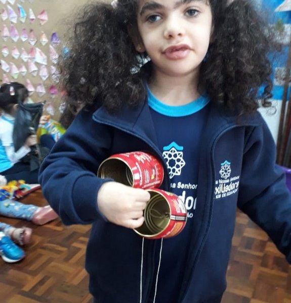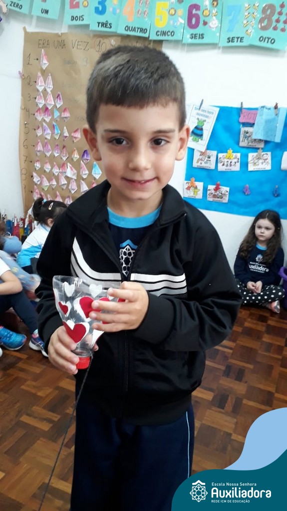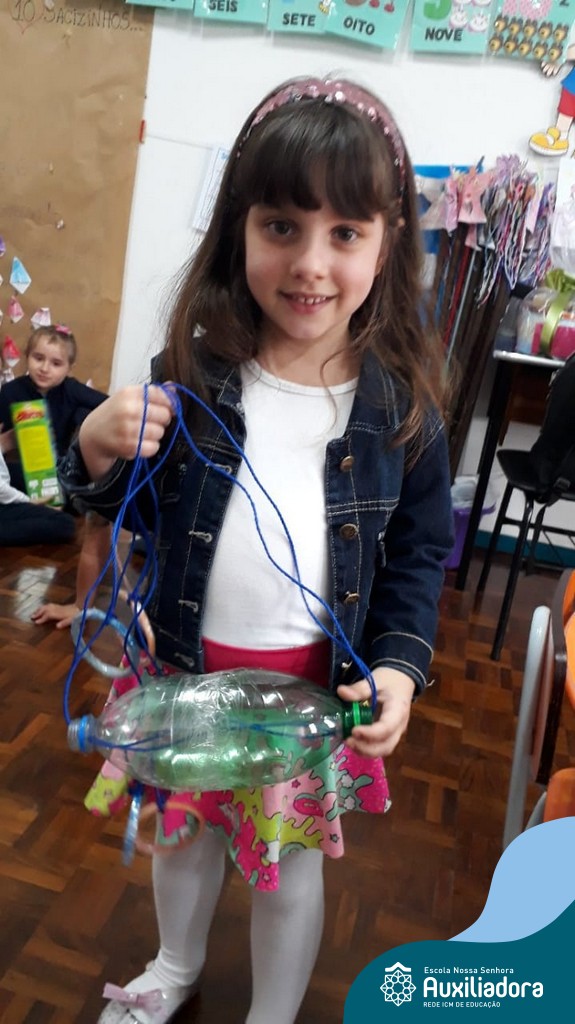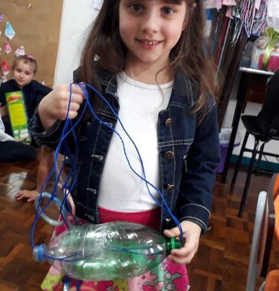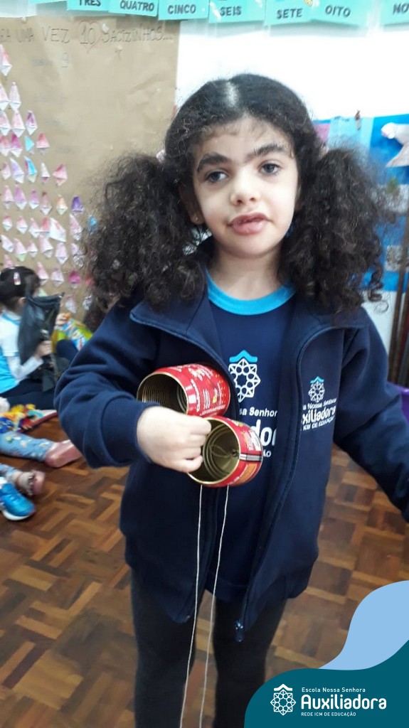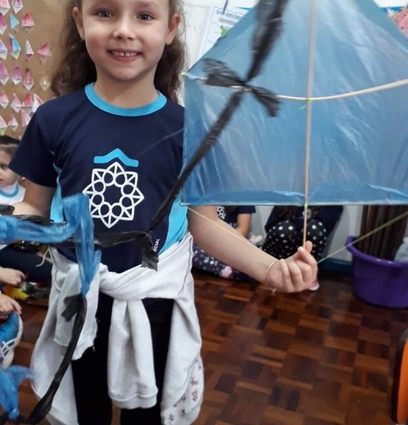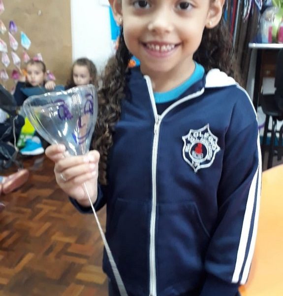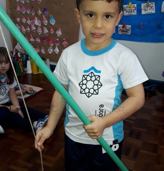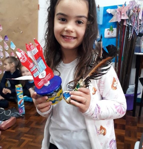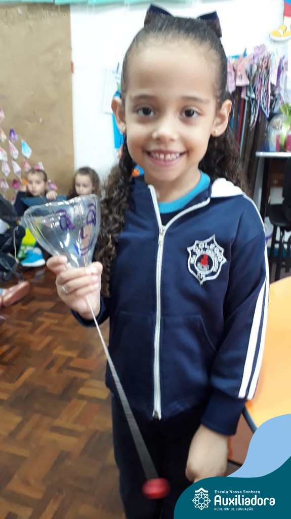 Com o objetivo de resgatar os brinquedos, jogos e brincadeiras dos antepassados, os alunos trouxeram suas construções que realizaram em família para compartilhar com os colegas.