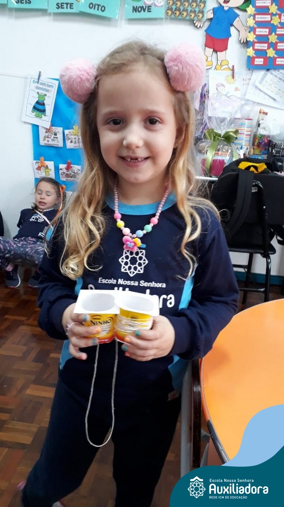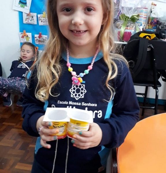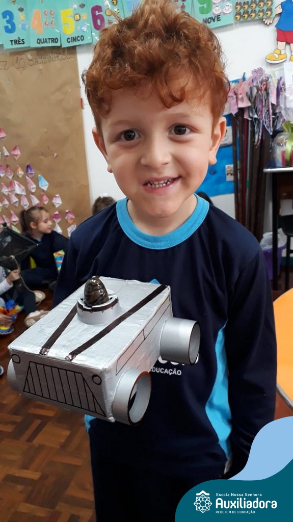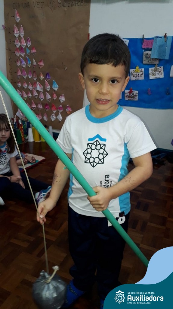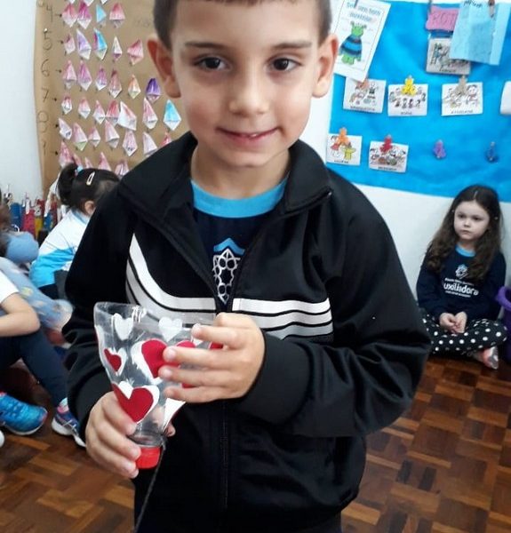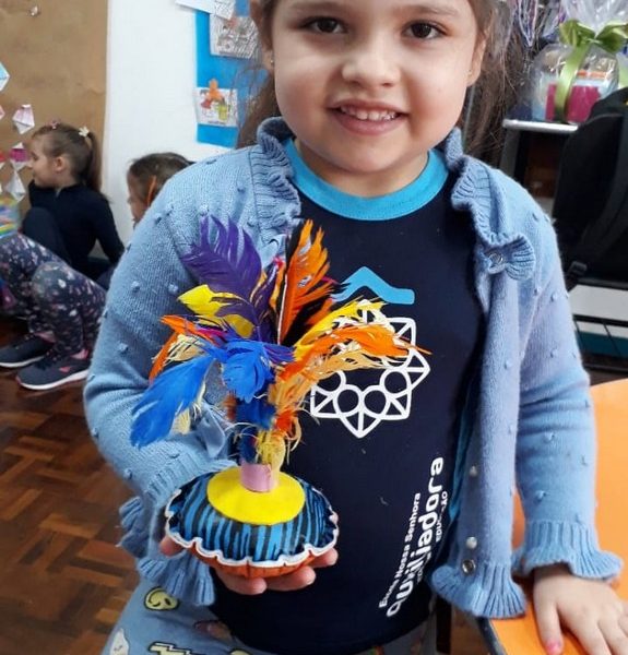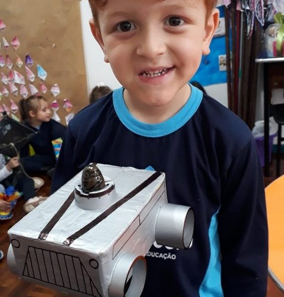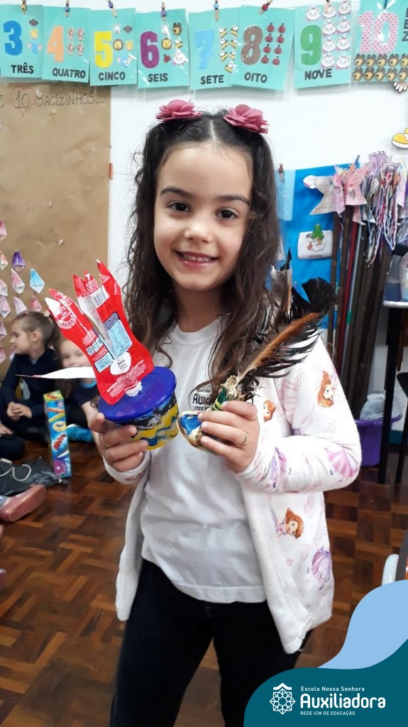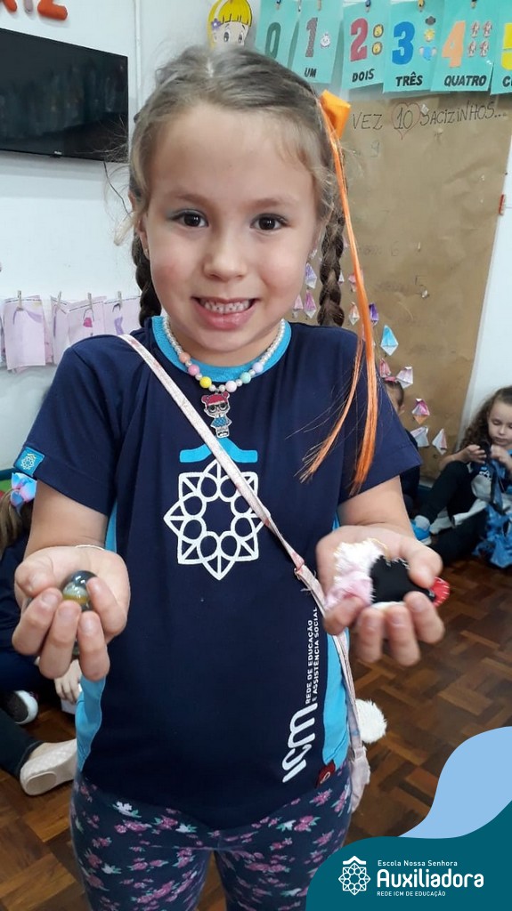 Com o objetivo de resgatar os brinquedos, jogos e brincadeiras dos antepassados, os alunos trouxeram suas construções que realizaram em família para compartilhar com os colegas.