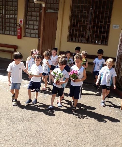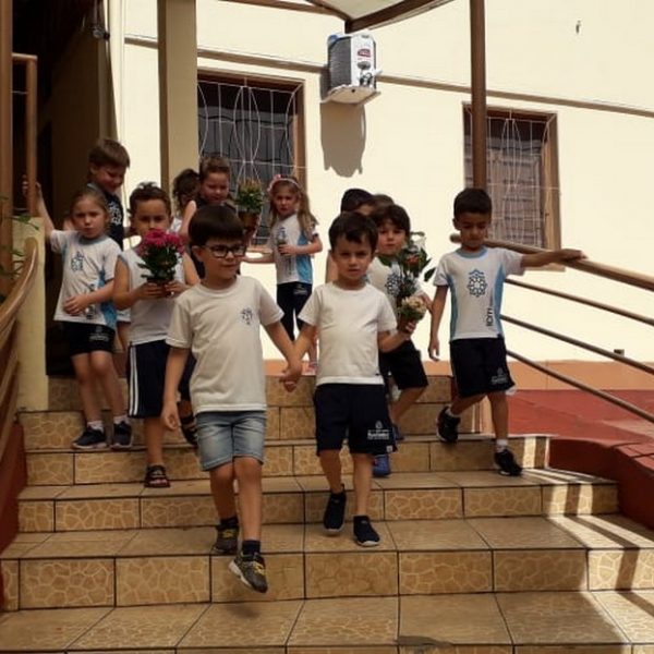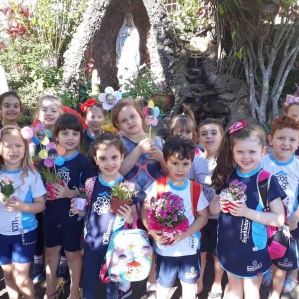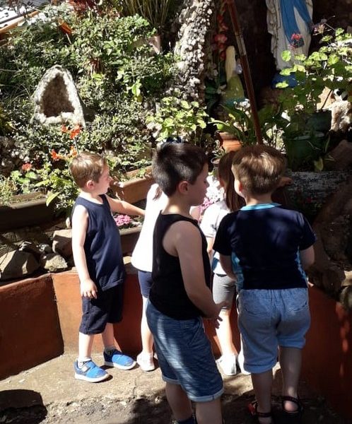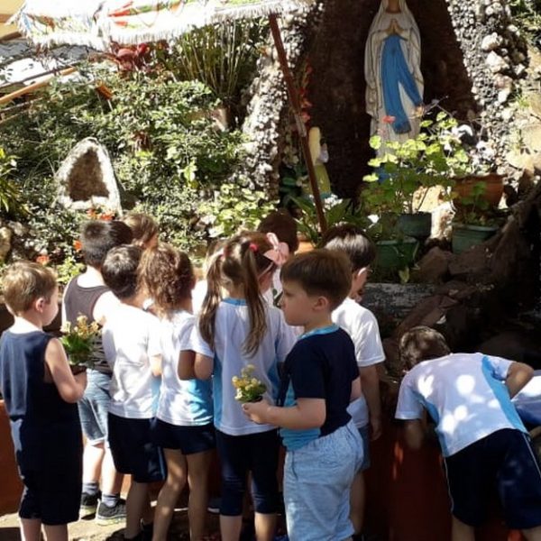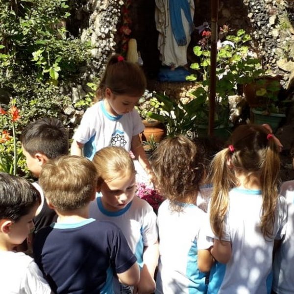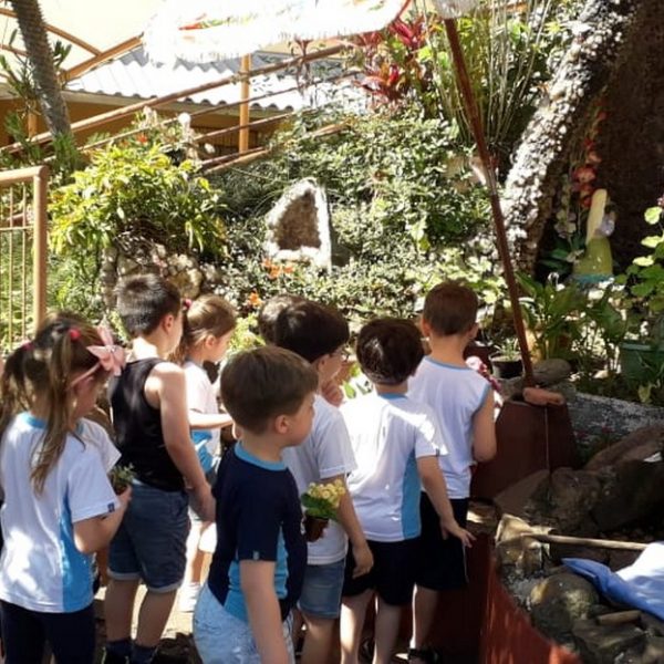 Após o mês da Bíblia os alunos resolveram doar as folhes para a gruta, lugar que gostam de estar, rezar e admirar.