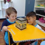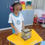 As crianças escutaram a história “A escolinha do mar” de Ruth Rocha e após problematizaram sobre várias questões envolvendo a história.