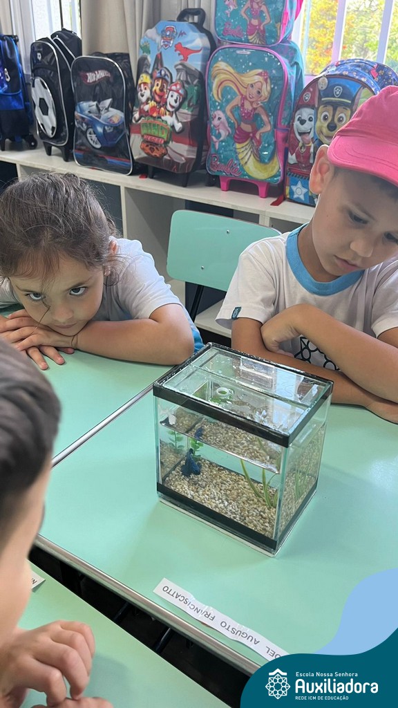 Nesta semana a turma do Pré 2 recebeu uma visita muito especial: o peixe “Faísca” veio nos contar como é a escola dele lá no fundo do mar. Cada aluno pôde ver de pertinho esse lindo peixinho🐟