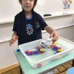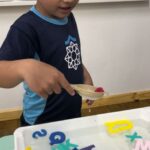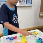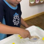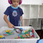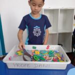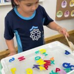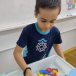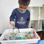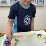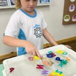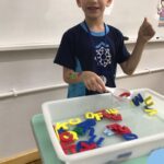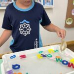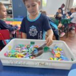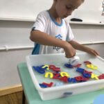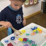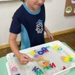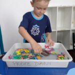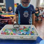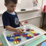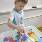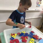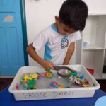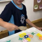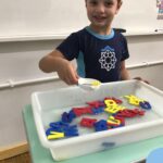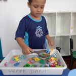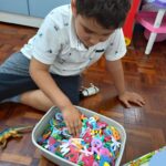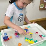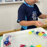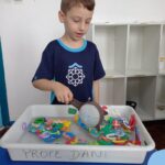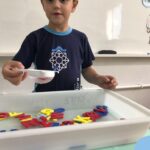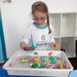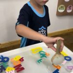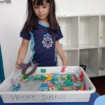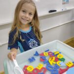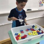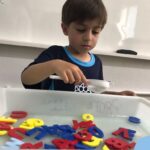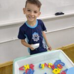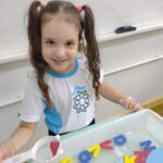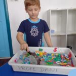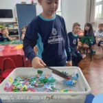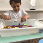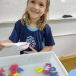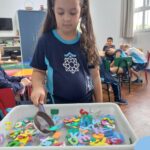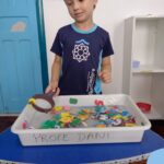A partir da história “A escolinha do mar” a galerinha do Pré 2 conheceu vários peixinhos. As crianças trabalharam sobre a letra “P” da palavra peixe e uma das atividades realizadas foi a pesca das letras com auxílio de uma peneira.