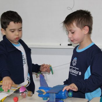 A turma do pré 2 A , realizou a atividade de construir um brinquedo de sucata com a ajuda de seus familiares, assim eles brincaram junto com seus colegas.