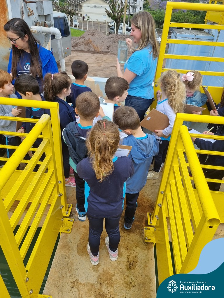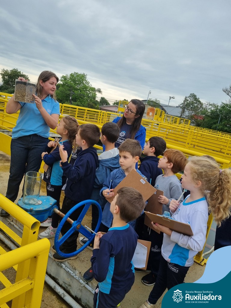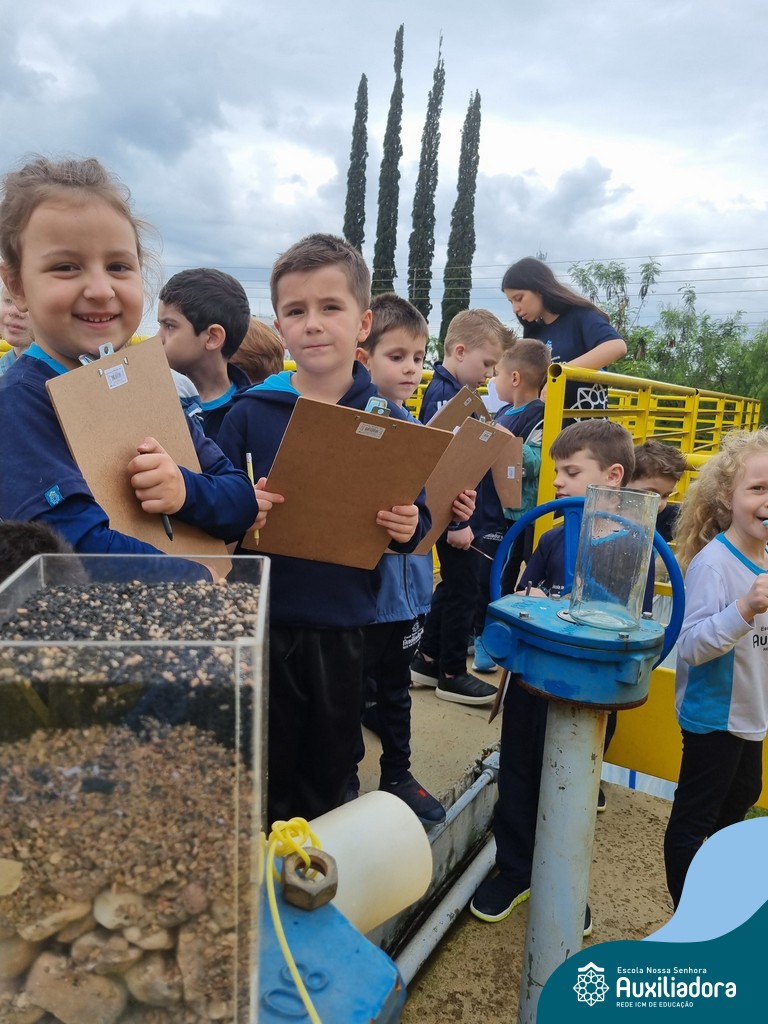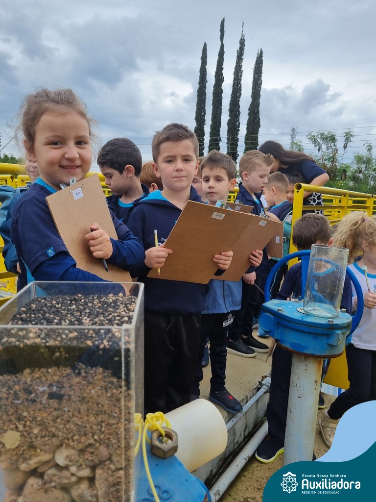 As crianças do Pré 2 participaram de uma visita de estudos à Corsan, estação de tratamento de água, onde tiveram a oportunidade de conhecer de perto o processo de purificação da água que chega às suas casas.