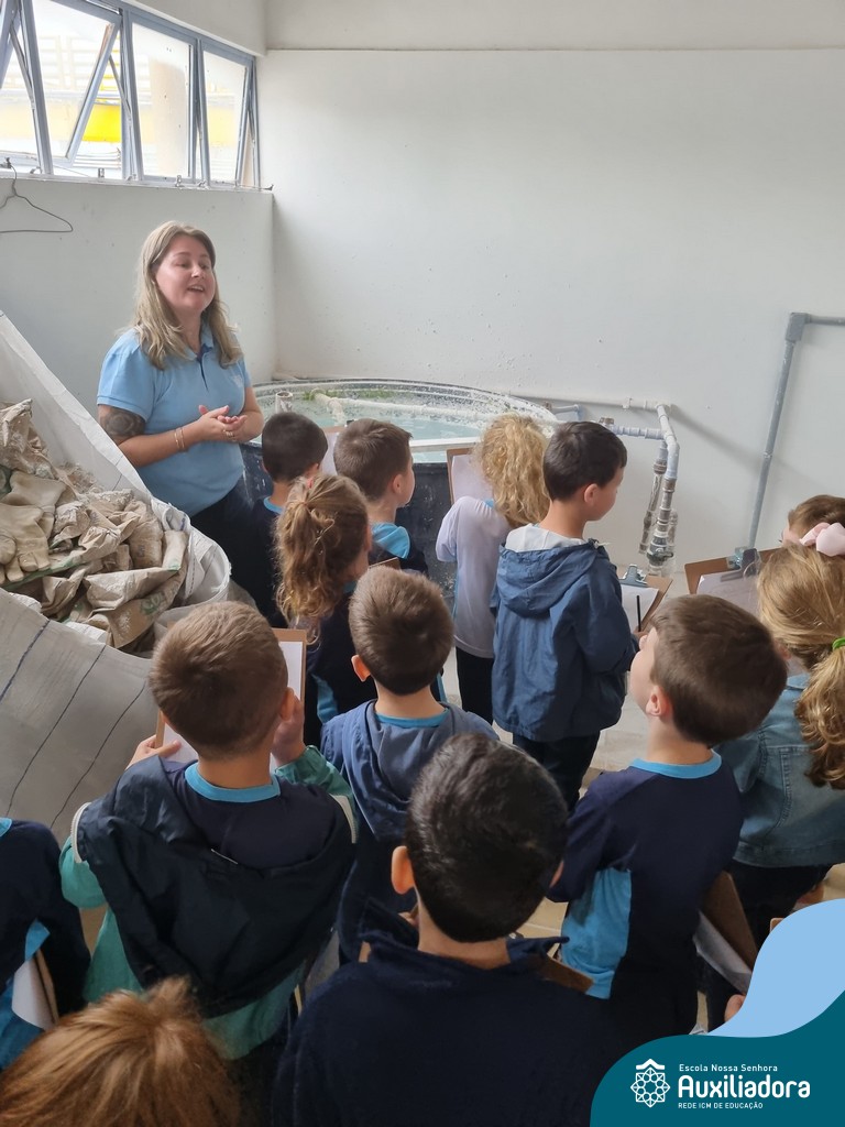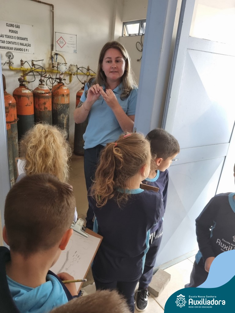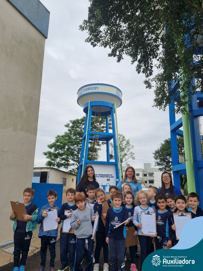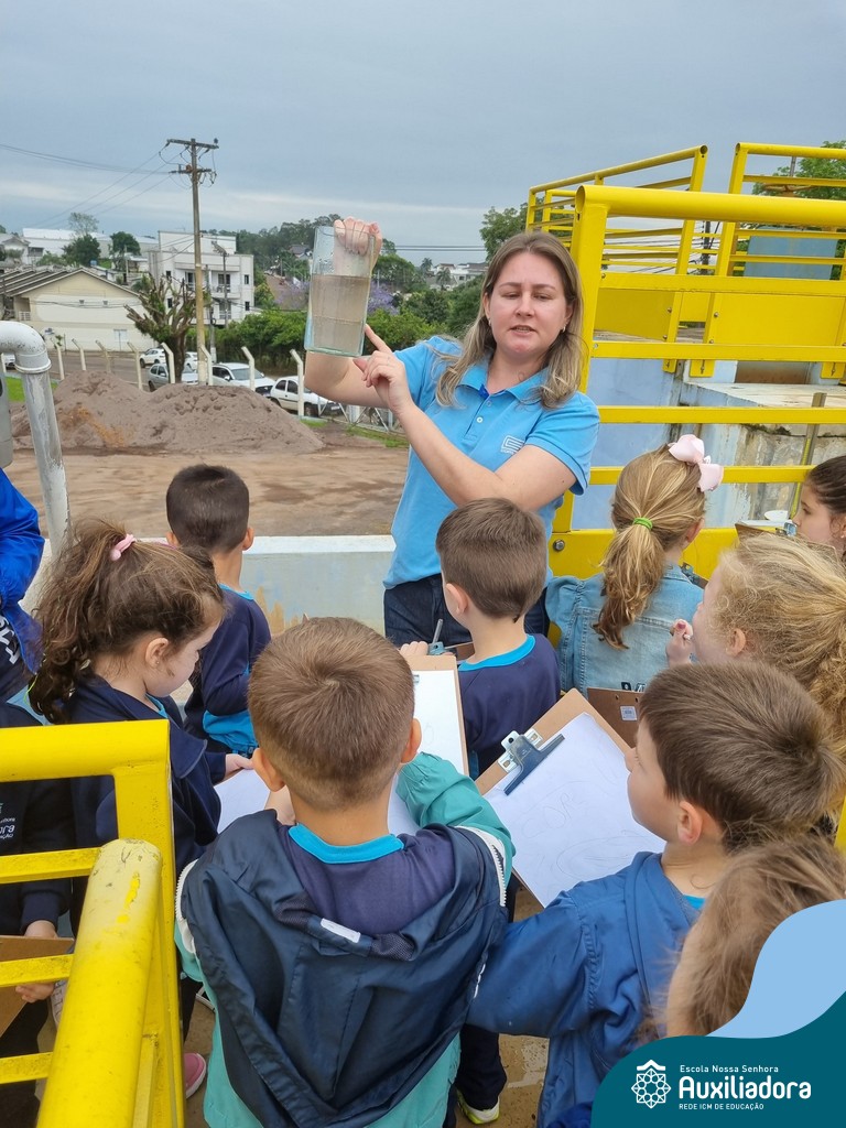 As crianças do Pré 2 participaram de uma visita de estudos à Corsan, estação de tratamento de água, onde tiveram a oportunidade de conhecer de perto o processo de purificação da água que chega às suas casas.