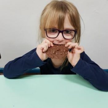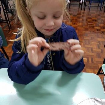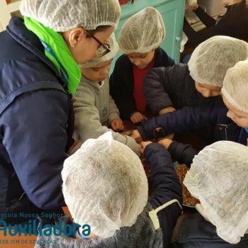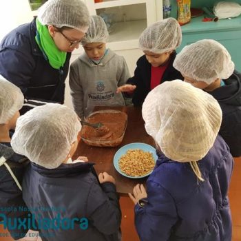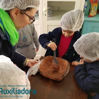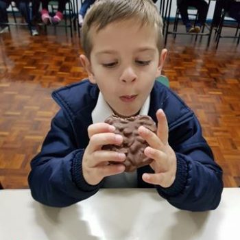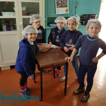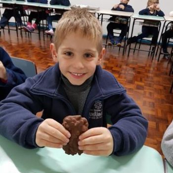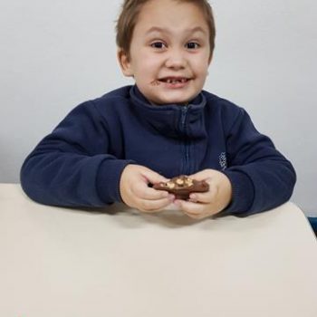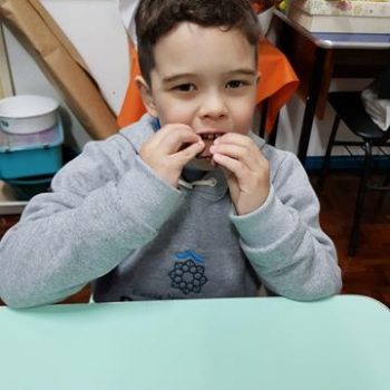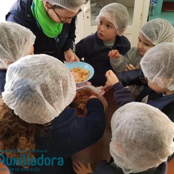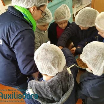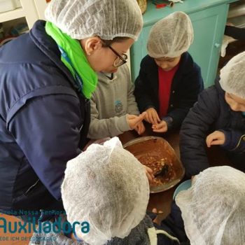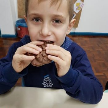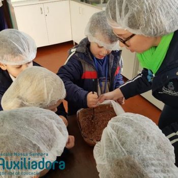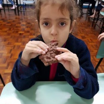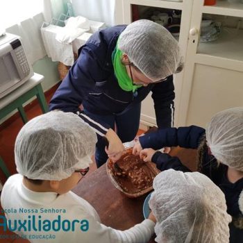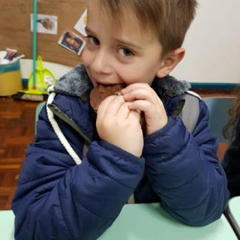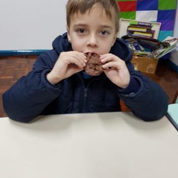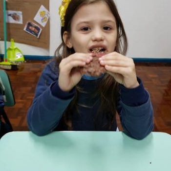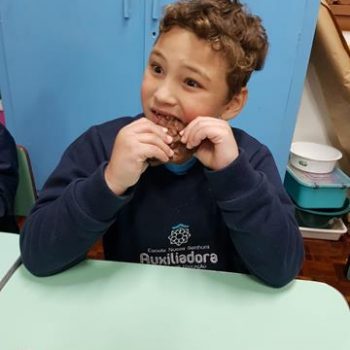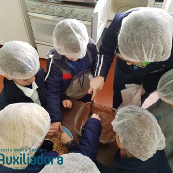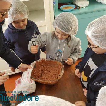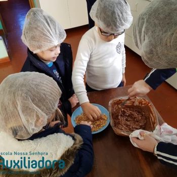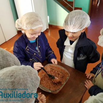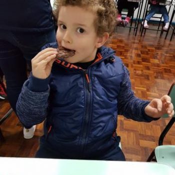 Pensando nas comidas típicas juninas, a galera do Pré 2 colocou a mão na massa e preparou deliciosos pés-de-moleque de chocolate.