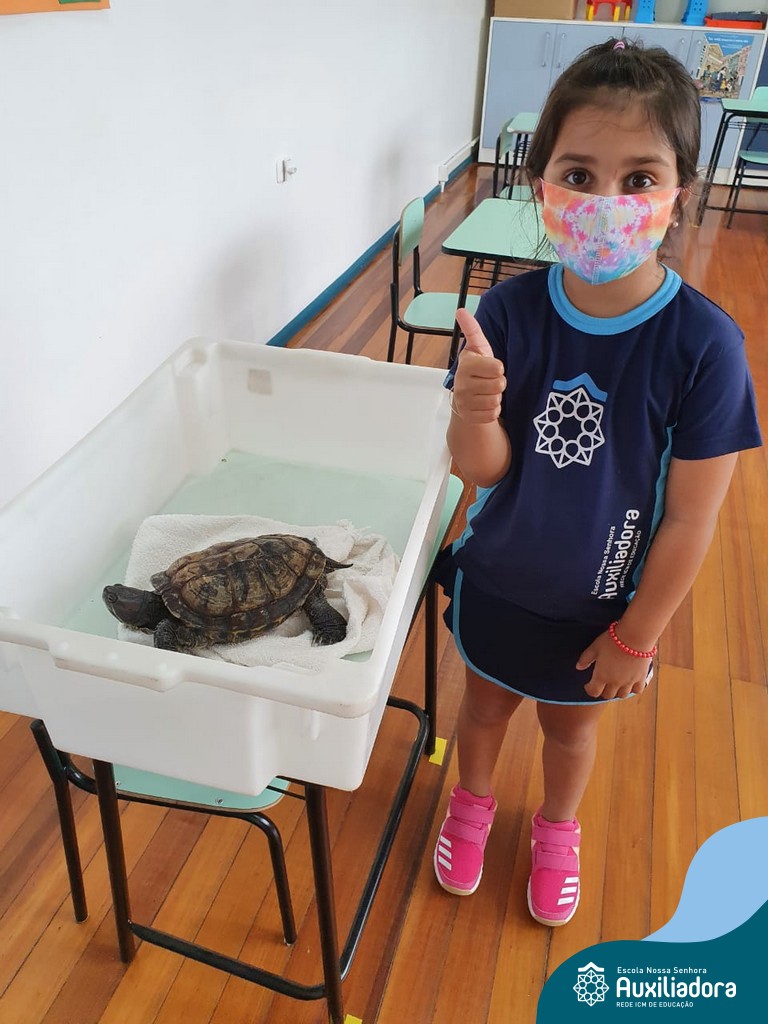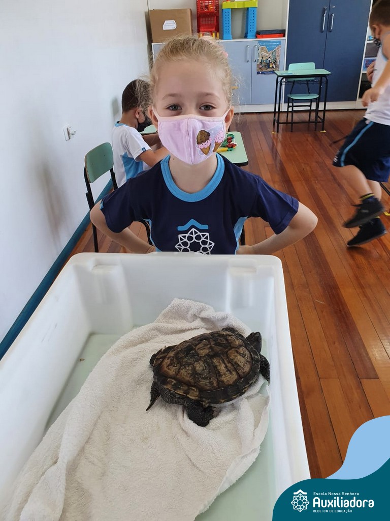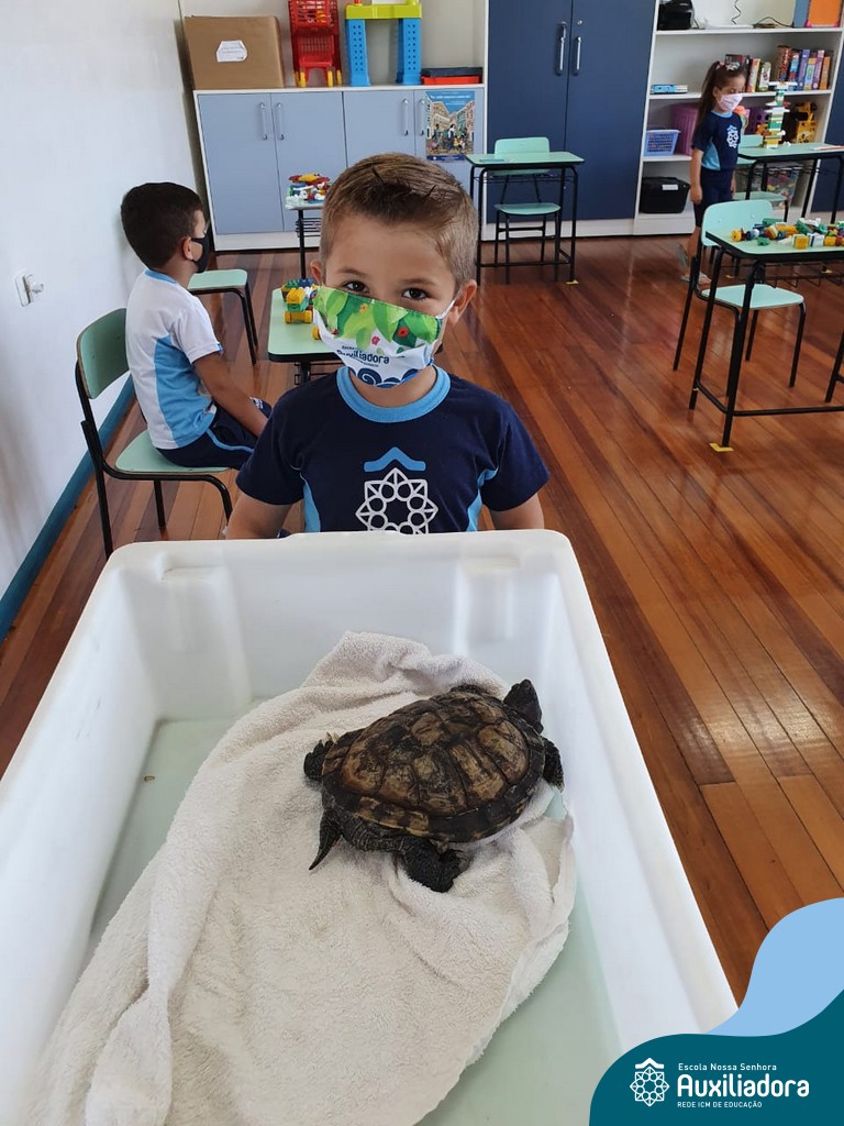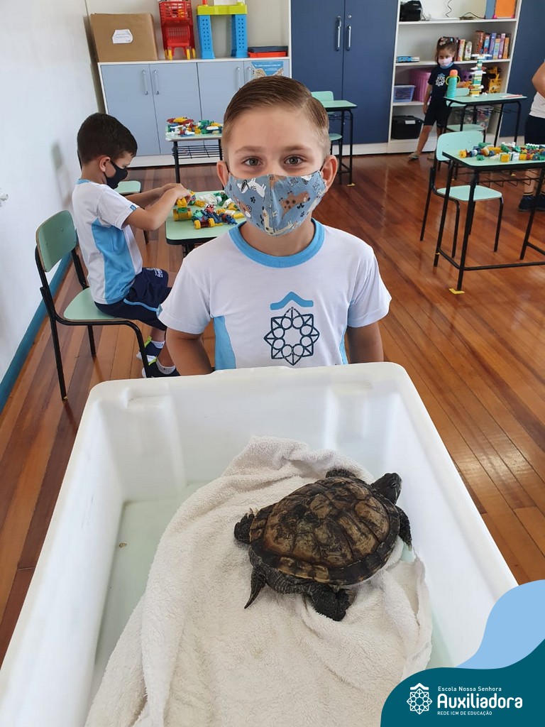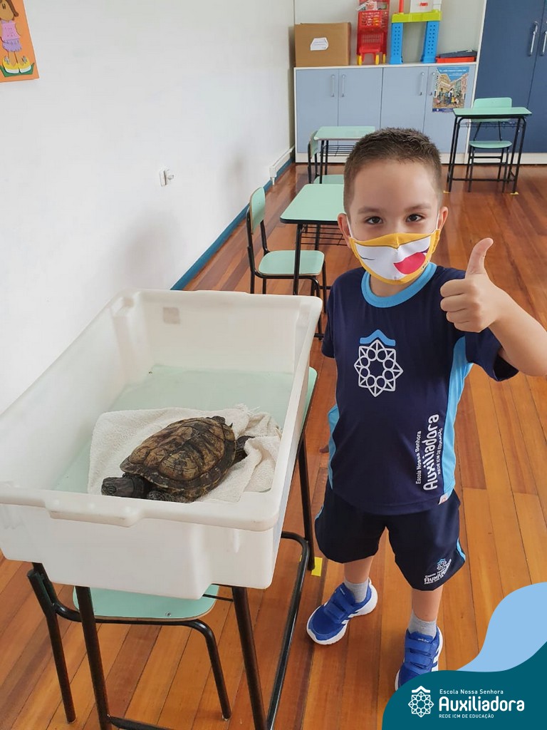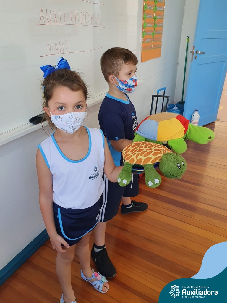 O ano letivo iniciou e a turminha do “Pré 2” recebeu uma visita especial para recepcioná-los. O jabuti Theo veio participar dos primeiros dias de aula, trouxe junto a sua história e muitas brincadeiras. Foi muito divertido! Além de rever os amigos, brincar e cantar, a galerinha já enfeitou com muito capricho os cadernos que serão grandes companheiros nesta jornada da aprendizagem.