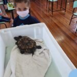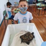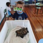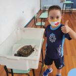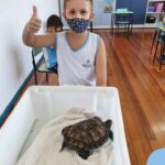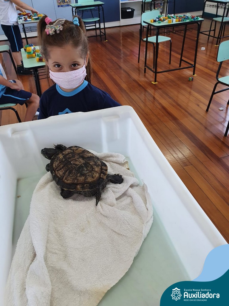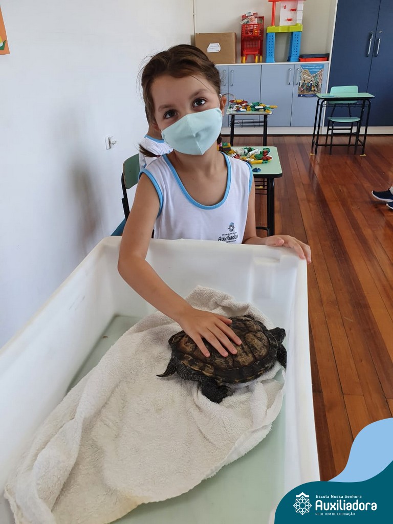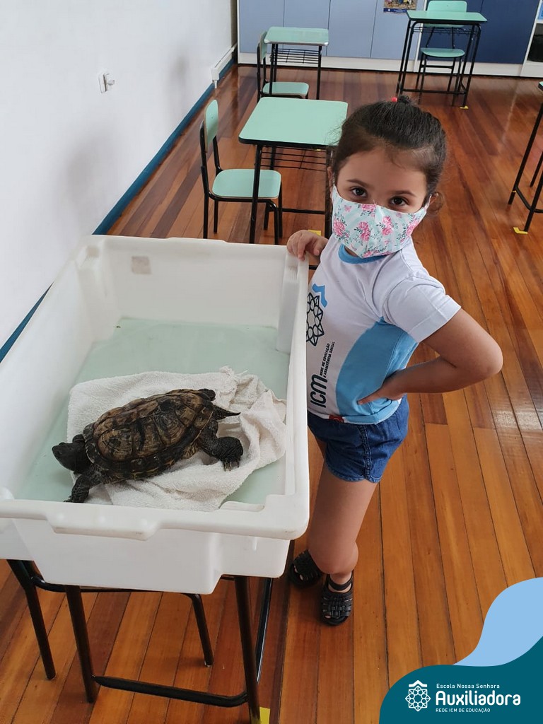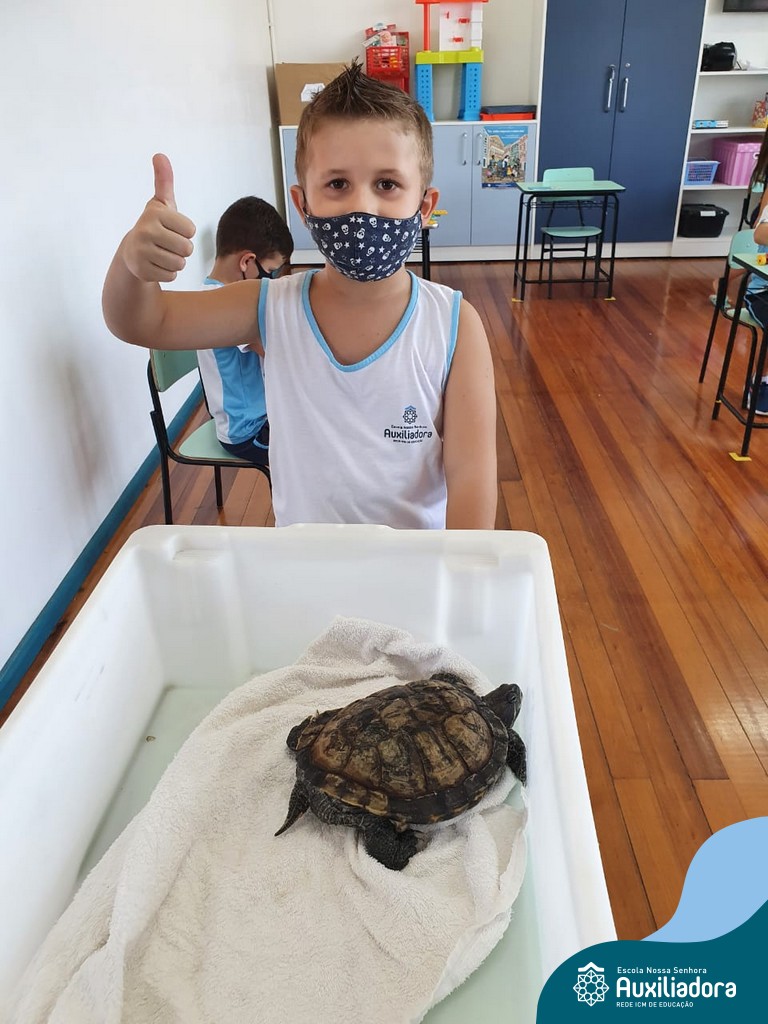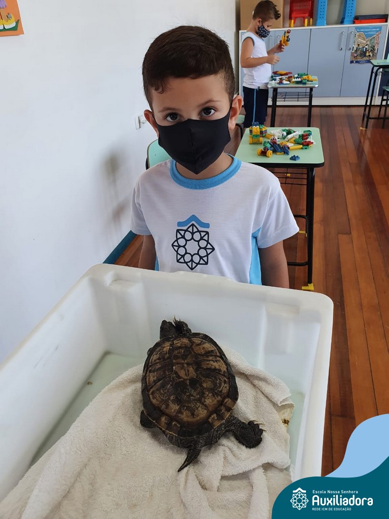 O ano letivo iniciou e a turminha do “Pré 2” recebeu uma visita especial para recepcioná-los. O jabuti Theo veio participar dos primeiros dias de aula, trouxe junto a sua história e muitas brincadeiras. Foi muito divertido! Além de rever os amigos, brincar e cantar, a galerinha já enfeitou com muito capricho os cadernos que serão grandes companheiros nesta jornada da aprendizagem.