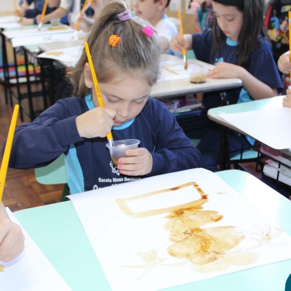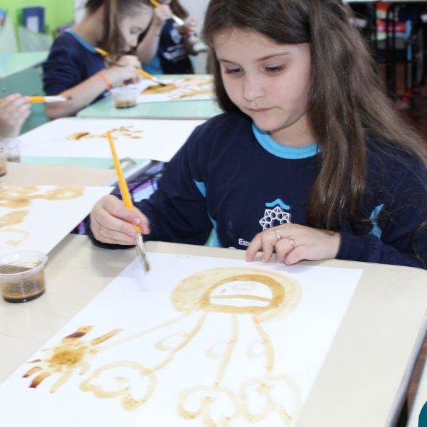 Cheirinho de café no ar… A turminha do Pré 2 B estudou a obra ” Os Girassóis” de Vincent Van Gogh, após explorar a obra as crianças fizeram uma releitura com tinta de café.. Foi uma experiência incrível.
