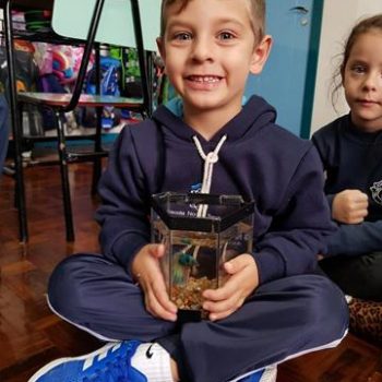 🐠🐟 A turma do Pré 2 A está fazendo uma pesquisa científica sobre os peixes, tema escolhido por eles. 🐠🐟Para inspirar a pesquisa, as crianças conheceram o mascote da turma e a ele deram o nome de Arco-íris. 🐠🐟A conclusão da pesquisa será apresentada na Feira Científica da escola que acontecerá no mês de Julho deste ano.